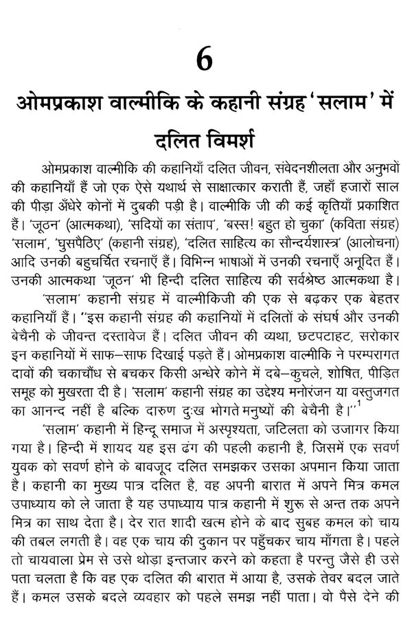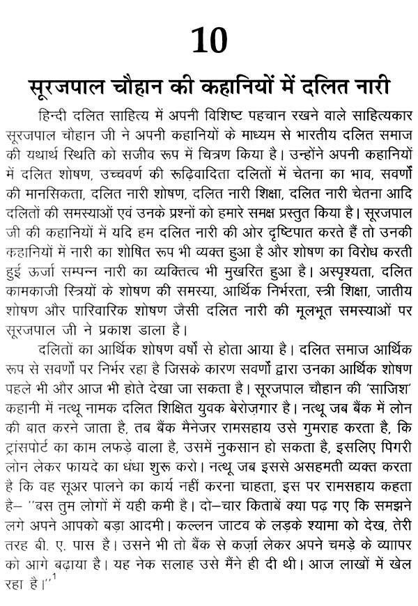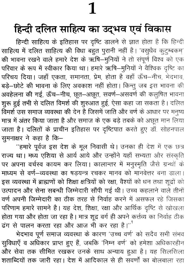 प्रस्तुत पुस्तक के सभी आलेख दलित विमर्श पर केन्द्रित समस्याओं को विभिन्न कोणों से रेखांकित करते हैं। पुस्तक में साहित्य आलेखों की कई विशेषताएँ हैं जैसे कि इन समग्र लेखों को एक ही स्थान, एक ही समय, एक ही बैठक में पूर्ण नहीं किये गये हैं। ये सभी लेख संगोष्ठी की माँग विषय और समय की माँग के अनुसार निर्मित हैं।