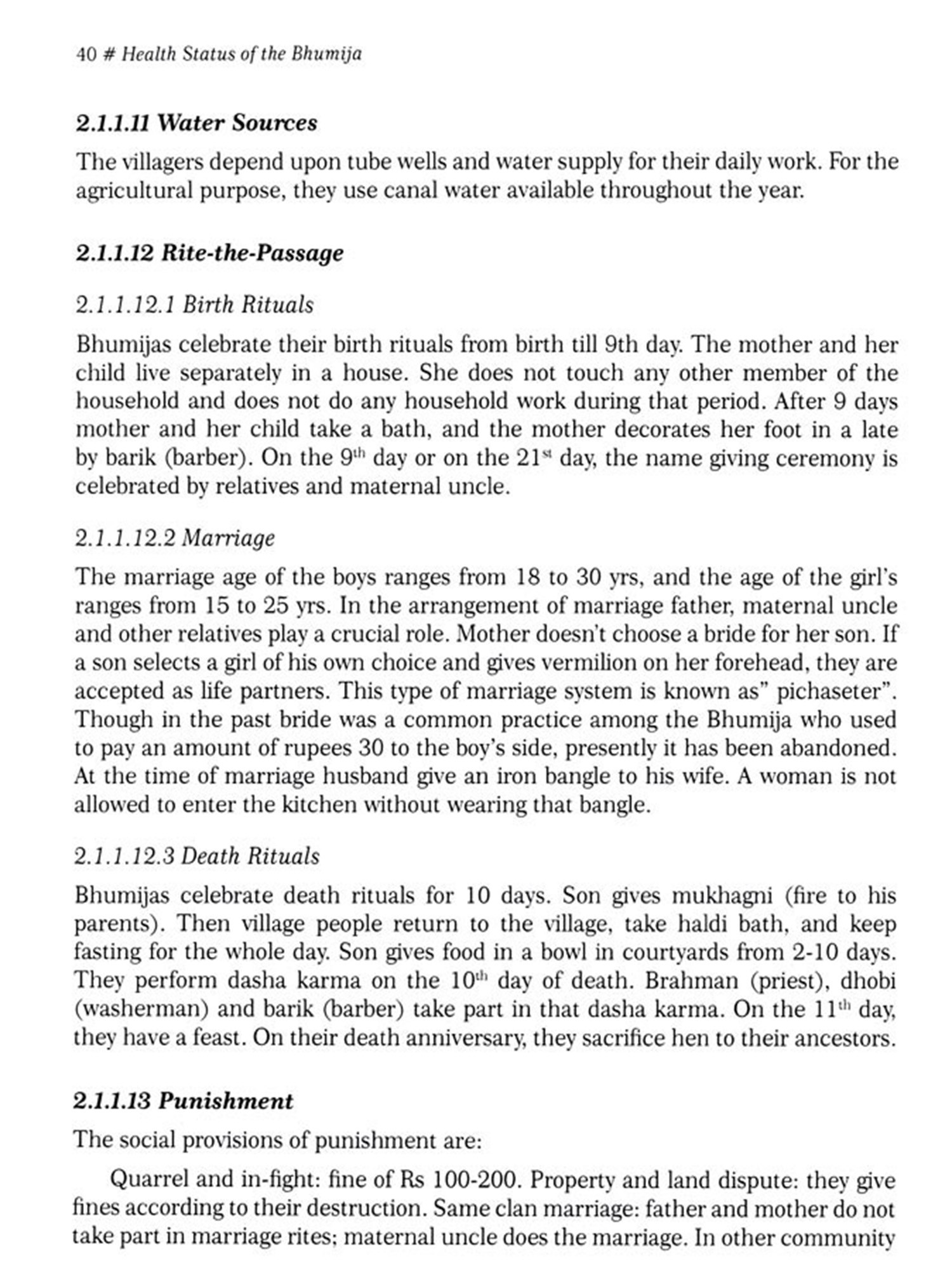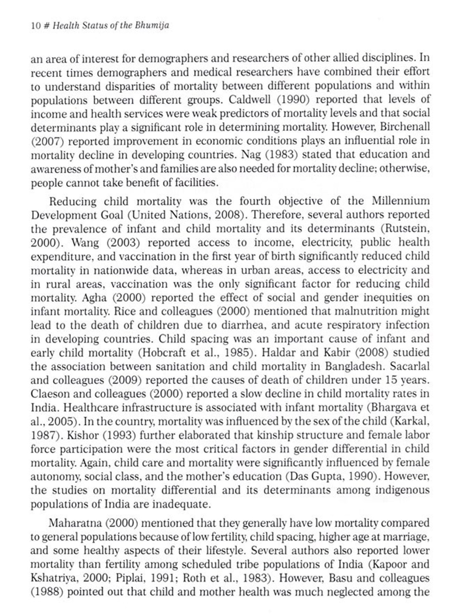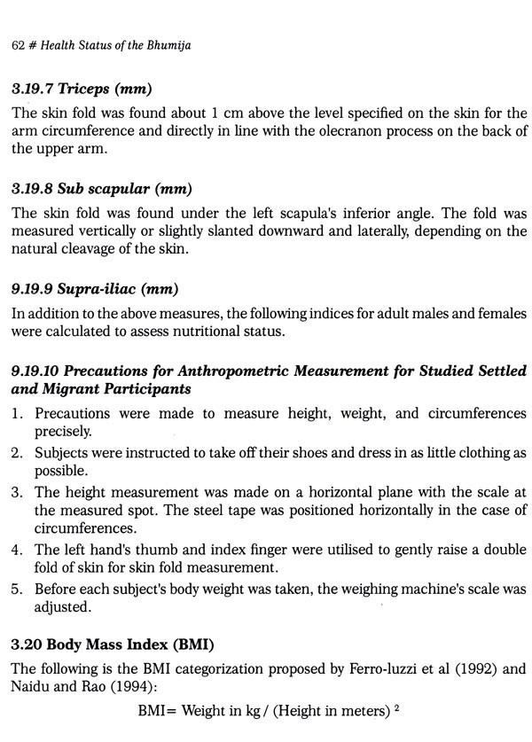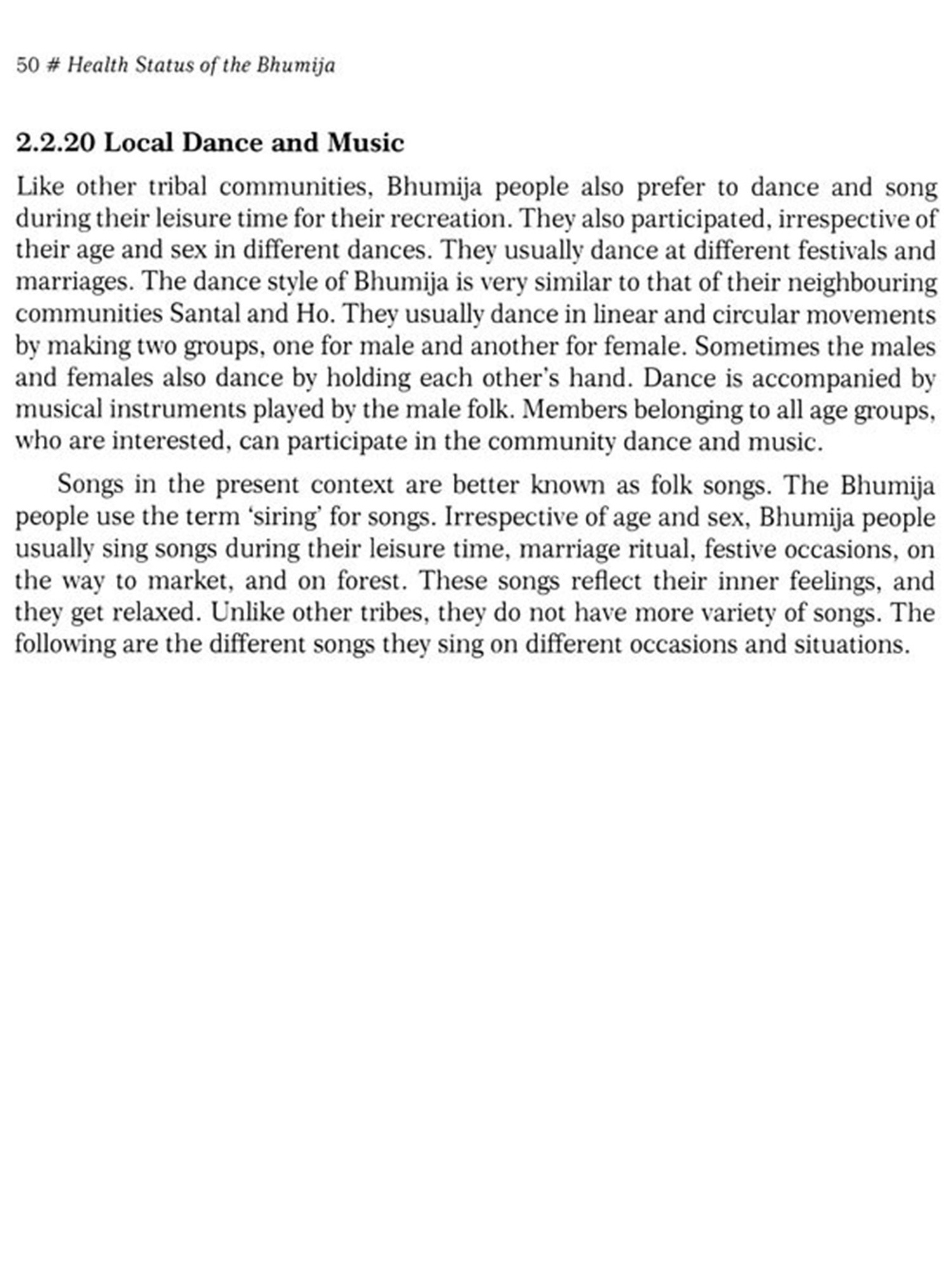 Based on empirical study among the settled and migrant Bhumija tribal community of Mayurbhanj and Khurda districts of Odisha, this book looks at the changing perspectives of health. It viewed Health Status, mainly looking at health from physiological and physical status of the body. In order for a comparative perspective of the changing health status among the settled and migrant Bhumijas, it has taken into consideration three important domains of health status such as; Demographic (fertility, mortality & morbidity characteristics), Nutritional (BMI, MUAC, stunting, wasting and underweight), and Physiological (SBP, DBP, consumption of tobacco etc.). The study reveals a perceptible difference between the settled and migrant Bhumija with respects to educational attainment, income status, fertility and mortality parameters, nutritional and physiological parameters.