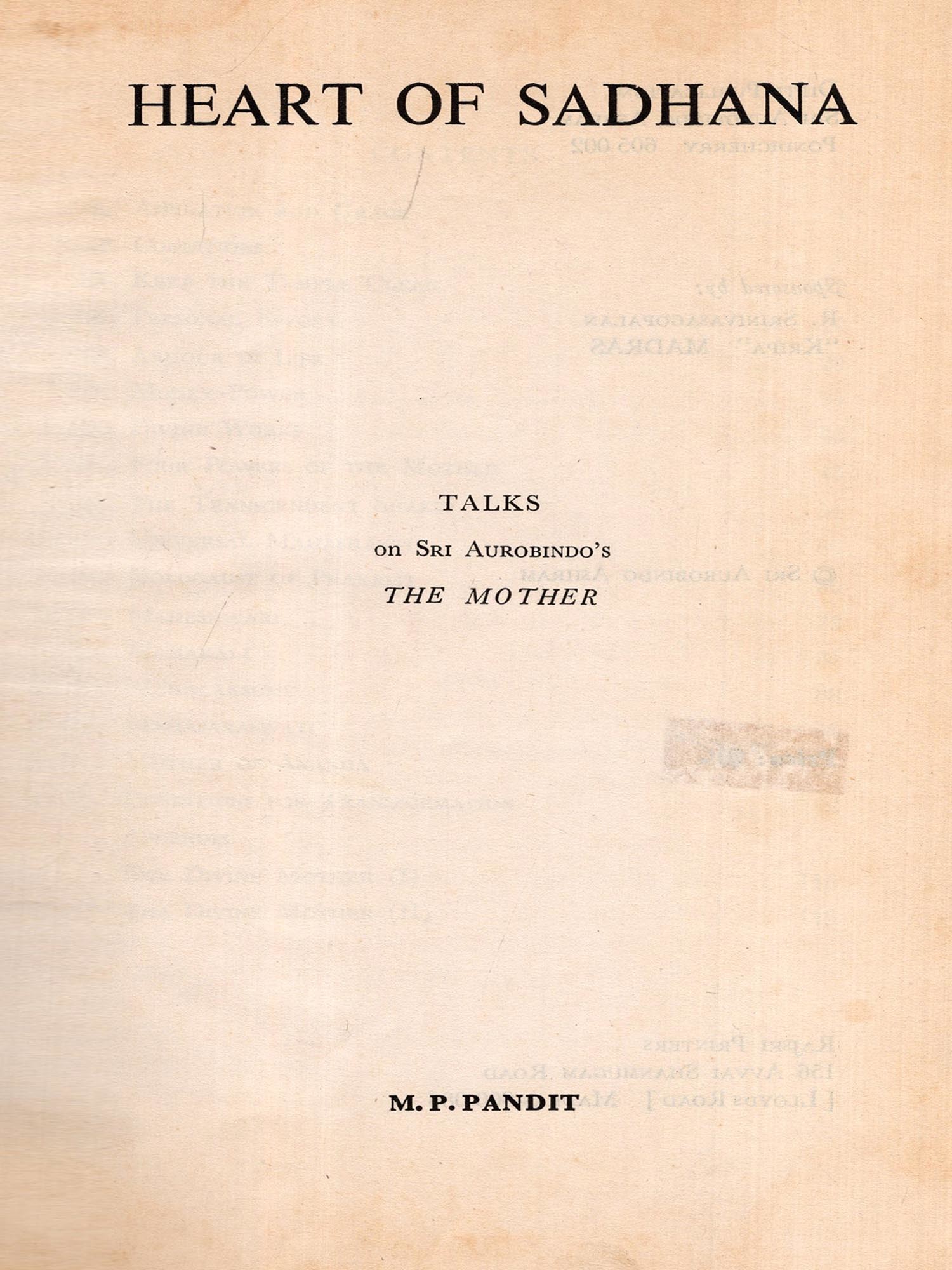 | Publisher: SRI AUROBINDO ASHRAM, PONDICHERRY | |