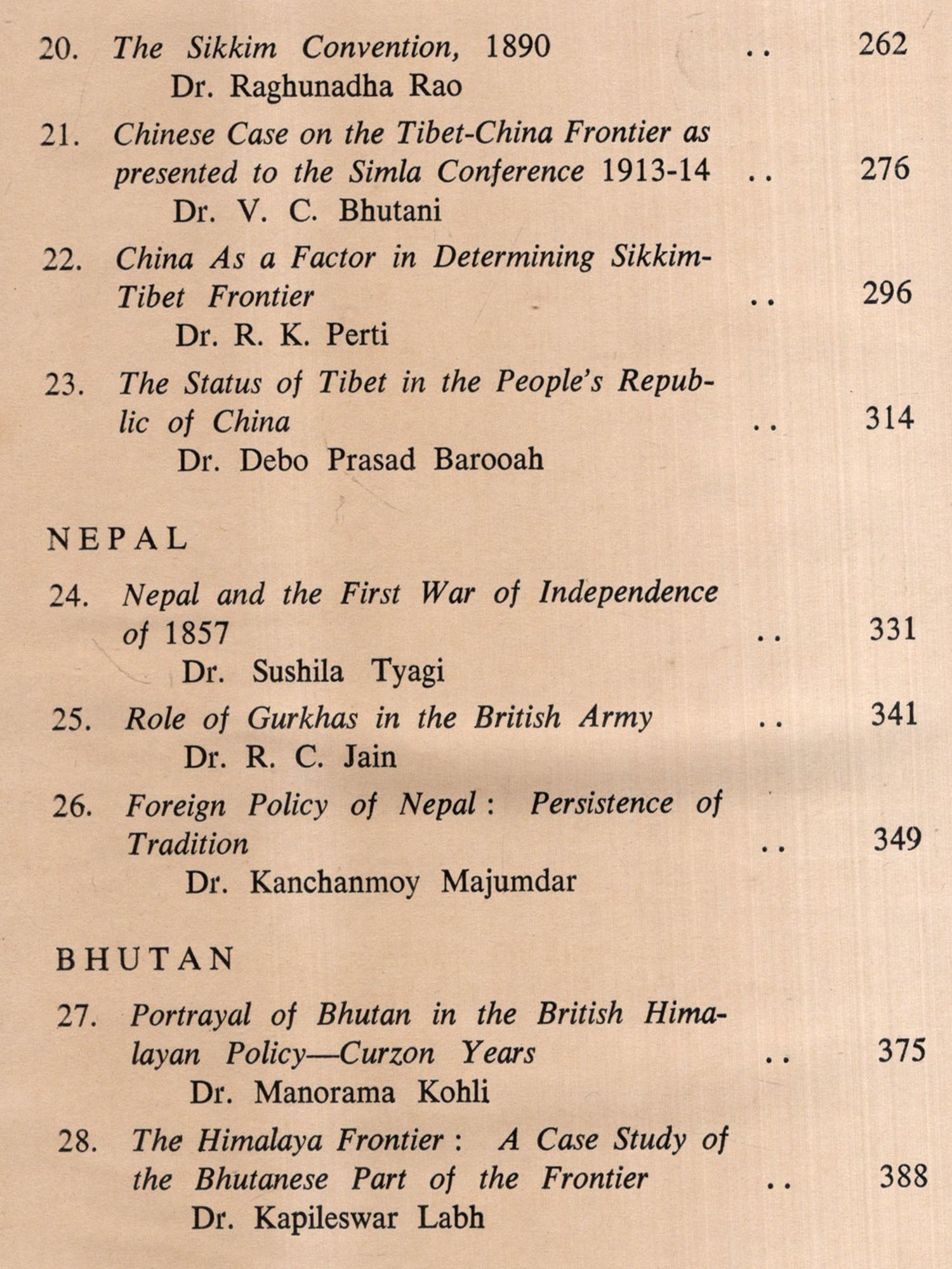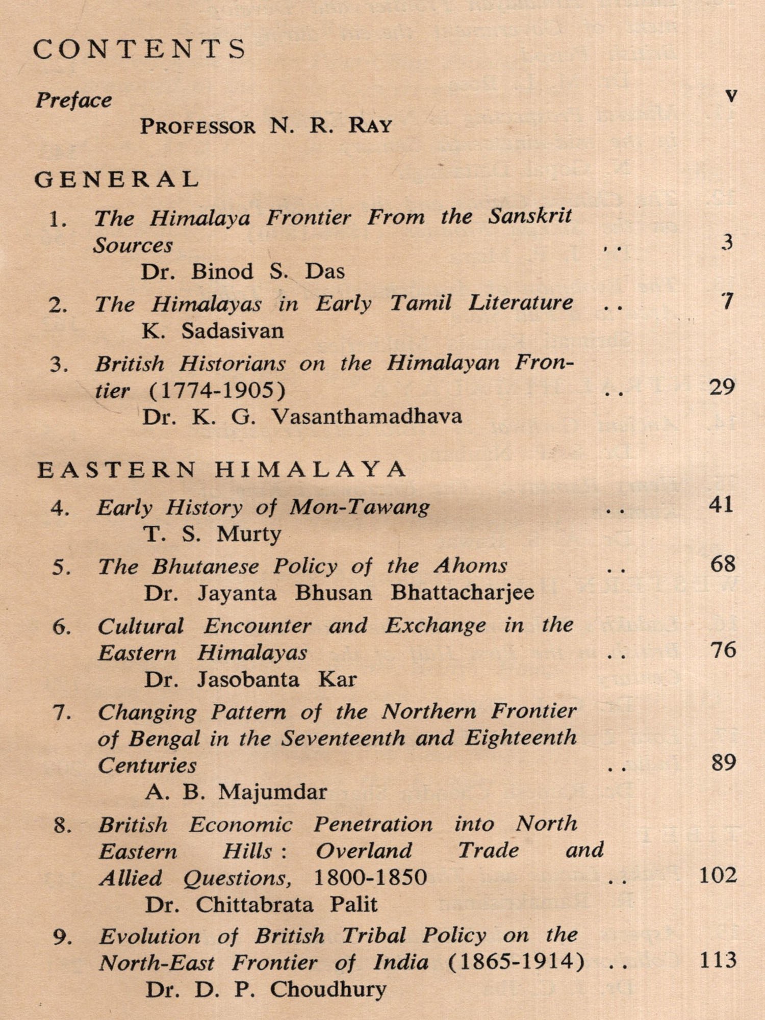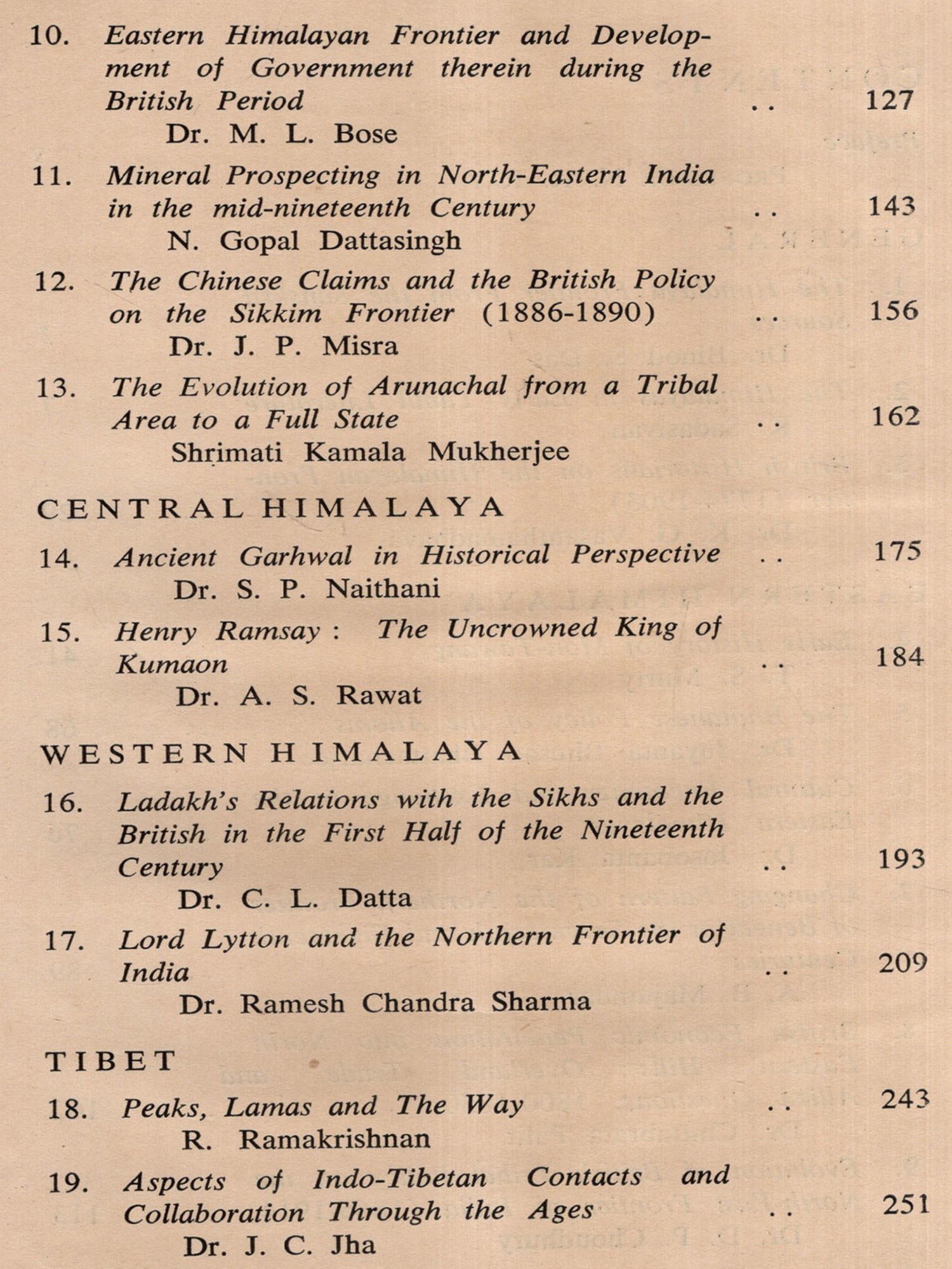 OUR FEELINGS in presenting this long-awaited volume-Himalaya Frontier in Historical Perspective are mixed. We feel happy that we have been able at last to place the title before our members and the reading public. But we also regret that it should have taken seven years for bringing it out, on the basis of the proceedings of a Conference held way back in 1979. The reason for the delay-paucity of funds and demands of abnormally high cost-is well-known and not need be repeated.