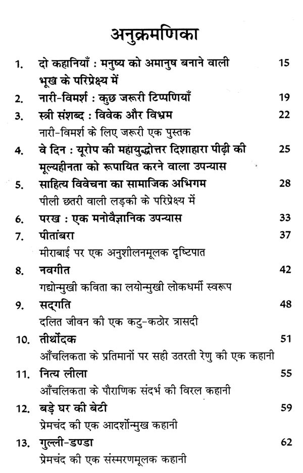 मेरा शोधकार्य कथा-साहित्य पर आधृत है। अतः मैंने यहाँ उन लेखों को संकलित किया है जिनका संबंध उपन्यास या कहानी से है। उपन्यासों में जैनेन्द्र कृत उपन्यास 'परख' की परख देने का एक नम्र प्रयास किया है। नागार्जुन कृत उपन्यास 'वरुण के बेटे' को भी मैंने इसमें लिया है। यह एक आँचलिक उपन्यास है। यहाँ एक तथ्य की ओर ध्यान आकृष्ट करना चाहूँगी कि नागार्जुन के सभी उपन्यास आँचलिक उपन्यास नहीं है, उनमें से कुछेक ग्रामभित्तीय उपन्यास हैं। यह टिप्पणी इसलिए देनी पड़ रही है कि मैंने इधर एक-दो शोध-प्रबंध देखे हैं जिनमें नागार्जुन तथा शैलेश मटियानी के सभी उपन्यासों को आँचलिक उपन्यास का दर्जा दिया गया, गोया किसी उपन्यास का 'आँचलिक' होना ही उसे श्रेष्ठ उपन्यासों में परिगणित करवाता है। सन् 2005 में सोमनाथ में गुजरात प्राध्यापक परिषद का अधिवेशन हुआ था। उसकी संगोष्ठी का विषय था "गुजरात के विश्वविद्यालयों में पढ़ाये जाने वाले हिन्दी उपन्यास।" अतः वहाँ भी मैंने नागार्जुन के इस उपन्यास पर अपना शोधालेख प्रस्तुत किया था, क्योंकि वह उपन्यास यहाँ मैं पढ़ाती रही हूँ।