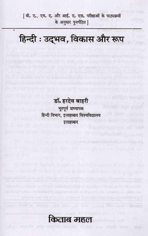 हिन्दी-उद्भव, विकास और रूप: Hindi- Udbhav Vikas Aur Roop