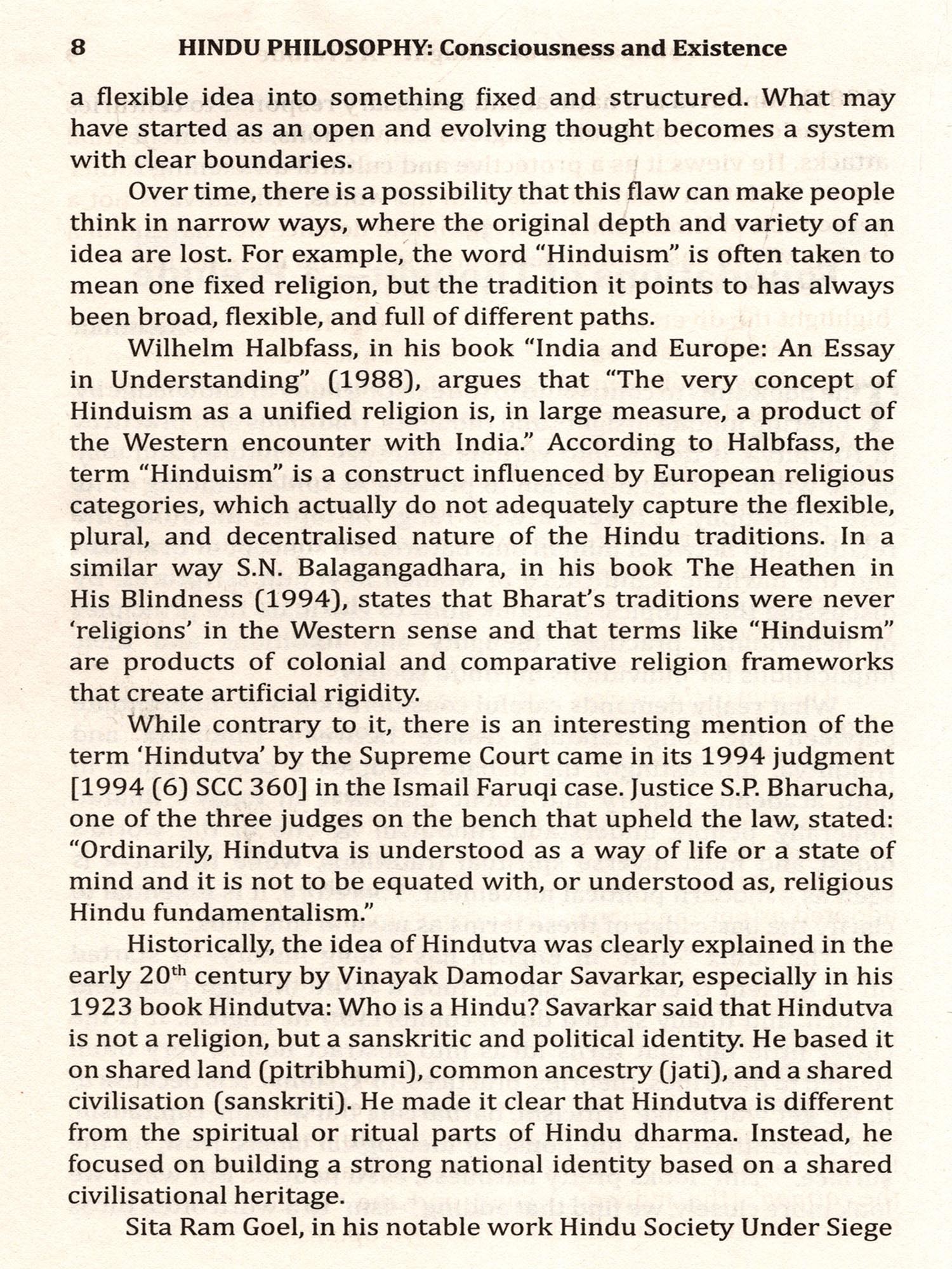 The authors with considerable merit highlight the diverse and inclusive nature of Hindu philosophy, aspects of Hindutva, the significance and need of Hindu philosophy for a holistic understanding of the Hindu way of life for individuals in society.