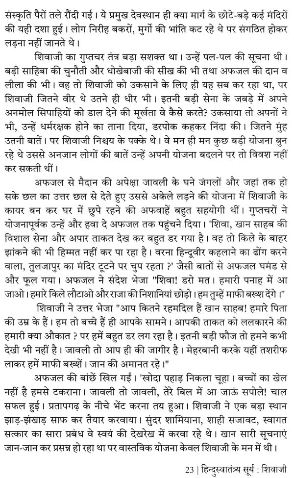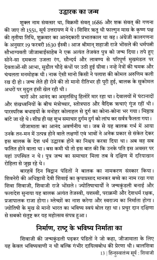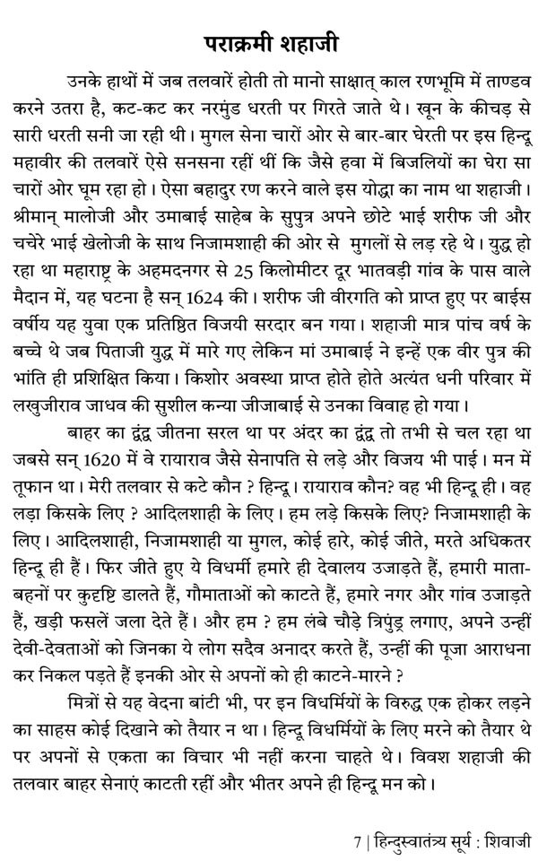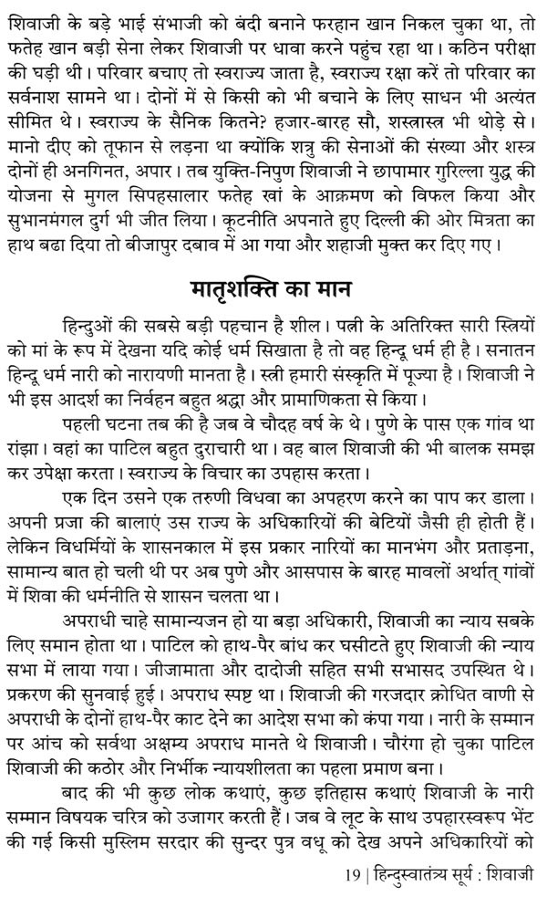 प्रस्तुत पुस्तक "हिन्दुस्वातंत्र्यसूर्य शिवाजी" वैसे तो विद्यार्थियों को केन्द्र में रखकर लिखी है, परन्तु सुधी पाठकों को इसे पढ़कर देशभक्ति, स्वाभिमान तथा स्वराज्य के गौरव की प्रत्यक्ष अनुभूति होगी। यों तो हमारे कार्यकताओं ने पुस्तक के प्रकाशन में पर्याप्त सावधानी रखी है, फिर भी त्रुटियाँ रह जाना सम्भव है। अतः पाठक वर्ग हमें हमारी त्रुटियों की ओर ध्यान दिलाकर अपने कर्तव्य का पालन करेंगे तो हमें अति प्रसन्नता होगी।