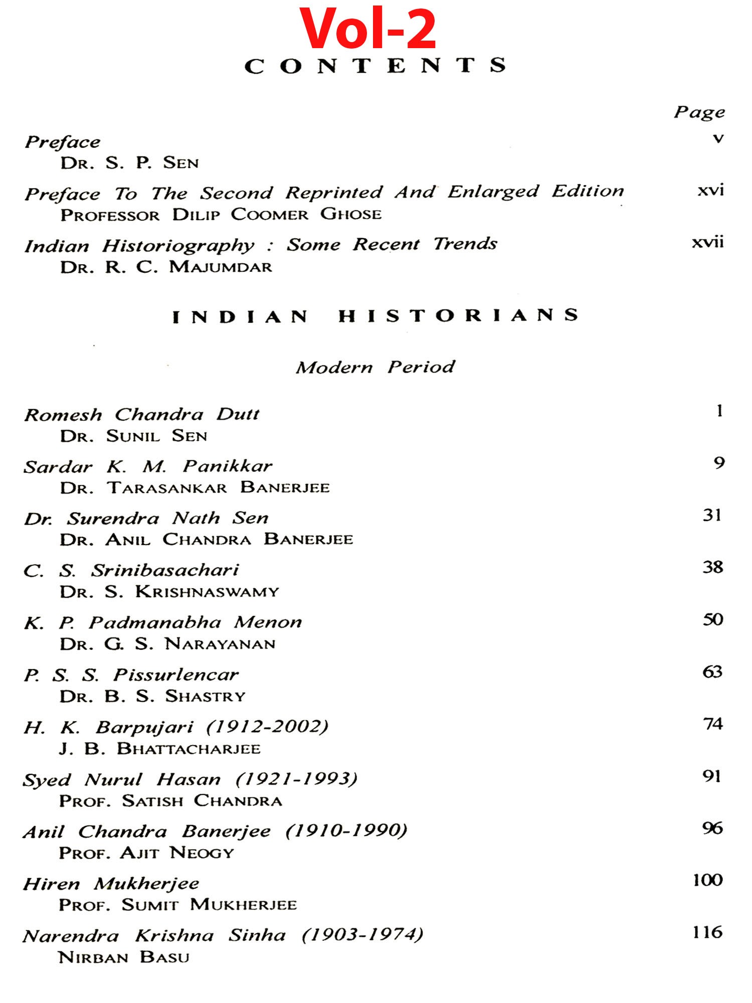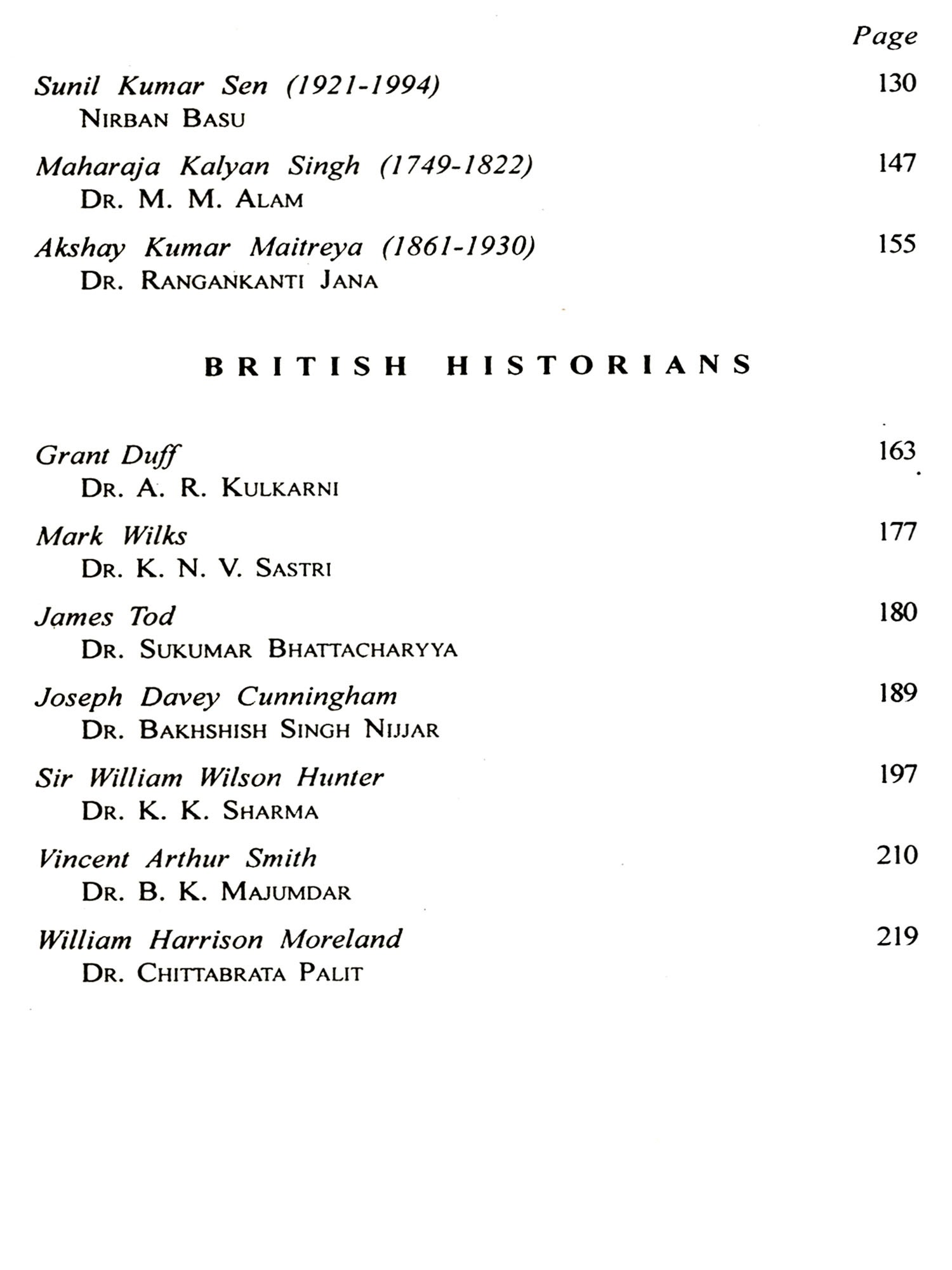 We are quite conscious that our list of names may not please every-body. There are regional and sectional interests which would like to see more names of their particular group or liking included in the volume. We deliberately refrained from making the list too long to please these regional or sectional interests. Our purpose was not to produce a comprehensive Directory of Historians on the lines of the Telephone Directory, but to focus attention on the writings, methodology, ideas, bias, etc. of only the prominent historians in different fields of historical studies. That, in our view, is more useful and instructive than a Directory-like account of Indian historians.