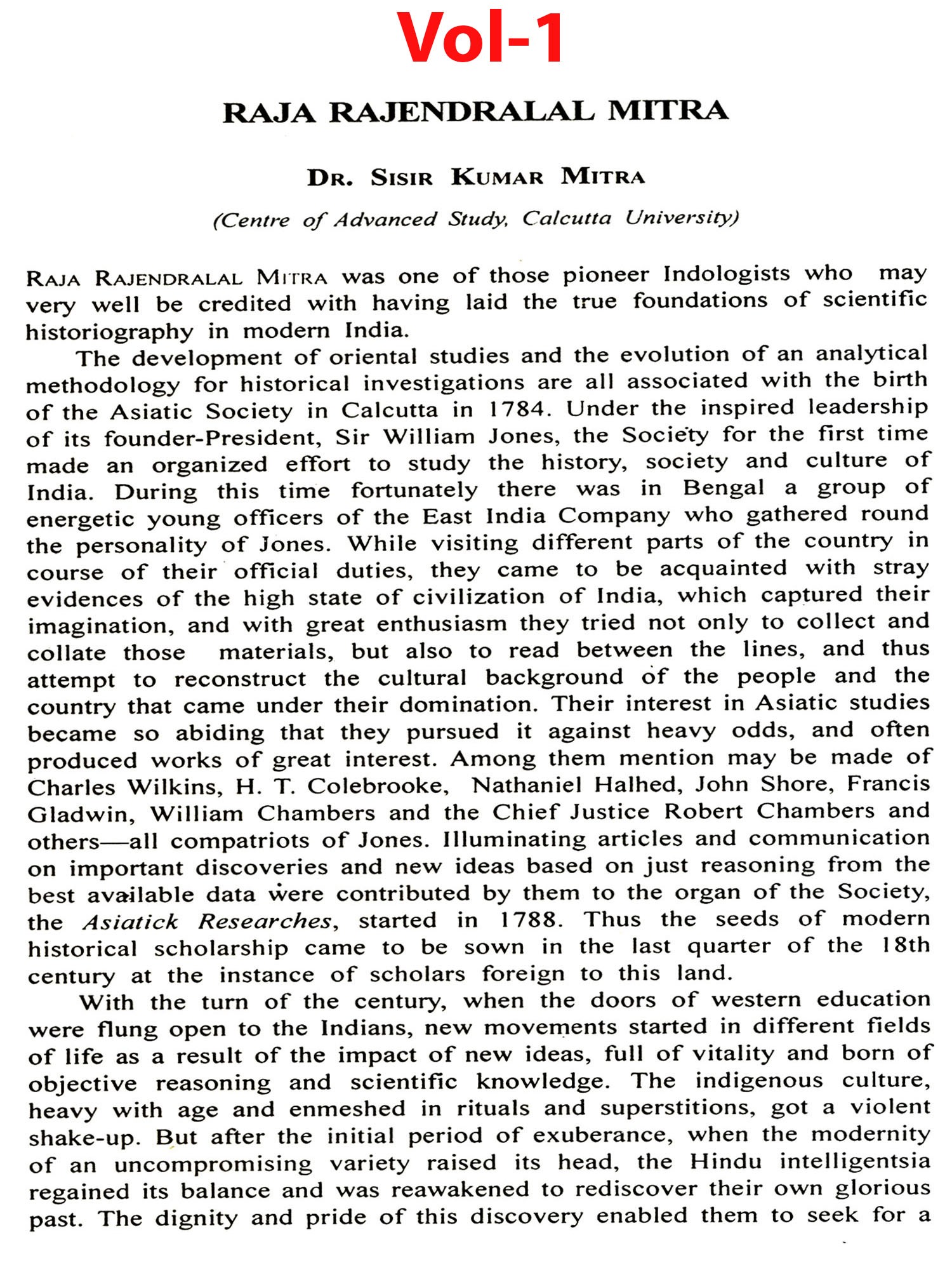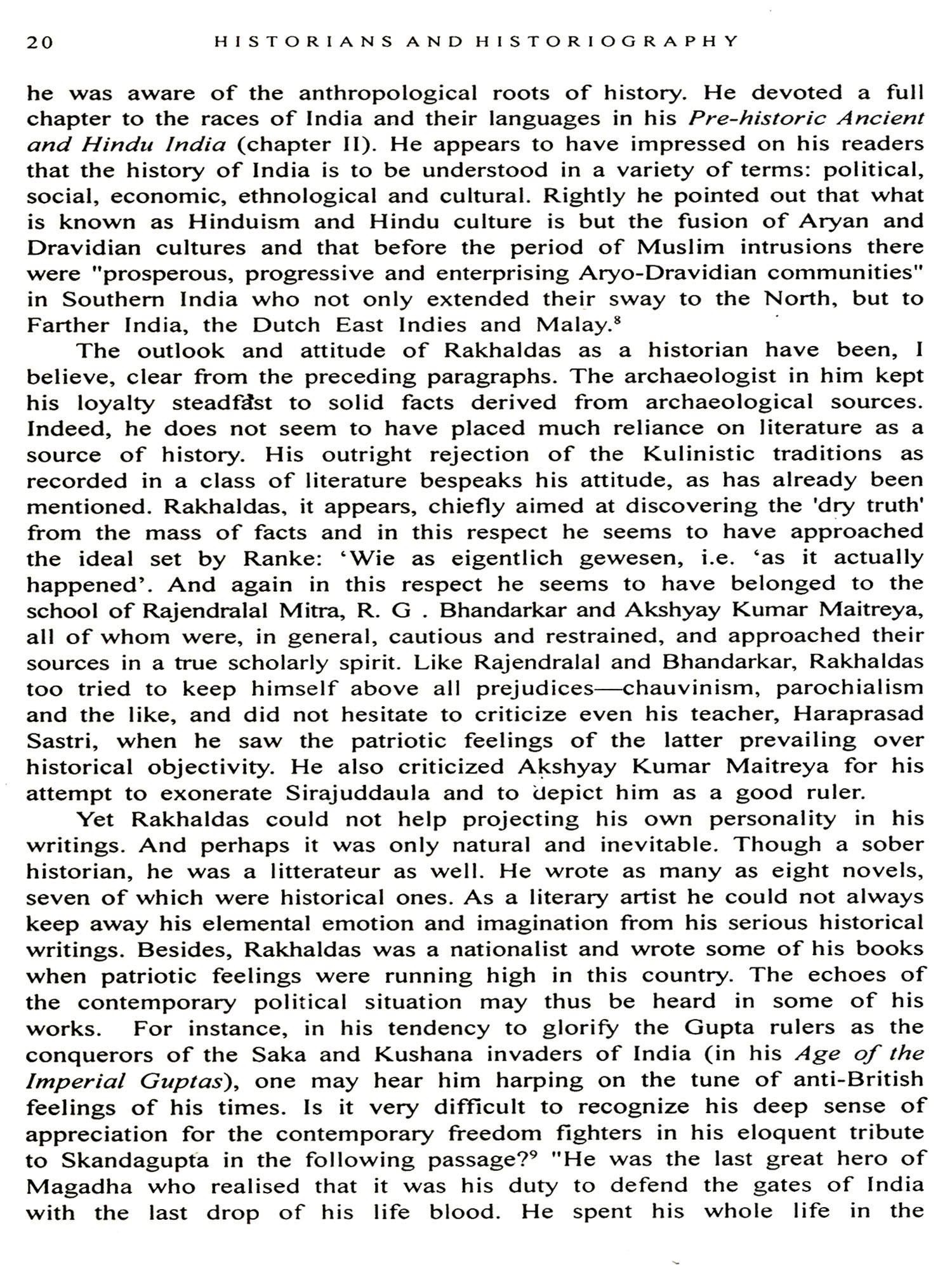 EVERY new entrant to a craft or every practising craftsman should know not only the general principles of the craft but also the actual practise of the master craftsmen of the past. This holds good about the historian's profession also. Historical studies in modern India had started about the middle of the nineteenth century, and in the course of the first hundred years had developed to a remarkable extent. The contributions made by our early historians are not of any lesser importance than those in other countries in the corresponding period of development. New ideas of History had been developed and new methods had been applied in furthering the cause of historical studies in this country from the time of Raja Rajendra Lal Mitra to that of D.D. Kosambi or K. M. Panikkar. To understand the nature of the progress made during the first hundred years of historiography in modern India, it is necessary to study in depth the historical ideas, methodology and major historical writings of those who had contributed most prominently to this progress. Those who are now carrying on the torch lit by the pioneers, and those who aspire to do it in future, should know how the torch had been carried on by the past generations. And the purpose of the present volume is to help them in acquiring that knowledge. It will, perhaps, lead to the growth of new ideas and experimentation with new techniques in keeping with the advance in historical science in recent times. The knowledge of the experiences and practices of the past craftsmen will, it is hoped, lead to better craftsmanship and diversification of interest in future.