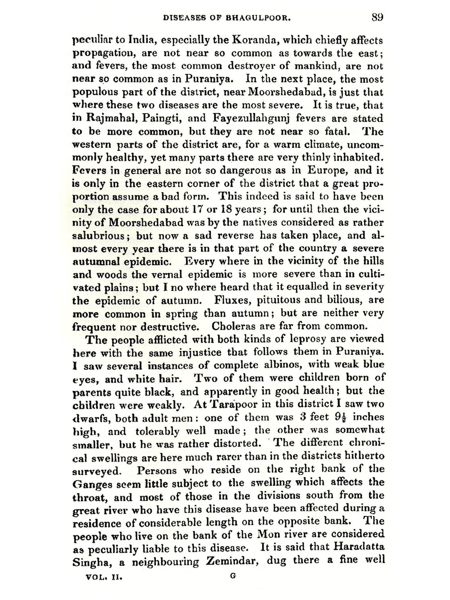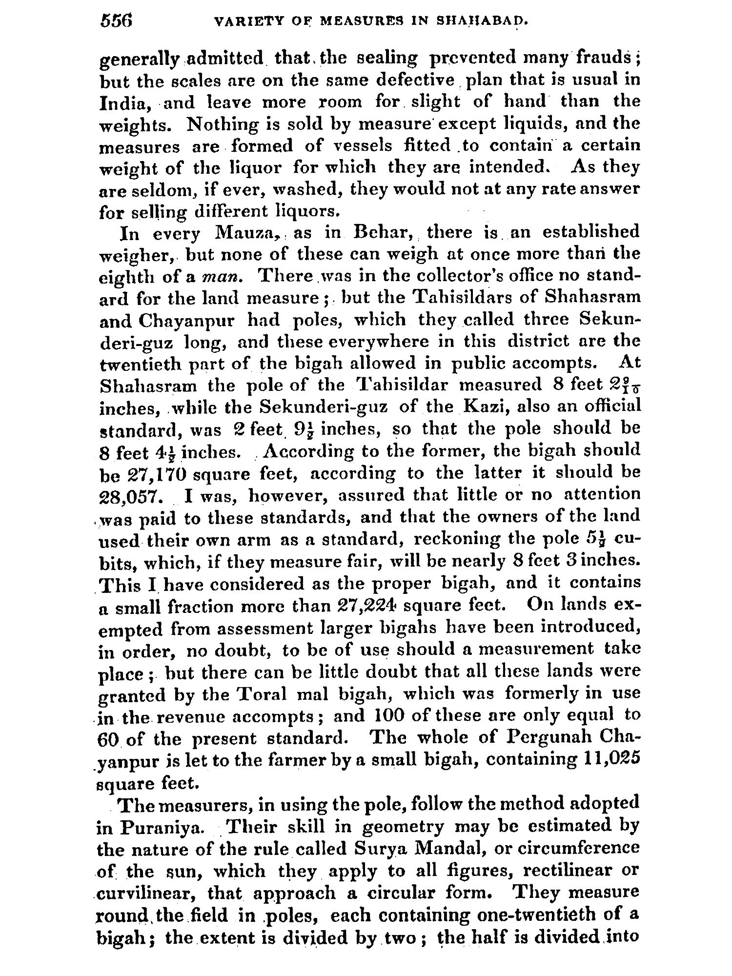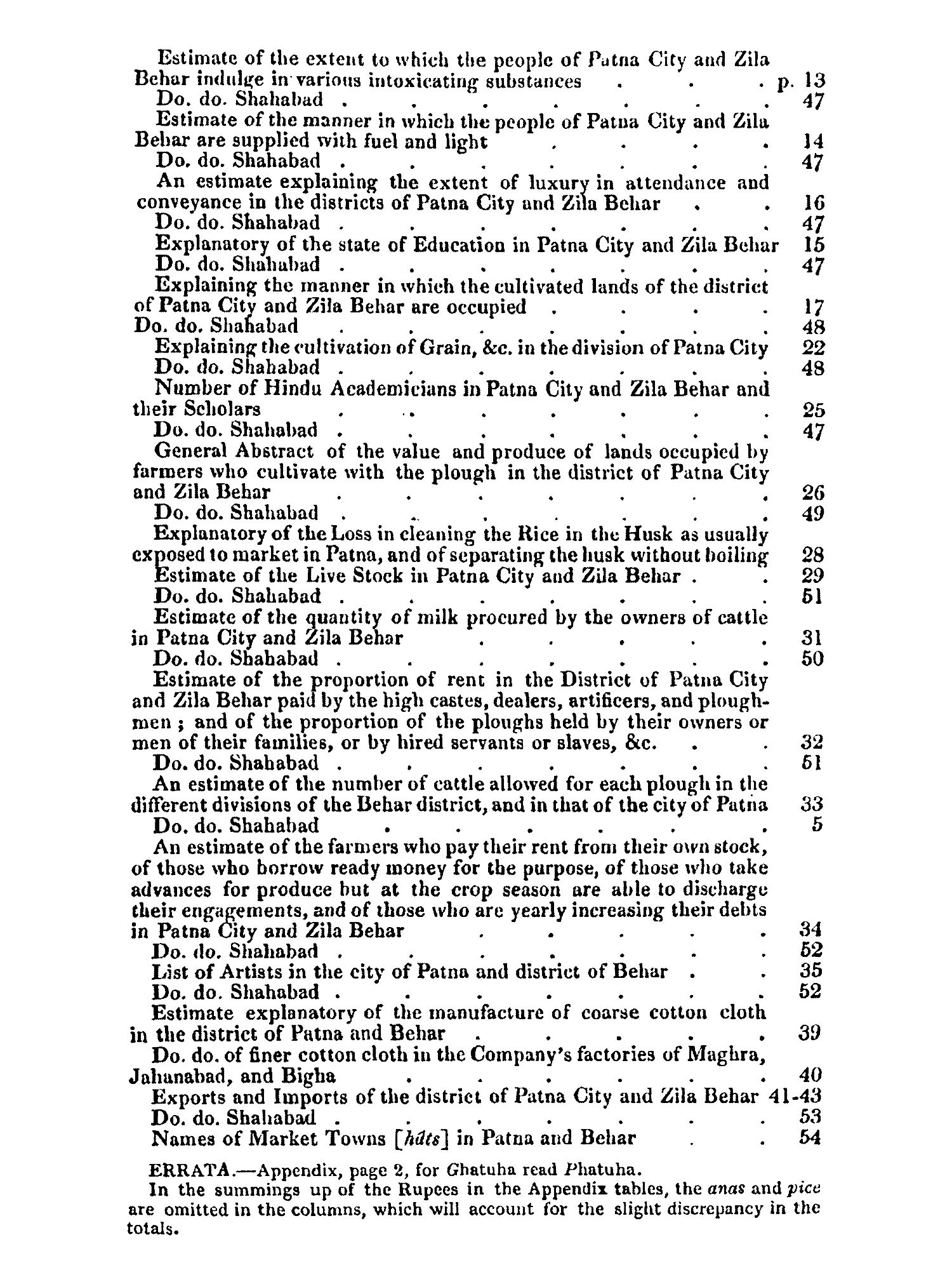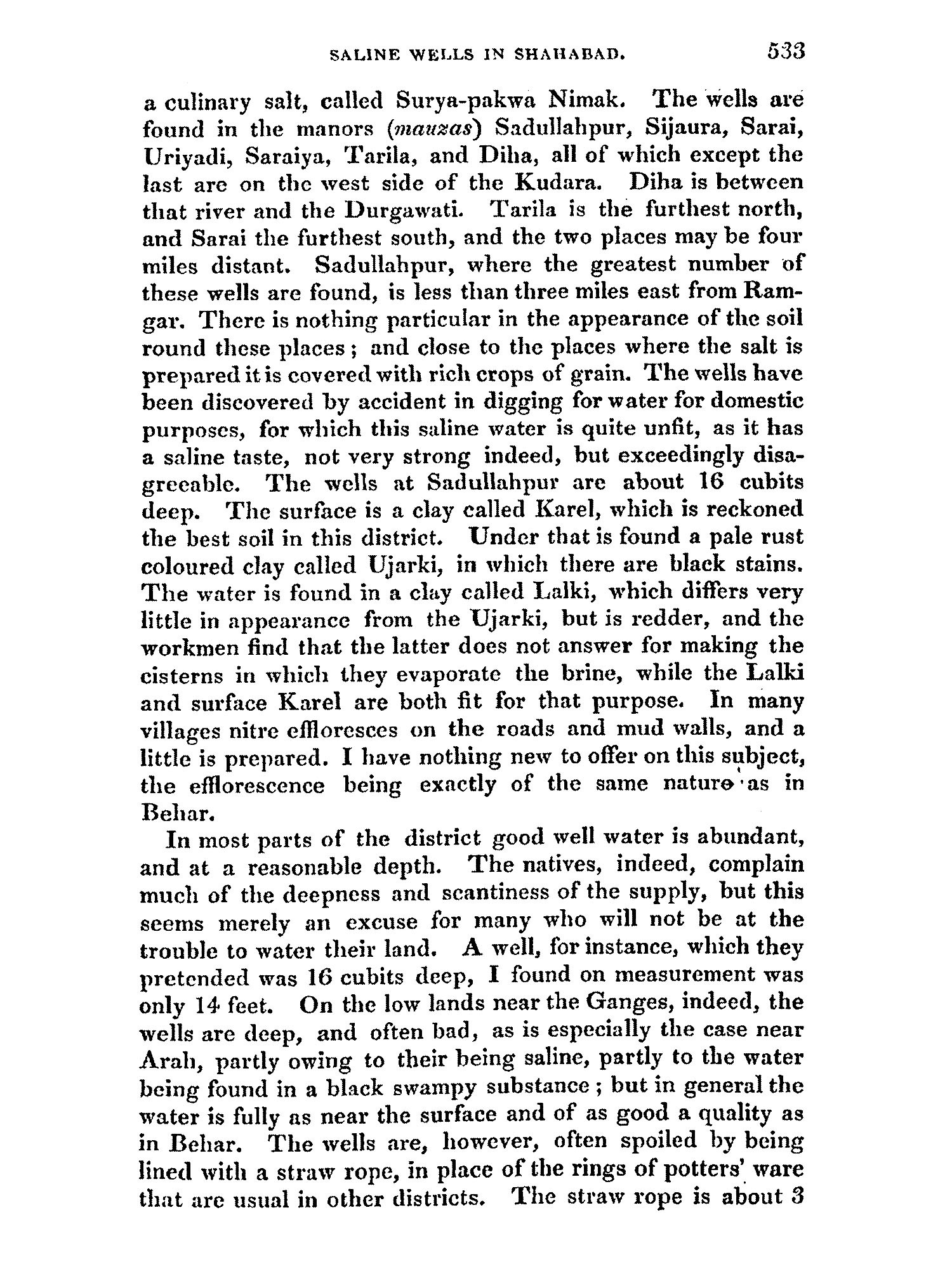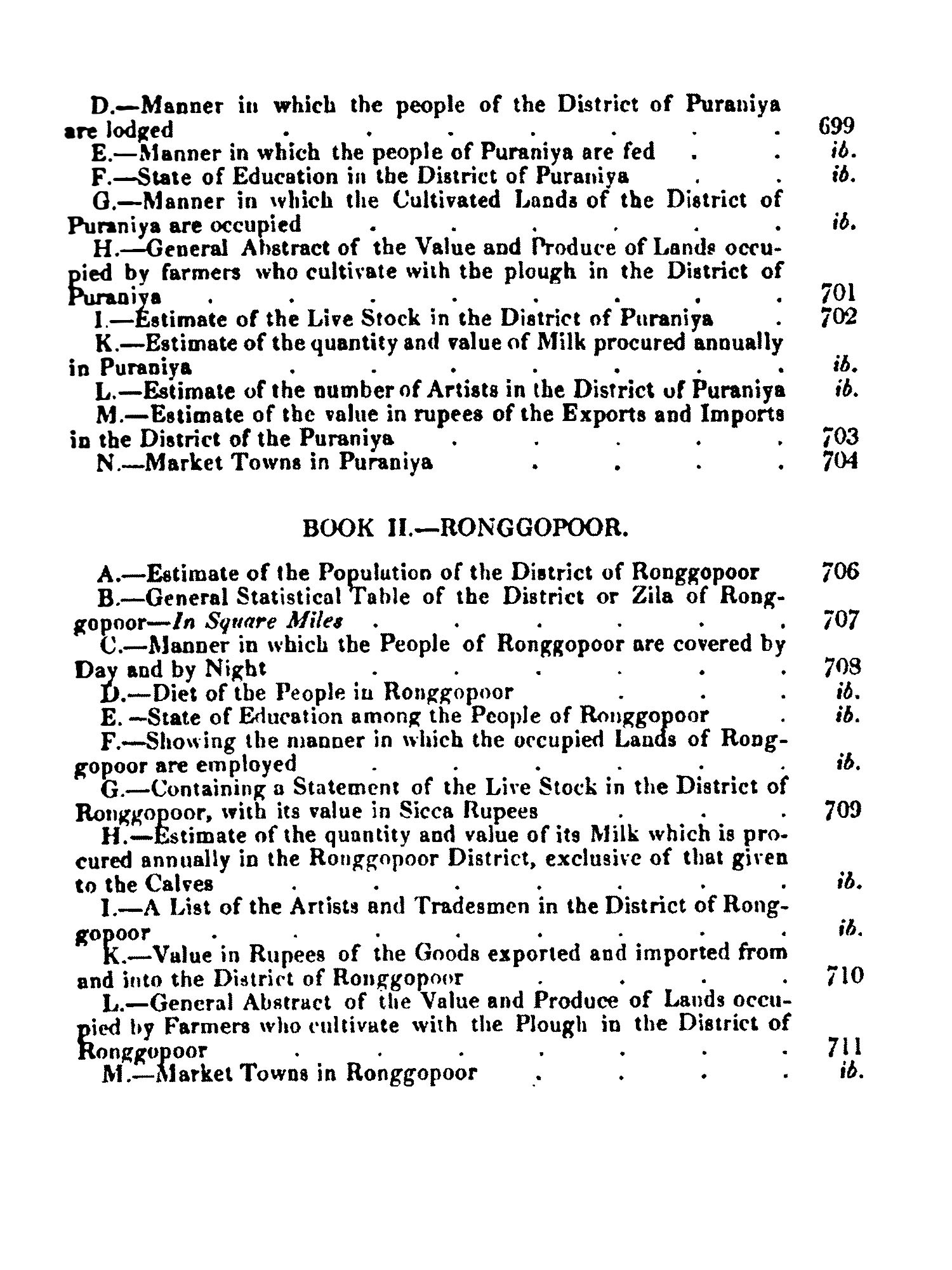 The survey of the districts of Behar and Patna, of Shahabad, Bhagulpoor, Dinajipoor, Goruckpoor, Puraniah, Rung-poor, and Assam, forming the Eastern territories of British India, and containing upwards of 60,000 square miles and nearly 15,000,000 of British subjects, was executed by the Supreme Government of Bengal, under orders from the Court of Directors of the Honourable East India Company, dated the 7th of January, 1807, wherein the honourable Court observe, "We are of opinion that a statistical survey of the country, under the immediate authority of your Presidency, would be attended with much utility; we therefore recommend proper steps to be taken for carrying the same into execution." The Court further added, that Dr. Francis Buchanan, who had been employed by the Marquess Wellesley in the survey of Mysore, and to whom his Lordship had confided the management of the establishment which the noble Marquess formed at Barrackpore for investigating the natural history of India,† should be appointed to undertake the survey. The Governor-General in Council, in conformity with these orders, nominated Dr. F. Buchanan for this important duty, with an allowance of 1500 sicca rupees monthly, exclusive of the pay and batta of his rank, and efficient learned assistants, draftsmen, &c. were appointed to execute his instructions. The extent of the investigation will be seen from the directions issued for the guidance of the survey by the Supreme Government under date 11th Sept. 1807. which were as follows:- "Your inquiries are to extend throughout the whole of the territories subject to the immediate authority of the Presidency of Fort William. "The Governor General in Council is of opinion that these inquiries should commence in the district of Rungpur, and that from thence you should proceed to the westward through each district on the north side of the Ganges, until you reach the western boundary of the Honourable Company's provinces. You will then proceed towards the south and east, until you have examined all the districts on the south side of the great river, and afterwards proceed to Dacca, and the other districts towards the eastern frontier. "It is also desirable, that you should extend your inquiries to the ad-jacent countries, and to those petty states with which the British Govern-ment has no regular intercourse. In performing this duty, however, you are prohibited from quitting the Company's territories, and are directed to confine your inquiries to consulting such of the natives of those countries as you may meet with, or natives of the British territories who have visited the countries in question. "Your inquiries should be particularly directed to the following sub-jects, which you are to examine with as much accuracy as local circum-stances will admit. "1. A Topographical account of each district, including the extent, soil, plains, mountains, rivers, harbours, towns, and subdivisions; together with an account of the air and weather, and whatever you may discover worthy of remark concerning the history and antiquities of the country. "II. The Condition of the Inhabitants; their number, the state of their food, clothing, and habitations; the peculiar diseases to which they are liable; together with the means that have been taken or may be proposed to remove them the education of youth; and the provision or resources for the indigent. "III. Religion; the number, progress, and most remarkable customs of each different sect or tribe of which the population consists; together with the emoluments and power which their priests and chiefs enjoy; and what circumstances exist or may probably arise that might attach them to Government, or render them disaffected. "IV. The Natural Productions of the Country, animal, vegetable, and mineral; especially such as are made use of in diet, in medicine, in commerce, or in arts and manufactures. The following works deserve your particular attention: "Ist. The fisheries, their extent, the manner in which they are con-ducted, and the obstacles that appear to exist against their improvement and extension. "2nd. The forests, of which you will endeavour to ascertain the extent and situation, with respect to water conveyance.