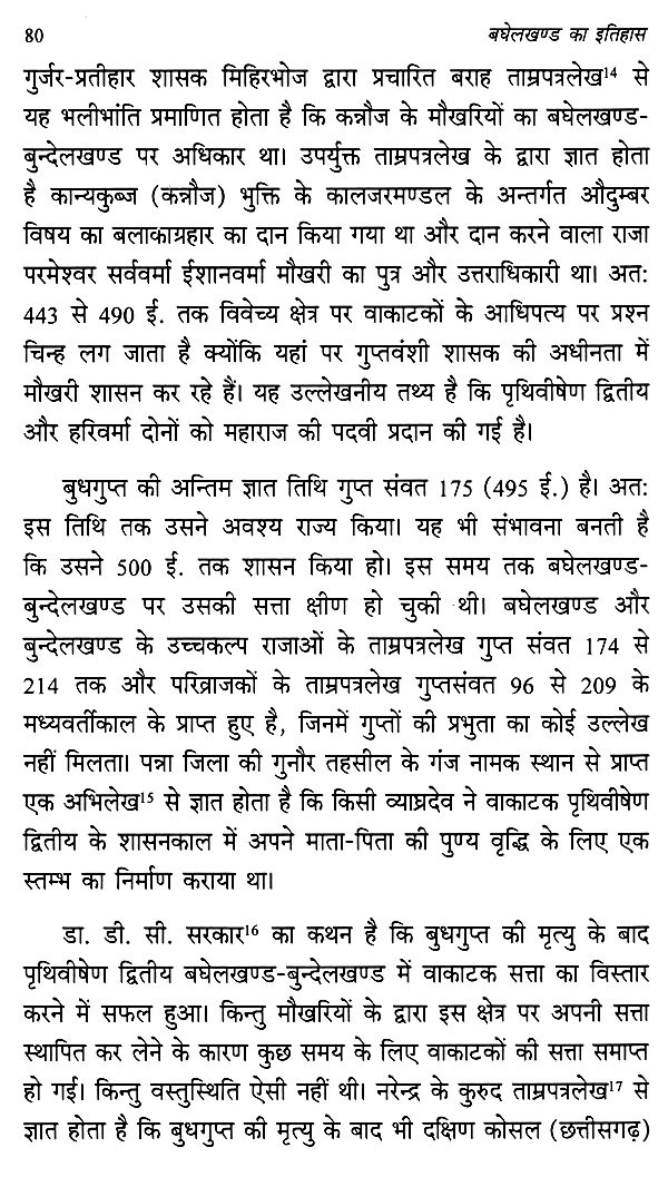 पृ. 23 से लेकर 51 तक साहित्य और अभिलेखीय सन्दर्भों के ऐतिहासिक परिप्रेक्ष्य में स्थलों का वर्णन किया गया है। किन्तु इसके अधिकांश स्थल ऐतिहासिक नहीं है और उन में से अधिकांश ऐसे ग्राम हैं, जो ब्राह्मणों को दान में दिये गये हैं और वे ब्राह्मणों की निजी सम्पत्ति हैं। ऐसे स्थानों में कुछ नाम इस प्रकार हैं- आश्रमक, ओपाणि, कलभिकुण्ड, काचरपल्लिका, चित्रपल्ली, छन्दापल्लिका। लेखक ने ऐतिहासिक नगरों के अन्तर्गत कोठी, दुर्जनपुर, खलेसर, नरोगढ़ का उल्लेख नहीं किया। अजयगढ़ दुर्ग (पृ. 35) बालुवाहिनी नदी की घाटी में नहीं अपितु केन नदी घाटी में स्थित है।