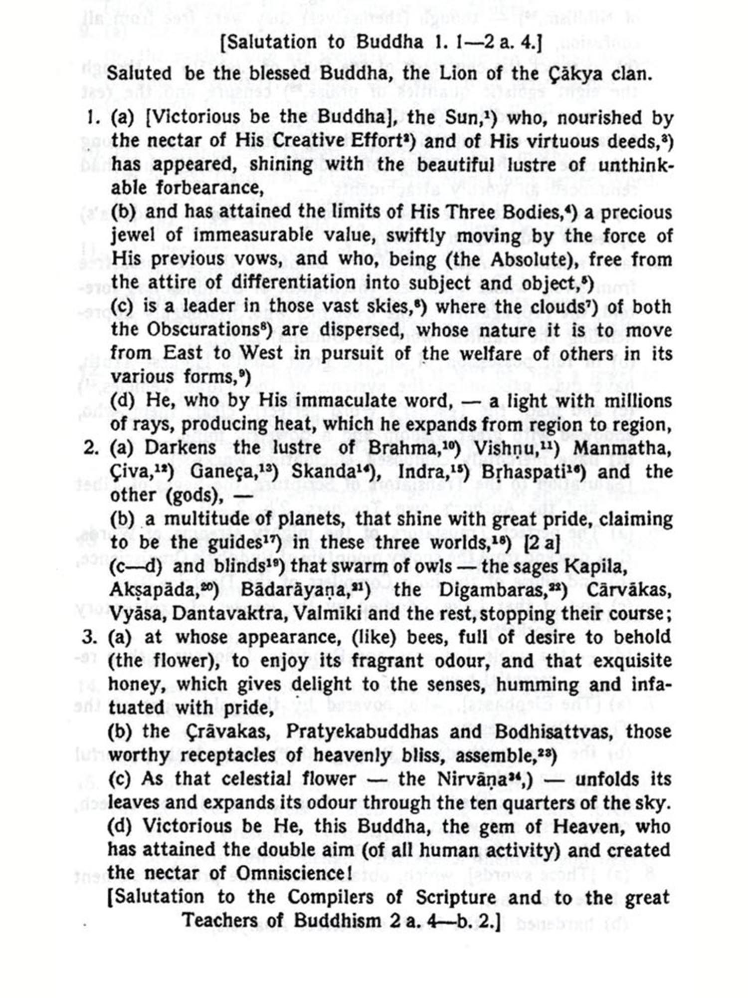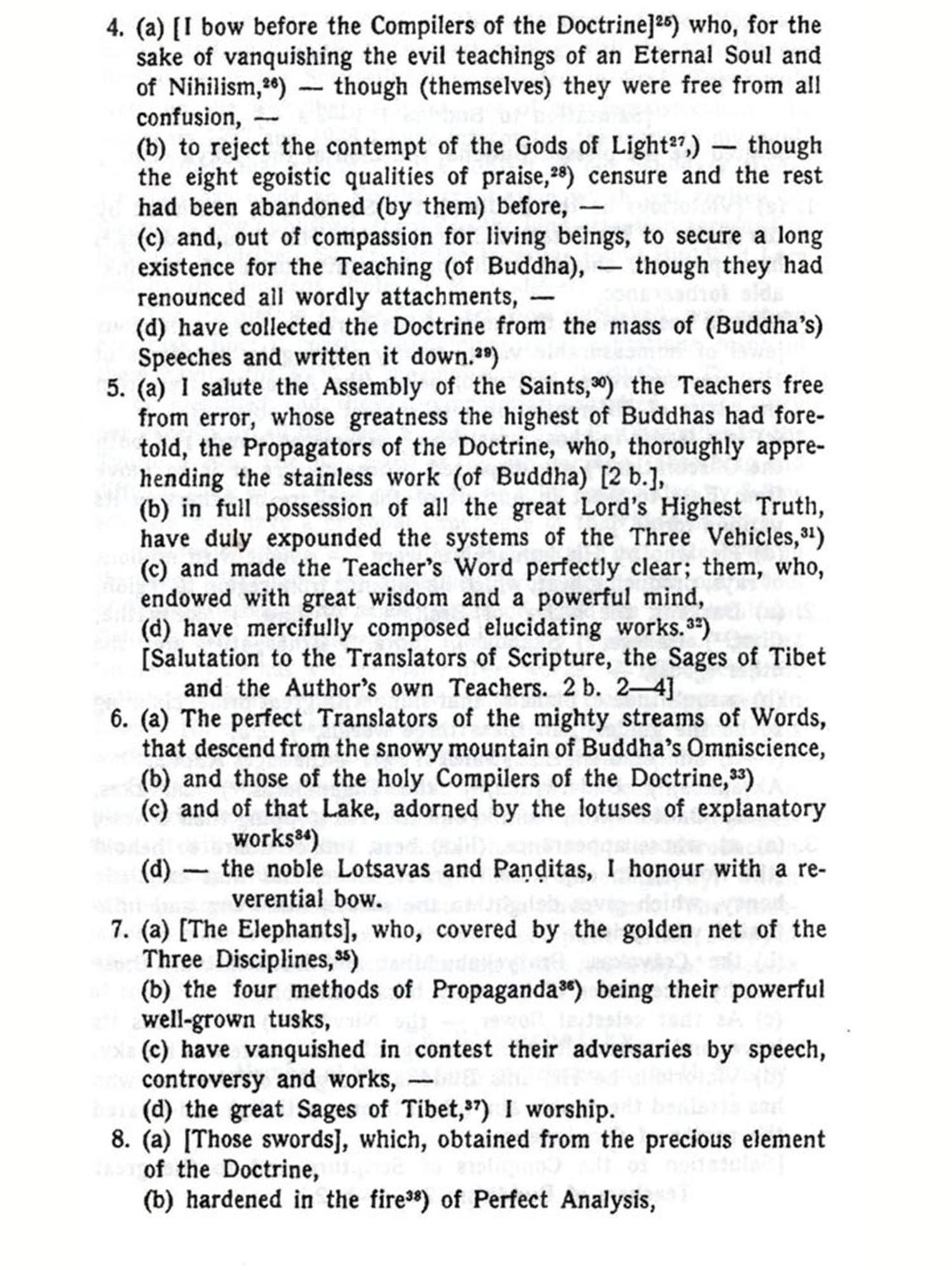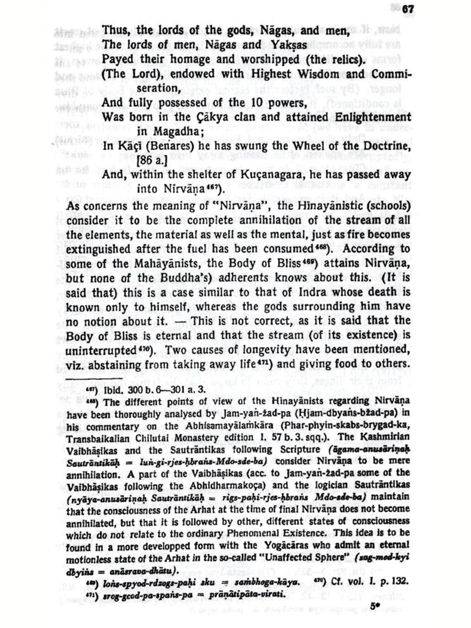 The translation of the first part, now published, was not an easy task, since it consists predominantly of quotations, many of them having the form of mnemonic verse (karika's). They had to be identified and their commentaries consulted. With very few exceptions all has been found out by E. E. Obermiller in the Tanjur works. The high merit of this self-denying, absorbing and difficult work will, I have no doubt, be fully appreciated by fellow scholars who have a personal experience of that kind of work.