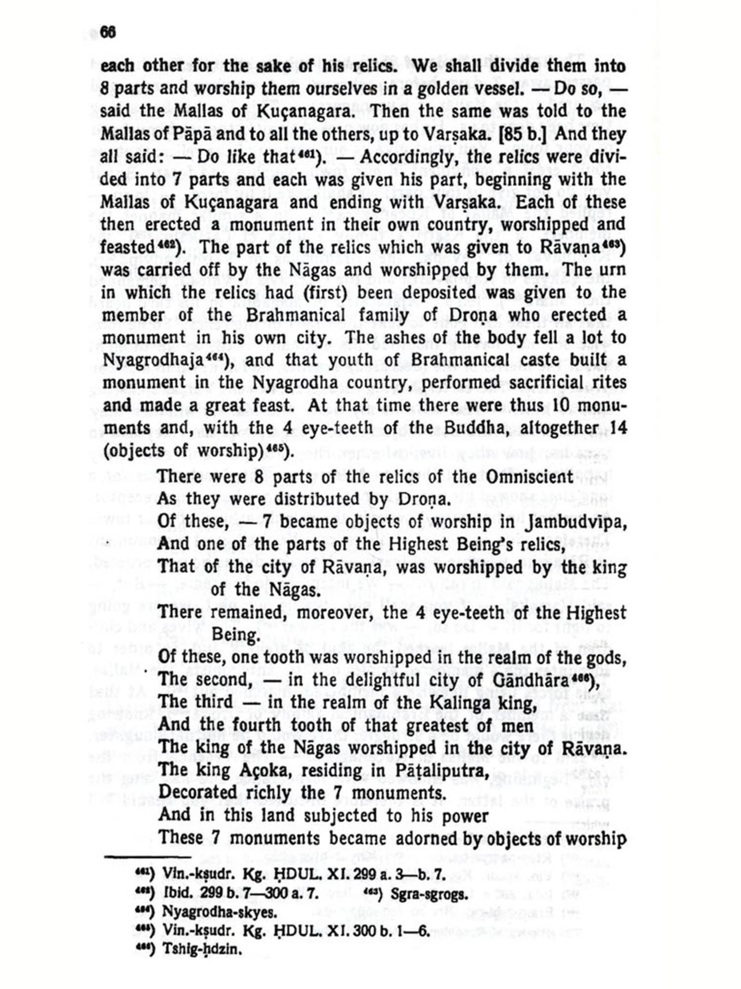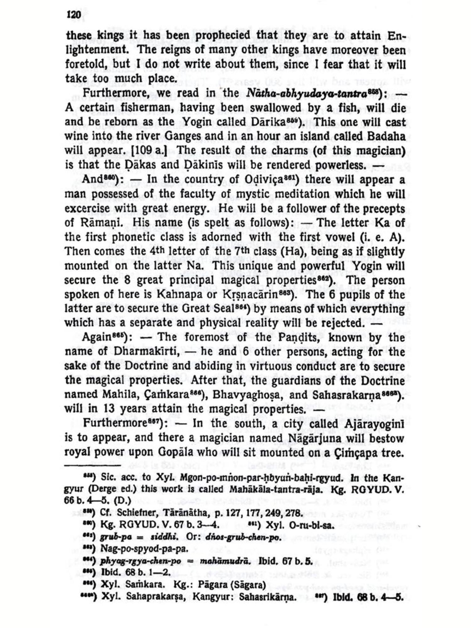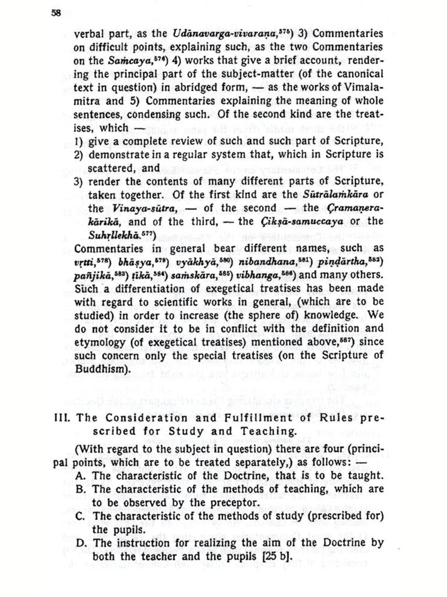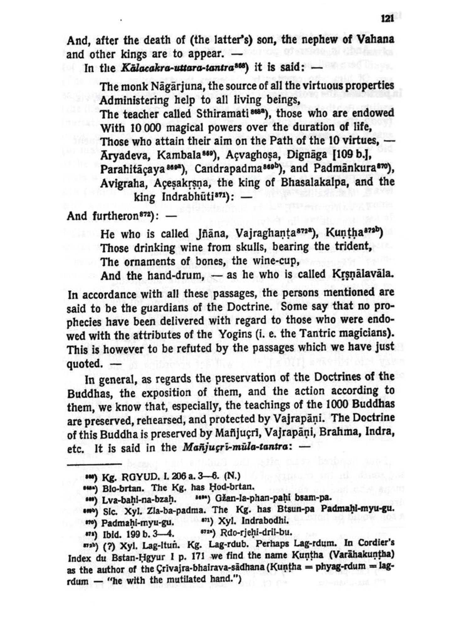 The translation of the first part, now published, was not an easy task, since it consists predominantly of quotations, many of them having the form of mnemonic verse (karika's). They had to be identified and their commentaries consulted. With very few exceptions all has been found out by E. E. Obermiller in the Tanjur works. The high merit of this self-denying, absorbing and difficult work will, I have no doubt, be fully appreciated by fellow scholars who have a personal experience of that kind of work.