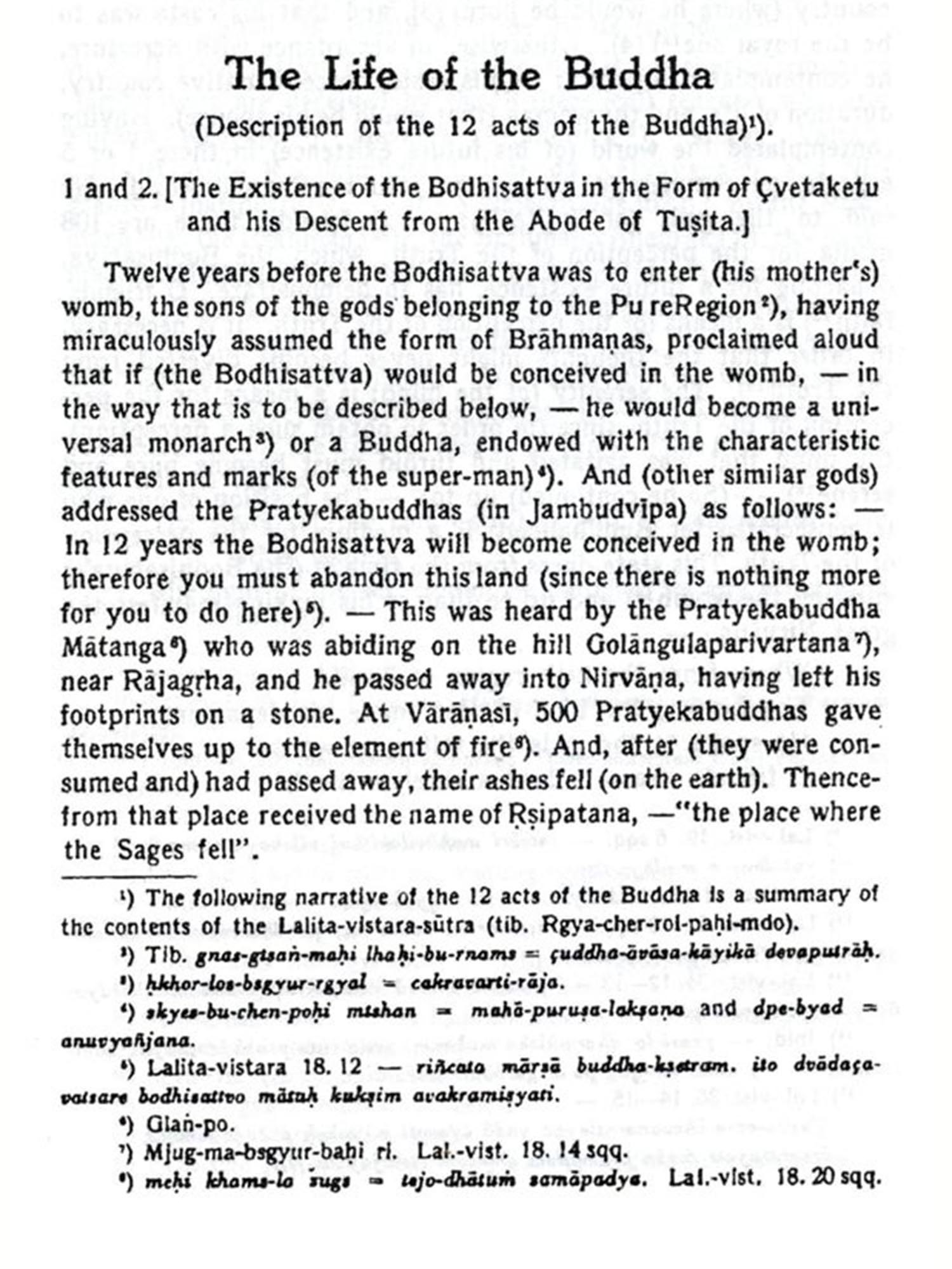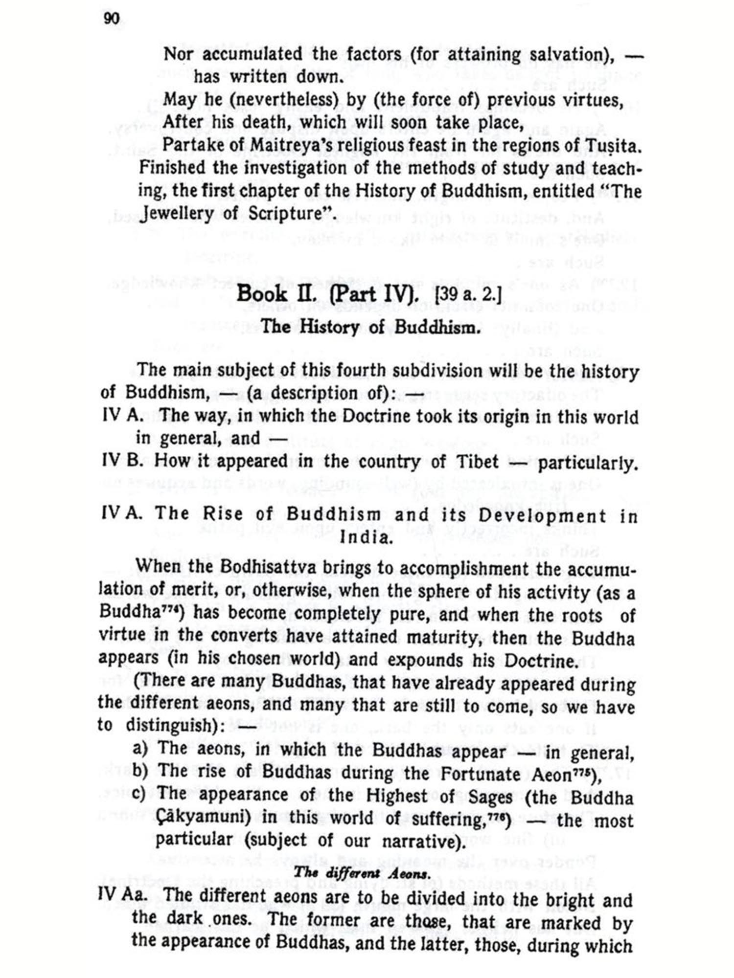 To European readers Tibetan historiography is known from Täränatha's History of Buddhism in India, translated simultaneously by two members of the St. Petersburg Academy of Science, W. P. Wassilieff into Russian and A. Schiefner into German.) But this is not the only work of this kind which the Tibetan litterature contains. There are many others. Among them,, The History of Buddhism in India and Tibet"") by the great scholar Bu-ston Rin-chen-grub-pa (pronouce Budon Rinchendub), also called Budon Rinpoche, is held in great esteem by Tibetan and Mongolian learned lamas. It is distinguished from the work of Taranatha by the plan of its composition. It consists of three parts. The history proper is preceded by a systematical review of the whole of Buddhist literature so far as preserved in Tibet, and it is followed by a systematical catalogue of works, authors and translators of all the literature contained in the Kanjur and Tanjur collections. The first part is of an overwhelming scientifical value. It represents a synthesis of everything which directly or remotely bears the stamp of Buddhism, that synthesis which is also the ultimate aim of the European investigation of that religion. The whole of its literature, sacred and profane, is here reviewed as divided in periods, schools and subject-matter. No one was better qualified for such a task than Budon, for he was one of the redactors of the Kanjur and Tanjur great collections in their final form. As a matter of fact his "History" is but an introduction and a systematical table of contents to the Narthan editions of the Kanjur and Tanjur. His work has not failed to attract the attention of European scholarship. Wassilieff quotes it in the first volume of his Buddhism, Sarat Candra Das has translated some excerpts out of it. I myself have published a translation in French, in the Museon 1905 ("Notes de littérature bouddhique. La littérature Yogacara d'apres Bou ston"), of the part devoted to the litterature of the Yogacara school, and, in English, of the part dealing with the Abhidharma litterature of the Sarvastivadins, included in Prof. Takakusu's work on the Abhidharma litterature of the Sarvastivadins. In the years 1927 and 1928 I have interpreted the work to my pupil E. E. Obermiller making it the subject of our seminary study. He then has made an English translation which was revised by me and is now published, thanks to the kind attention accorded to it by the Heidelberg Society for the Investigation of Buddhist Lore and by its president Professor M. Walleser.