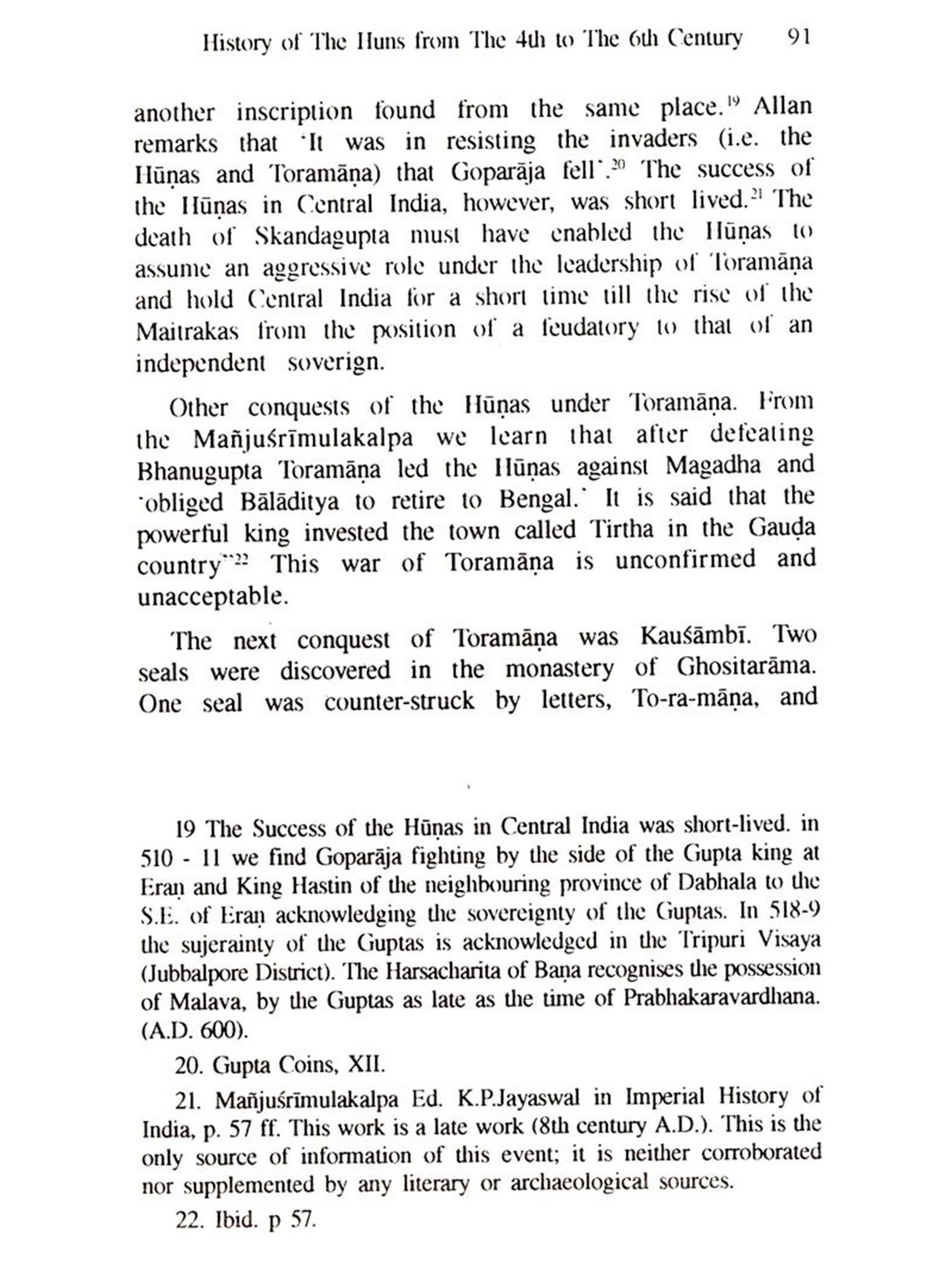 I have attempted to present in my book an account of the Hūņas in India from about the 5th century A.D. to the 12th century A.D. and also a complete study of their early history before they came to India.