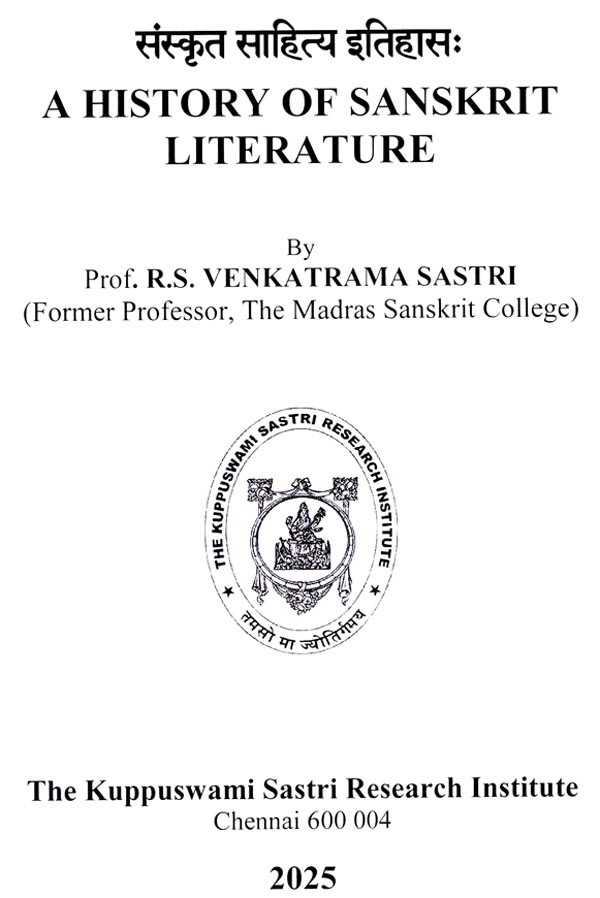 The book History of Sanskrit Literature was written and published about fifty years ago by Brahmasri R.S. Venkatarama Sastri who was Professor in Madras Sanskrit College as well as in the Vivekananda College. He was a great Sanskrit scholar with a fine sense of critical appreciation of Sanskrit Literature. He had a fine musical voice with which he used to enrapture audiences with his musical renderings of chosen verses of Sanskrit especially from Kalidasa's works and Srimad Valmiki Ramayana.
