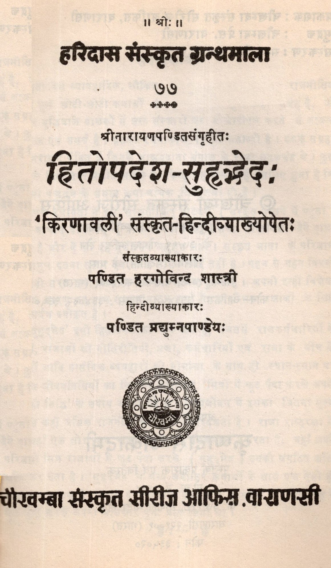 हितोपदेश-सुहृद्भेदः किरणावली' संस्कृत-हिन्दीव्याख्योपेतः: Hitopadesha-Suhridbhedah Kiranavali' with Sanskrit-Hindi Explanation (An Old and Rare Book)