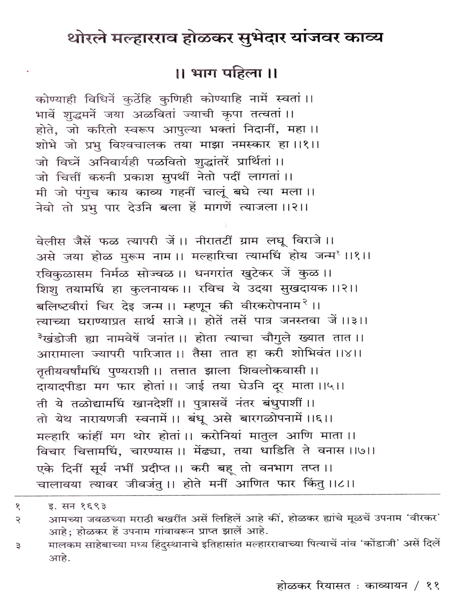 सुभेदार थोरले मल्हारराव होळकर यांचें चरित्र: Subhedar Thorle Malharrao Holkar Yanche Charitra in Marathi (Vol-10, Part-1)