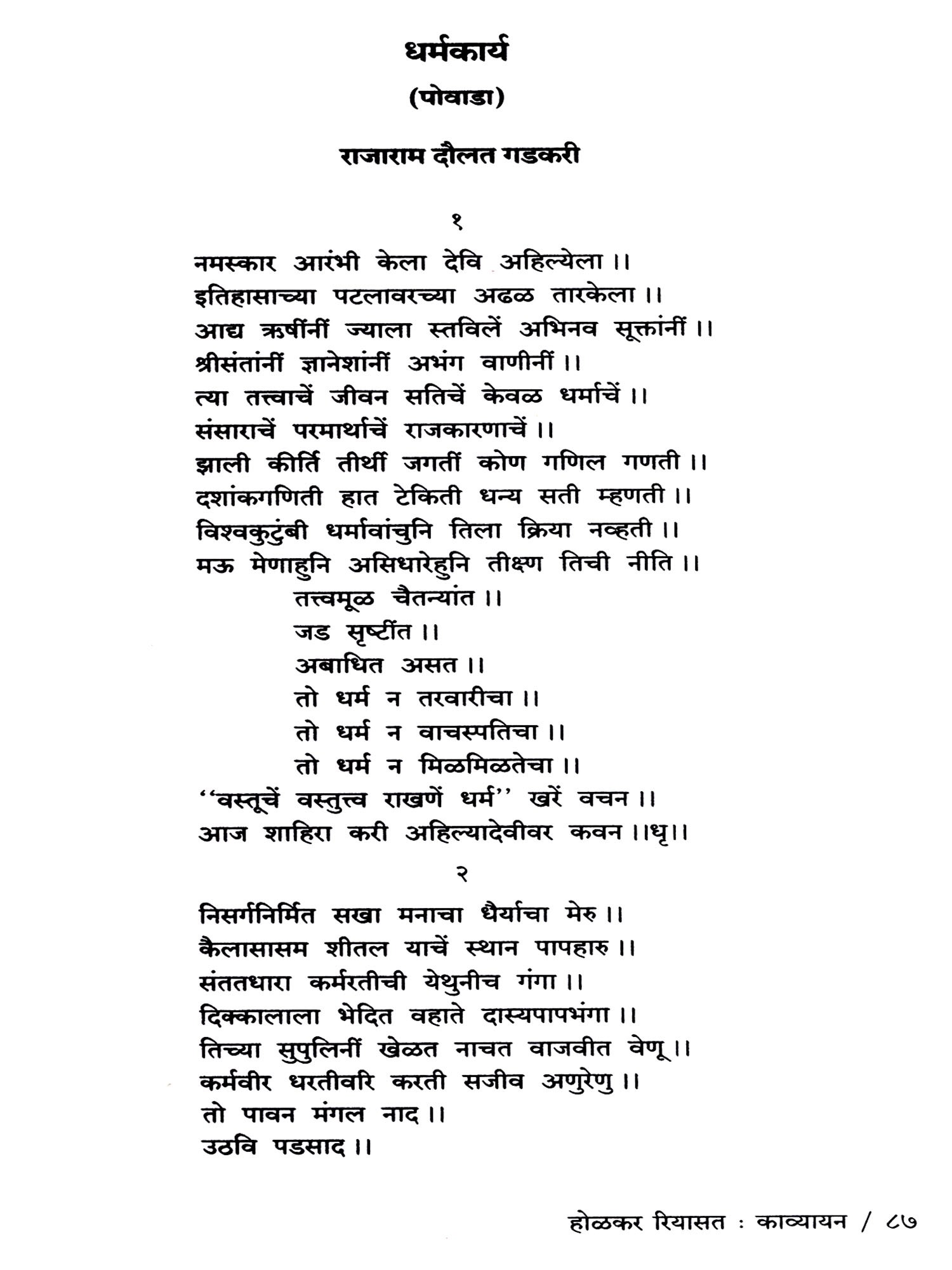 पुण्यश्लोक अहिल्यादेवी होळकर: Punyashloka Ahilyadevi Holkar (Marathi)