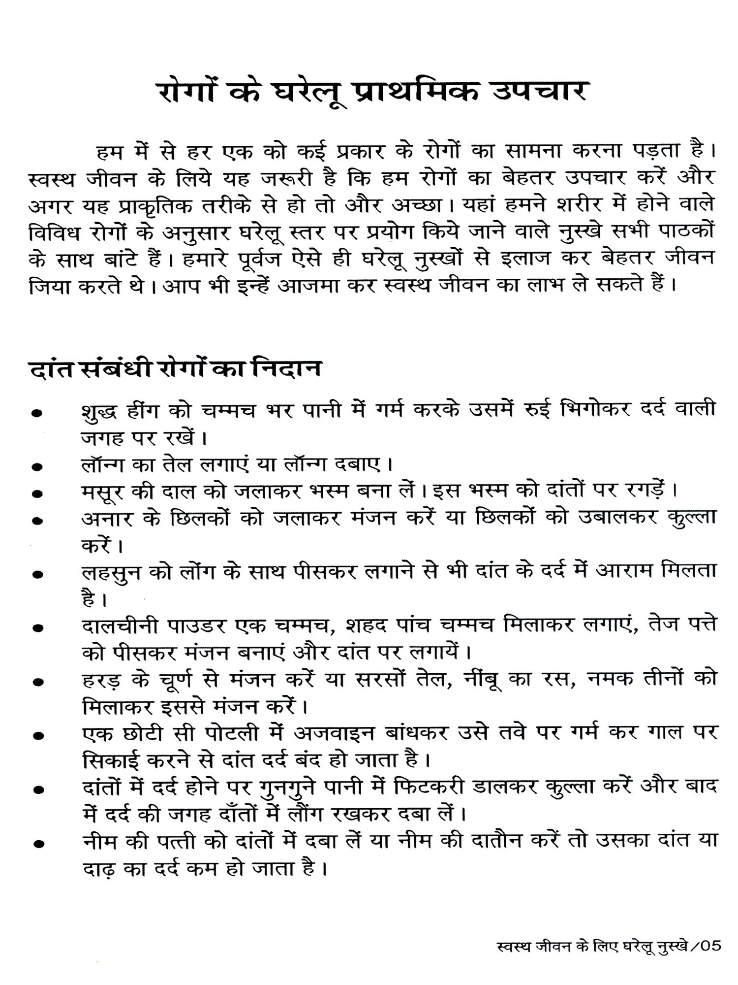 इस पुस्तक का उद्देश्य ऐसी ही दैनिक समस्याओं का उपचार घरेलू संसाधनों के माध्यम से सभी पाठकों तक पहुंचाना है। विशेष बात यह है कि उपचार की सारी सामग्री हमारे ही घरों में मौजूद है बस हमें उनसे उपचार की सही जानकारी उपलब्ध नहीं है। इस पुस्तक में बताये गये निर्देशों के अनुसार सभी पाठक रोगों का प्राथमिक उपचार घरेलू संसाधनों से कर सकते हैं, इससे उन्हें बेहद लाभ होगा। अलग-अलग केटेगरी के अनुसार यहां रोगों के प्राथमिक उपचारों के निर्देश दिये गये हैं।