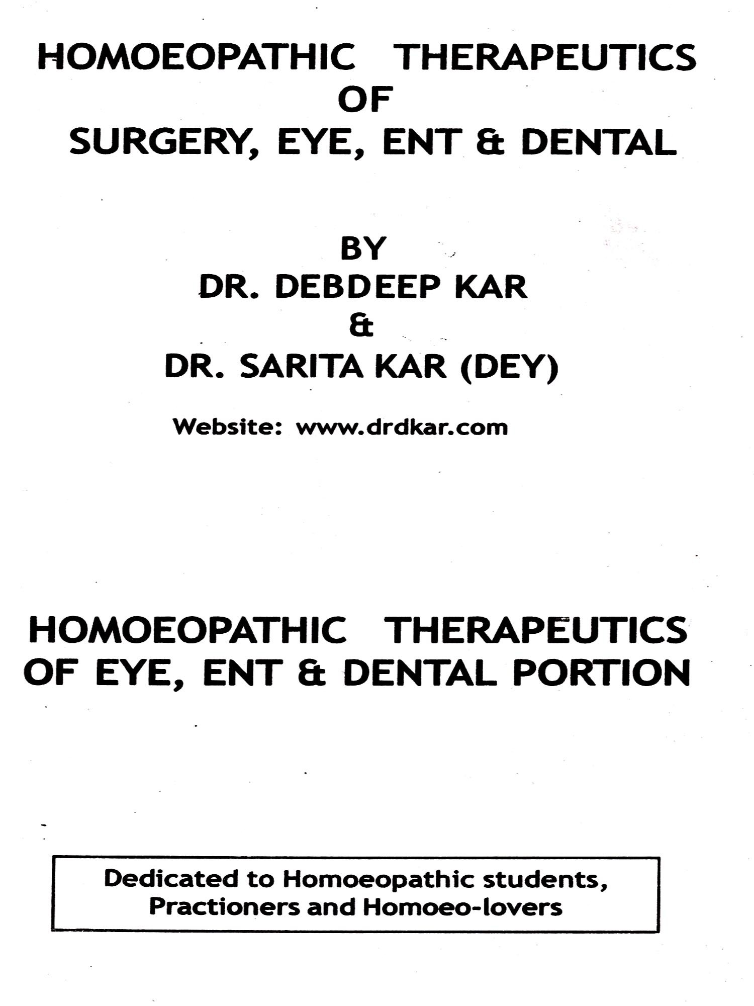 Homoeopathic Therapeutics of Surgery, Eye, Ent & Dental