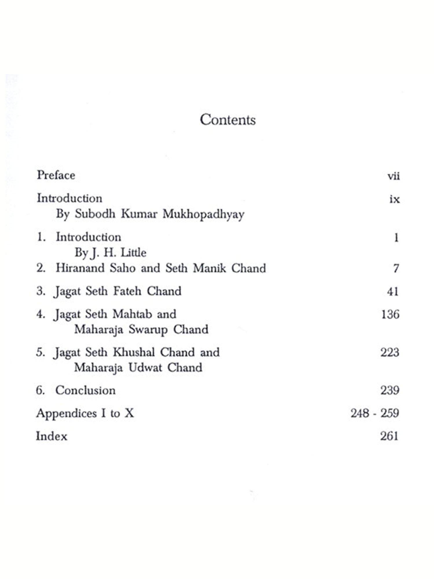 The House of Jagat Seth by J. H. Little first appeared in the form of two articles in the Bengal Past and Present in 1920-21. The book is very useful for the students of Bengal as it has a wealth of materials for the economic and political history of the eighteenth century. The student of modern Indian history may consult it with profit for it has plenty of first-hand materials. This book was first published by the Calcutta Historical Society in 1967 with an introduction by Professor N. K. Sinha. But that edition of the book was out of print for a long time. I thank KP Bagchi & Company for bringing out the second edition of the book which was overdue. I dedicate this edition of the book to the memory of my esteemed teacher Professor N. K. Sinha who did pioneering work in the field of Bengal's economic history.