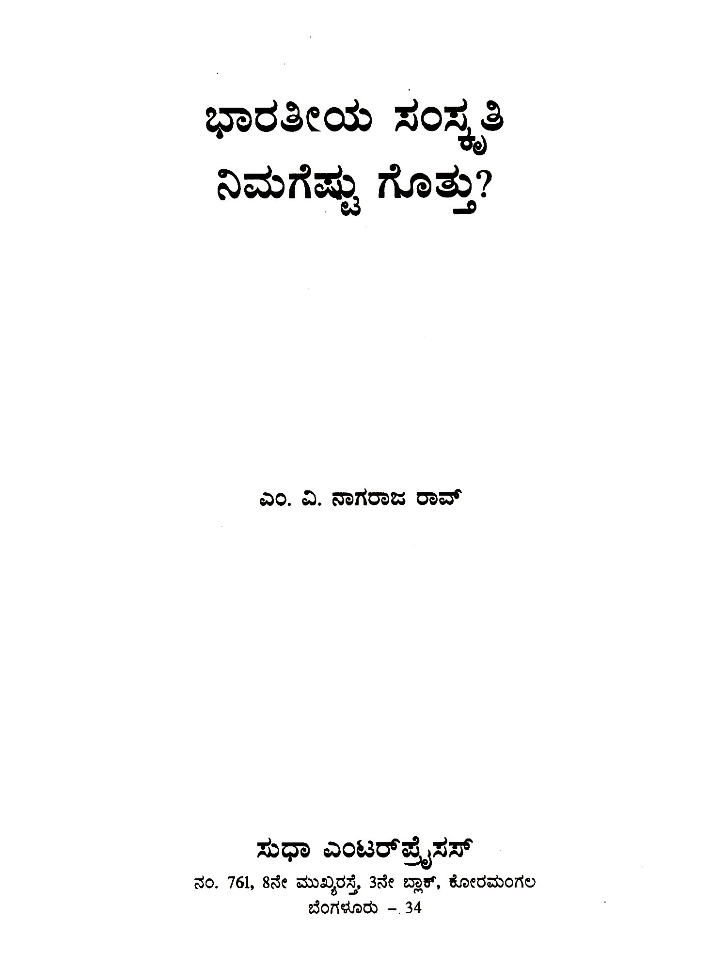 Bharatiya Samskrutiya Adipayagalu- The Foundations of India Culture (Kannada)