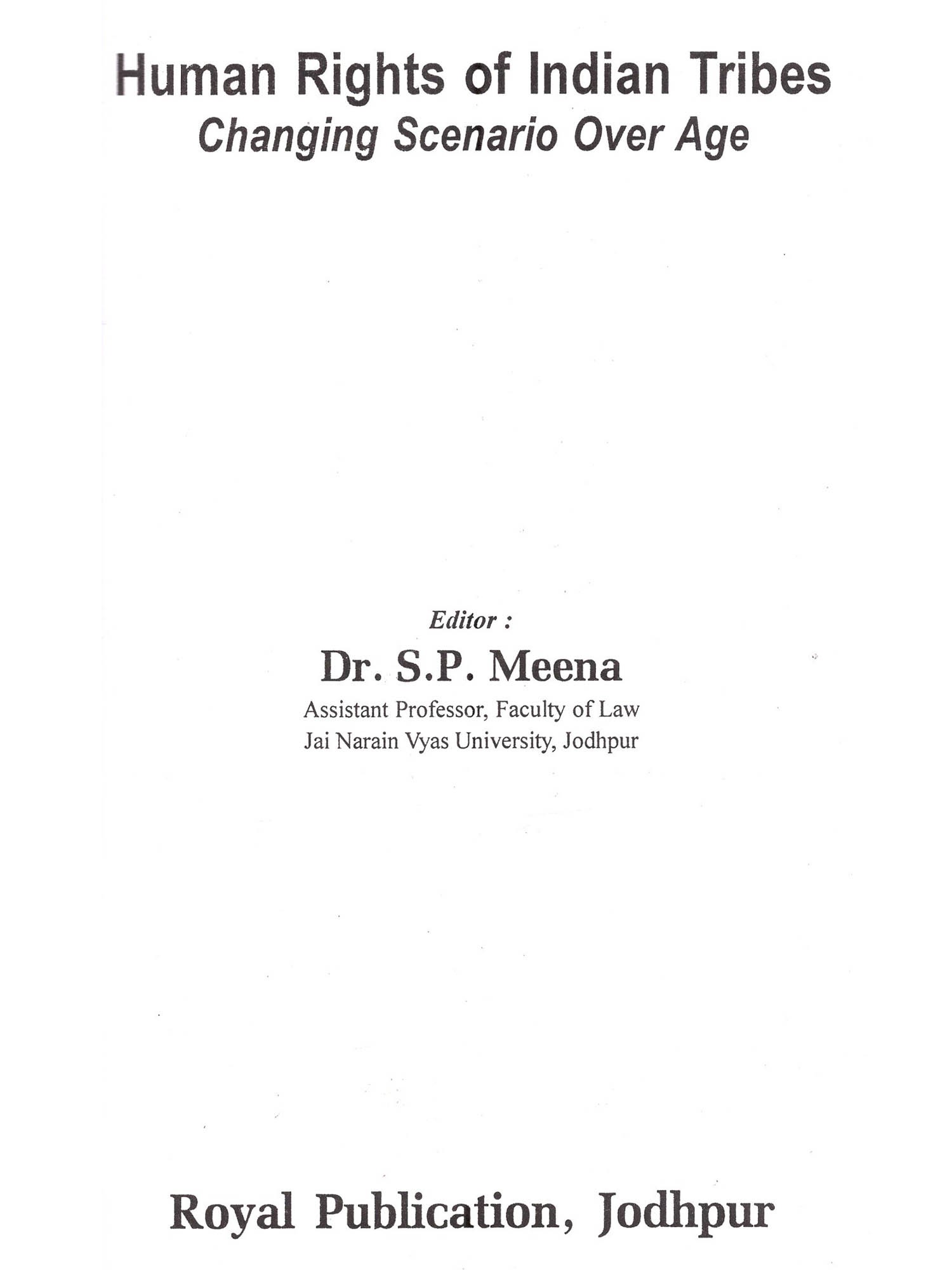 Dr. Sheetal Prasad Meena is Assistant Professor, Faculty of Law, Jai Narain Vyas University, Jodhpur, He received doctoral degree from college of law, M.L.S. University, Udaipur and lead a vast years teaching experience at M.L.S. University (College of Law). He has Participated as well as presented papers in various International and National Conferences/Seminars/Work-shops. He has organized National conf-erence sponsored by U.G.C. & I.C.S.S.R. on Topic "Human Rights of Tribes in India: Present Position and Prospectus", recently in 1 & 2 Feb. 2015.