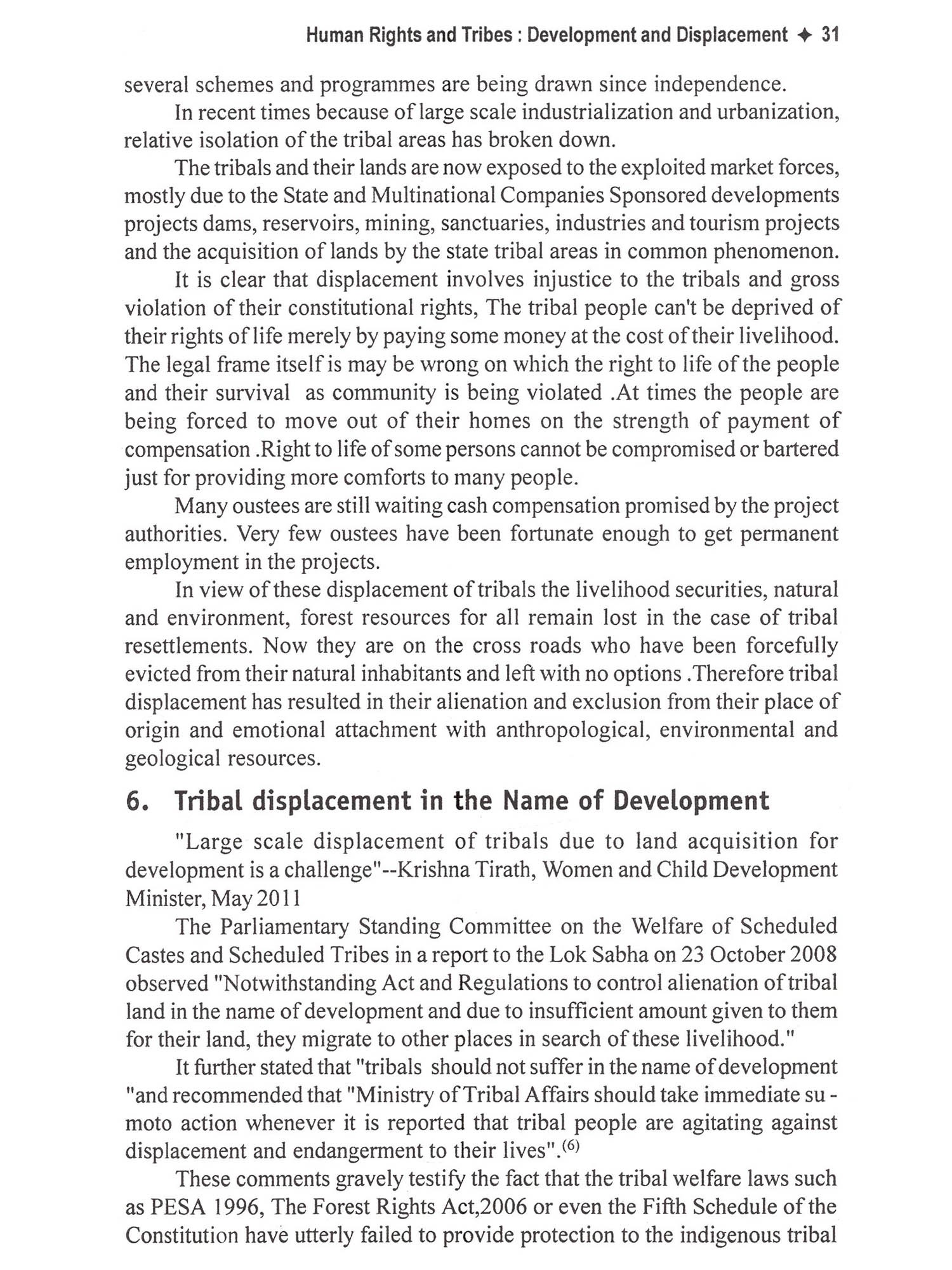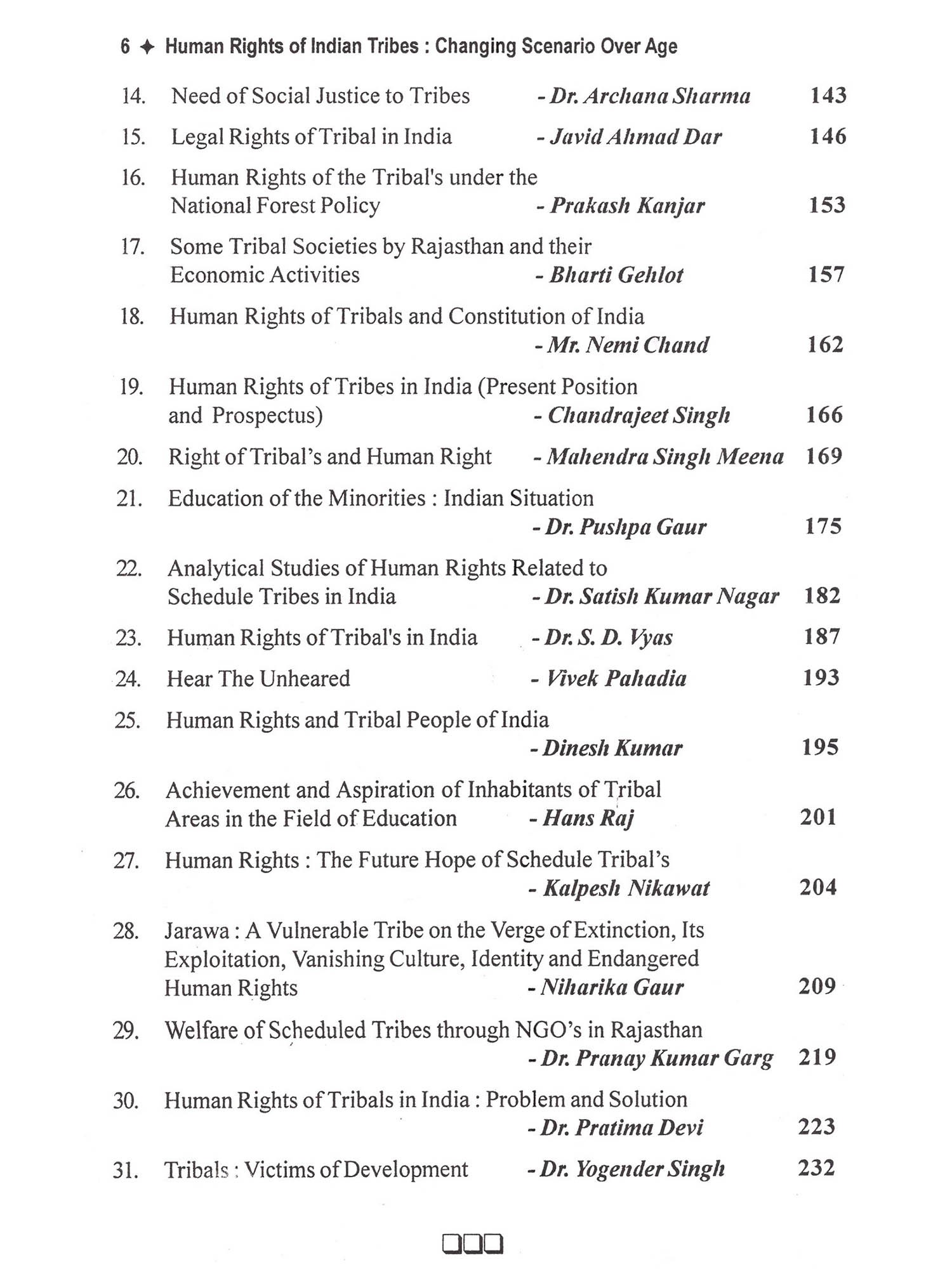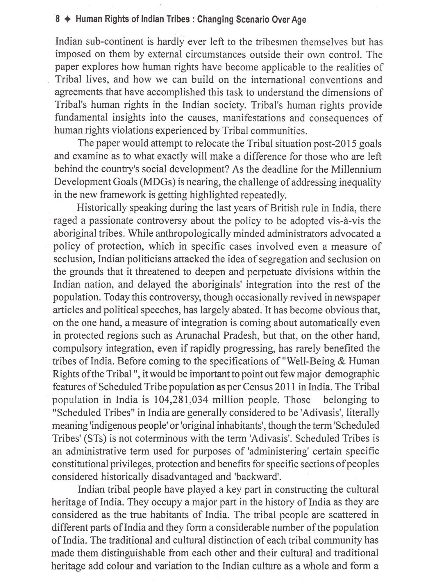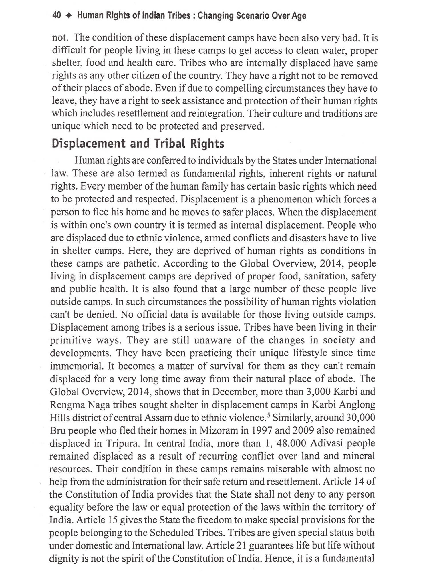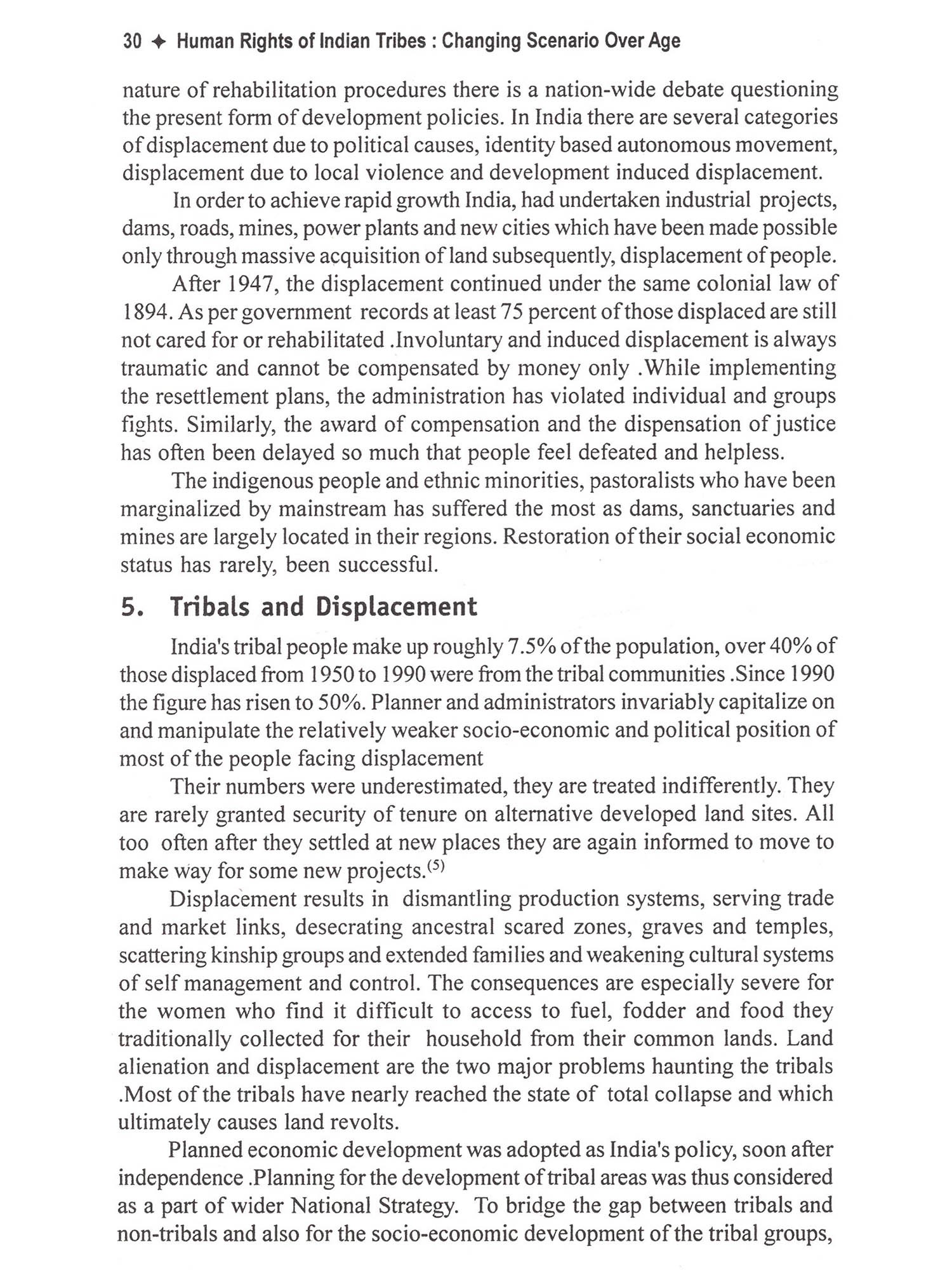 This book deals with important spects of Human rights of tribes in india. This is a compilation of articles written by eminent scholars with emphasis on Human rights of tribes. At present the violation of human right against Schedule Tribes has increased specially in the sector of land conver-sion or displacement. Health, huntress and exploitation are main problems of tribes. According to Human Rights Watch report Schedule Tribes face maximum exploitation in the society. It is true that the laws and policy made by Indian government conserve their rights but these laws and policies are not implemented properly. This book reflects problems of global human rights of tribes and their solutions. The book reflects the opinion of the contributors on tribals rights and their conservation in India. It also suggests and solutions of tribal cultural and social conservation. The book also reflect the views of authours regarding tribes human rights in India as well as remedies suggested by writers. At Present in the global pheno-mena, where all the caste has pro-gressed except Tribal's, as we all know that tribal's are less educated. It is nece-ssary to ensure that the dignity of Tribal's should be kept and their human rights should be preserved and their cultural and social identity should be respected.
