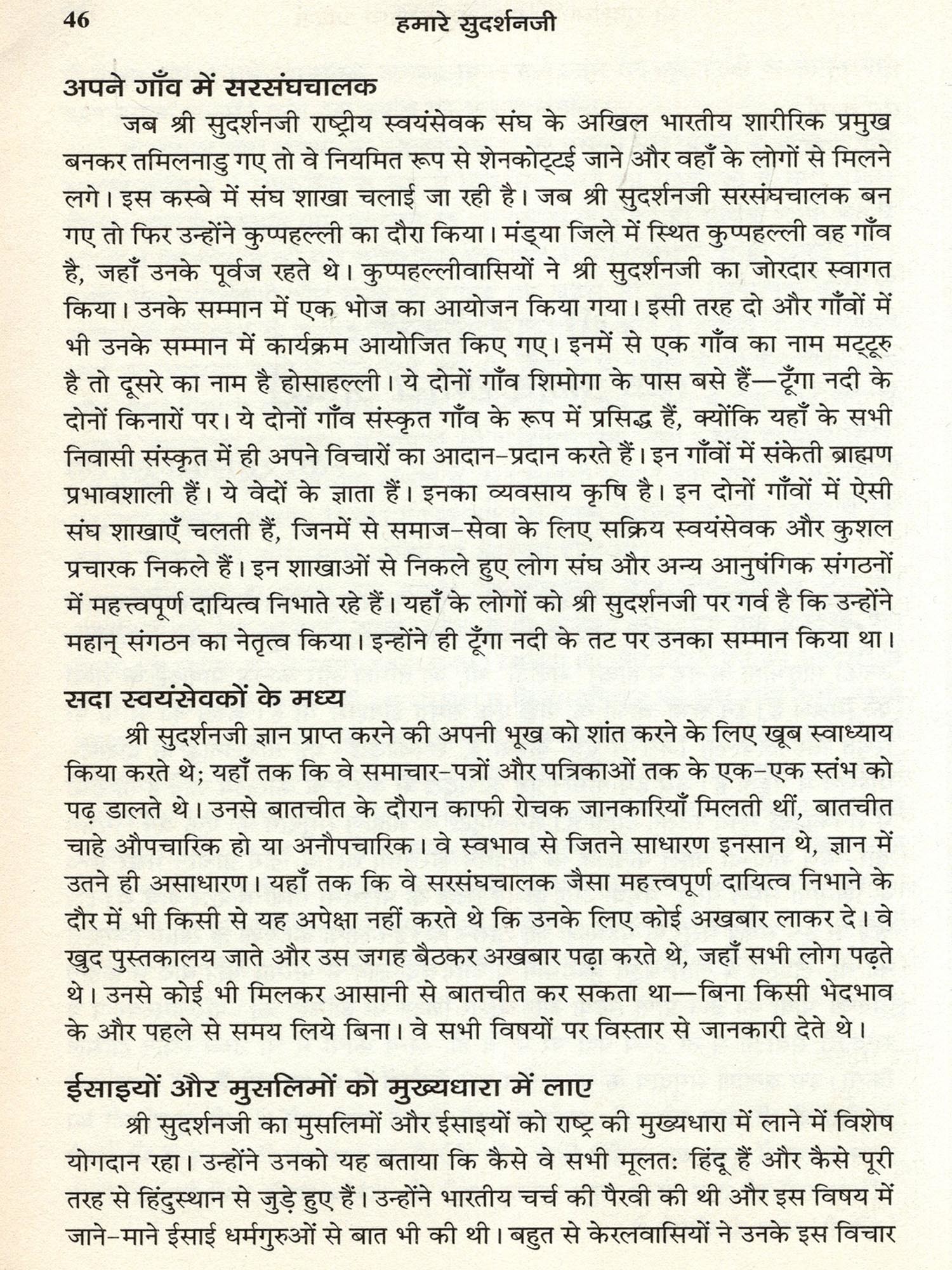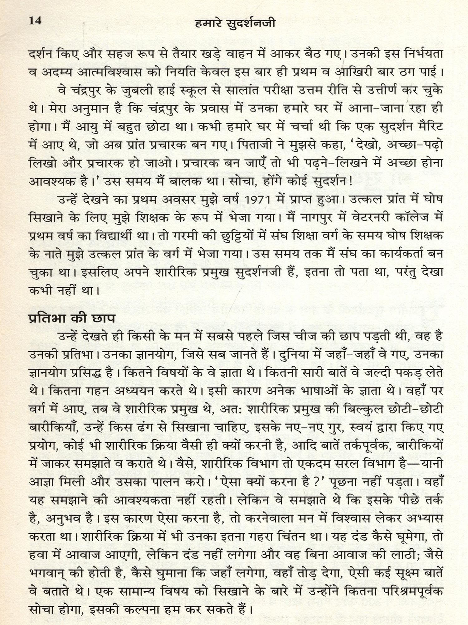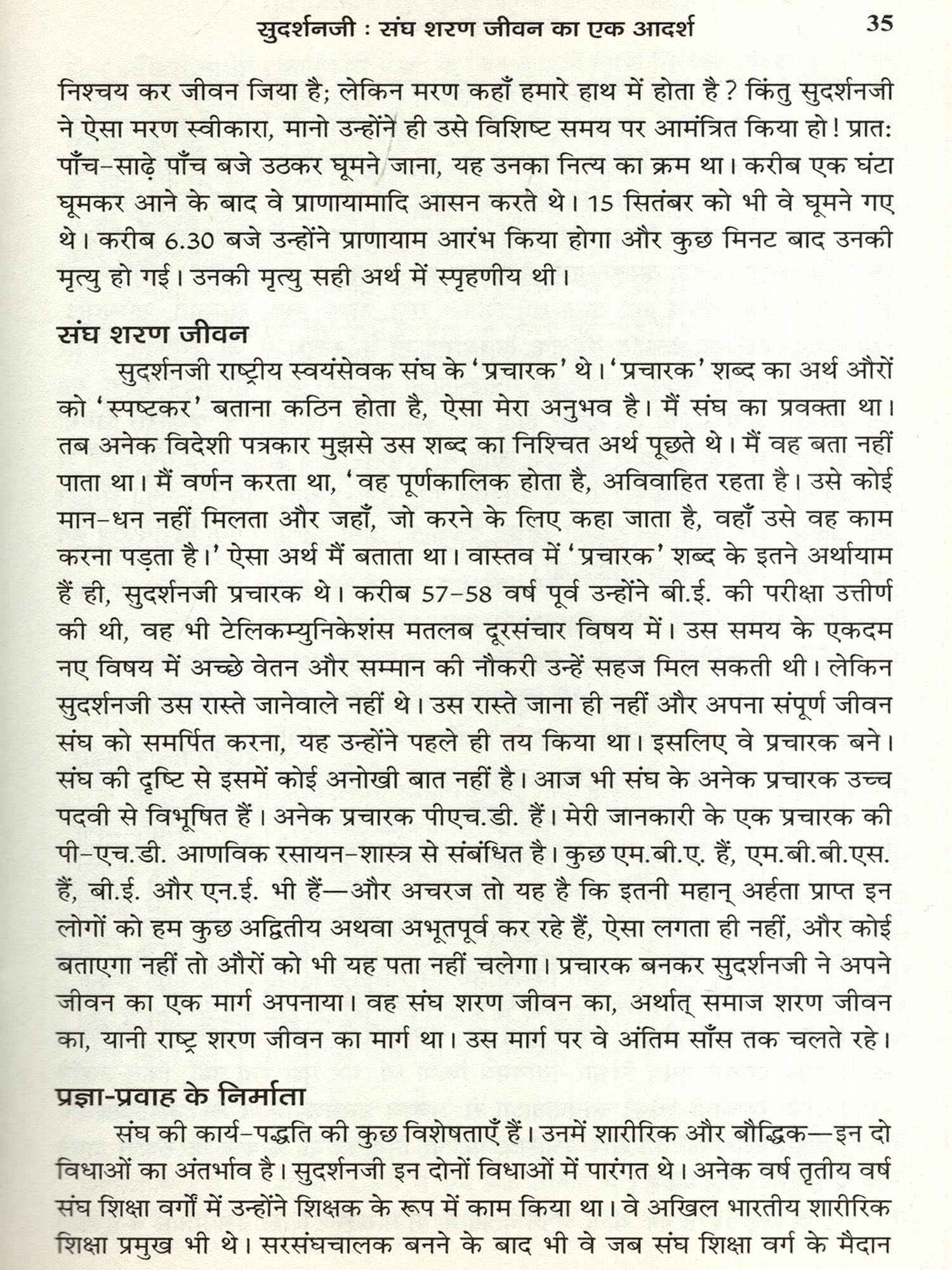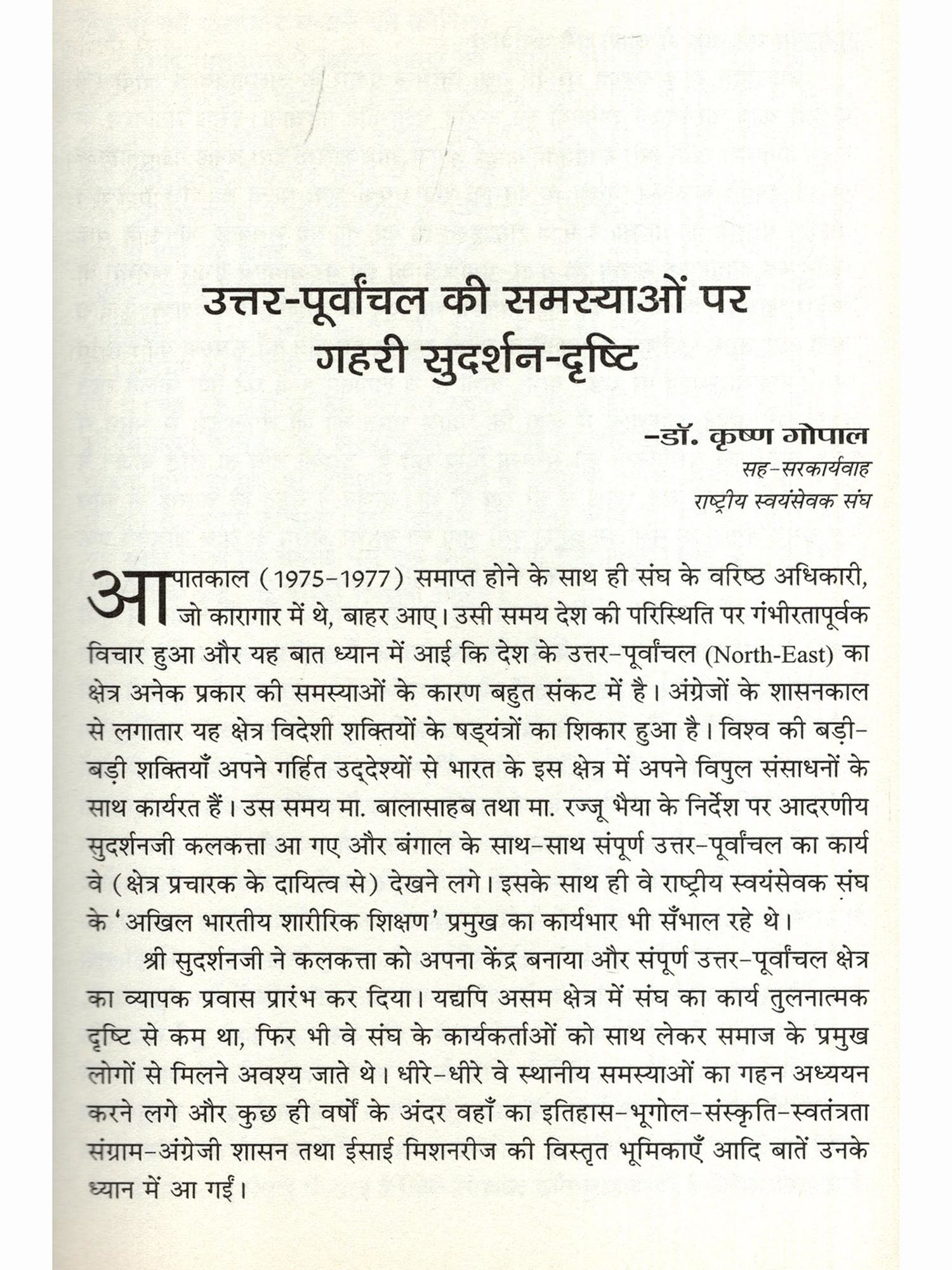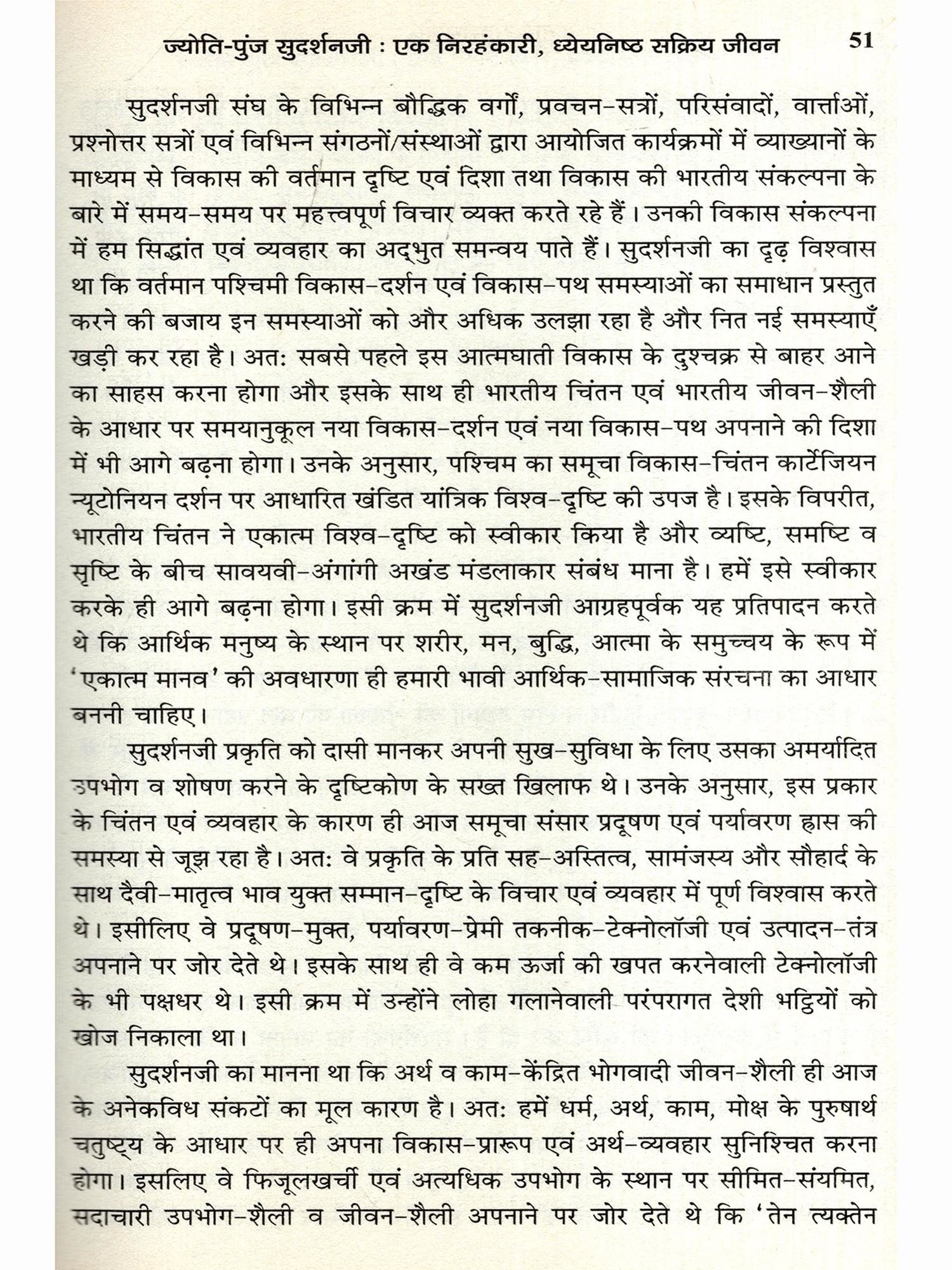 पूज्य सुदर्शनजी का ऋषि तुल्य जीवन भौगोलिक व मत-पंथ की सीमाएँ लाँधकर लक्षावधि अंतःकरणों में एक प्रेरणापुंज के रूप में बसा है। हमारे ऋषियों ने कहा, 'यानि अस्माकं सुचरितानि तानि त्वया सेवितम्' कि उनके जीवन के जो आदर्श हैं, सुचरितरूप श्रेष्ठ जीवन मूल्य जिन्हें उन्होंने जिया, वह सद्मार्ग जिस पर चलकर उन्होंने मानवता के उच्च मानदंड स्थापित किए, उन्हें उनकी आनेवाली संतति यानी हम अपने जीवन के आचरण में ढालें, ताकि हम उन सद्गुण-सदाचार से युक्त उदात्त जीवन-मूल्यों और संस्कारों से युक्त जीवन जी सकें। पूज्य सुदर्शनजी के ऐसे तपोनिष्ठ व संकल्पवान राष्ट्रसेवी जीवन का सान्निध्य जिन असंख्य लोगों को मिला, वे स्मृतियाँ उनके हृदय को सुवासित किए हुए हैं। एक बालक से लेकर स्वयंसेवक बनने, कार्यकर्ता के रूप में ढलकर प्रचारक जीवन का असिधारा व्रत स्वीकारने और विभिन्न दायित्वों का निर्वहन करते हुए पूज्य सरसंघचालक के रूप में प्रतिष्ठित होने की उनकी यात्रा बड़ी प्रेरणास्पद है। बालपन से ही उनके जीवन में वह स्फुरण अनुभव किया गया, जिसे जानकर कहा जा सकता है-होनहार बिरवान के होत चीकने पात। स्वयंसेवक के रूप में उनके बाल व किशोर जीवन की कई घटनाएँ ऐसी ही अनुभूति कराती हैं।