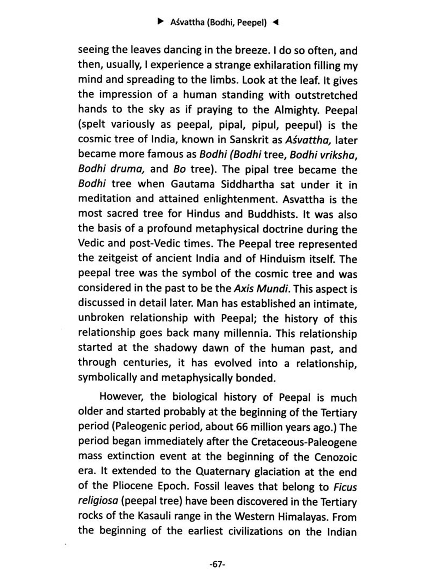 The book delves into the significant role of plants in shaping the Indian culture, from the Vedic and the later Puranic periods. It explores how the protagonists of Indian culture and philosophy chose a forest life, where plants and groves became part of their belief systems. The Vedic culture and the ritual practices that form the foundations of Hinduism originated and evolved in the forests. During the Vedic, Puranic, and post-Puranic periods, people held some trees and herbs as particularly sacred, and specific symbolism, philosophy, and traditions developed associated with such plants. For the readers, this book will be a window to peep into the past life of our distant forefathers living in unison with nature and help them glimpse the roles of plants and plant life in shaping their thoughts and beliefs.