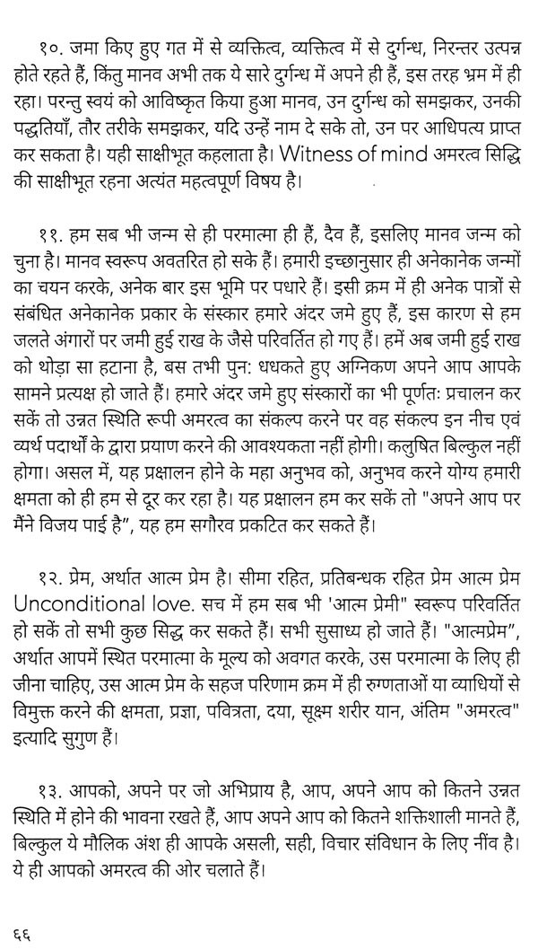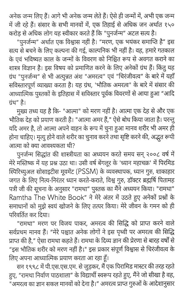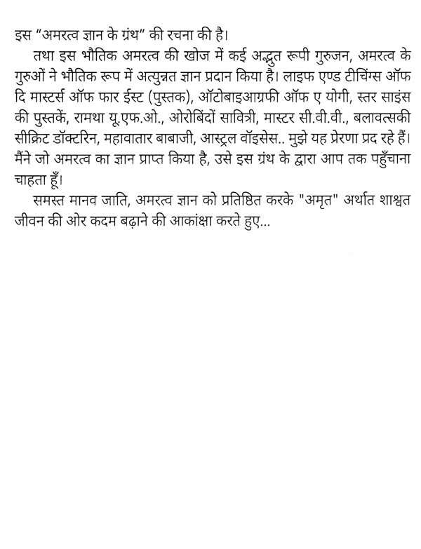 हमें अपने प्रति विश्वास एवं भरोसा होना चाहिए। हमारे जीवन के प्रति हमारे निर्णय ही, हमारे जीवन को शासित करते हैं। इस तरह अपने जीवन को स्वयं के हाथों में लिये हुए मानव, ऐसे अनेकानेक योगीश्वर तथा चिरंजीवी हैं। इस तरह हमारे "मार्गदर्शक" बने हुए सभी को पिरमिड मास्टर्स का प्रणाम! इस ग्रंथ के द्वारा हम भी उनके मार्ग पर चलेंगें। श्री अल्ला बख्श जी को मेरे विशेष प्रणाम !!