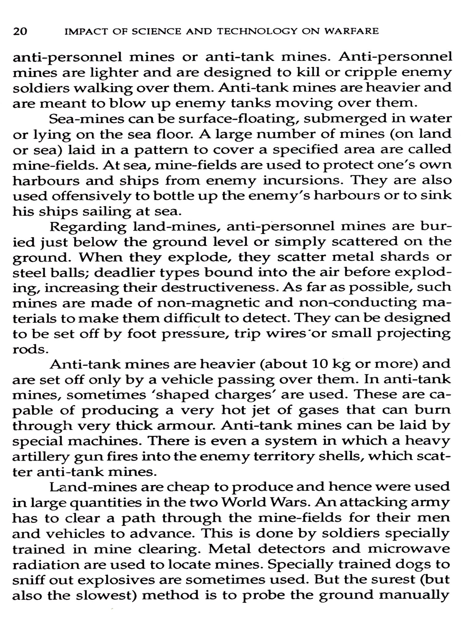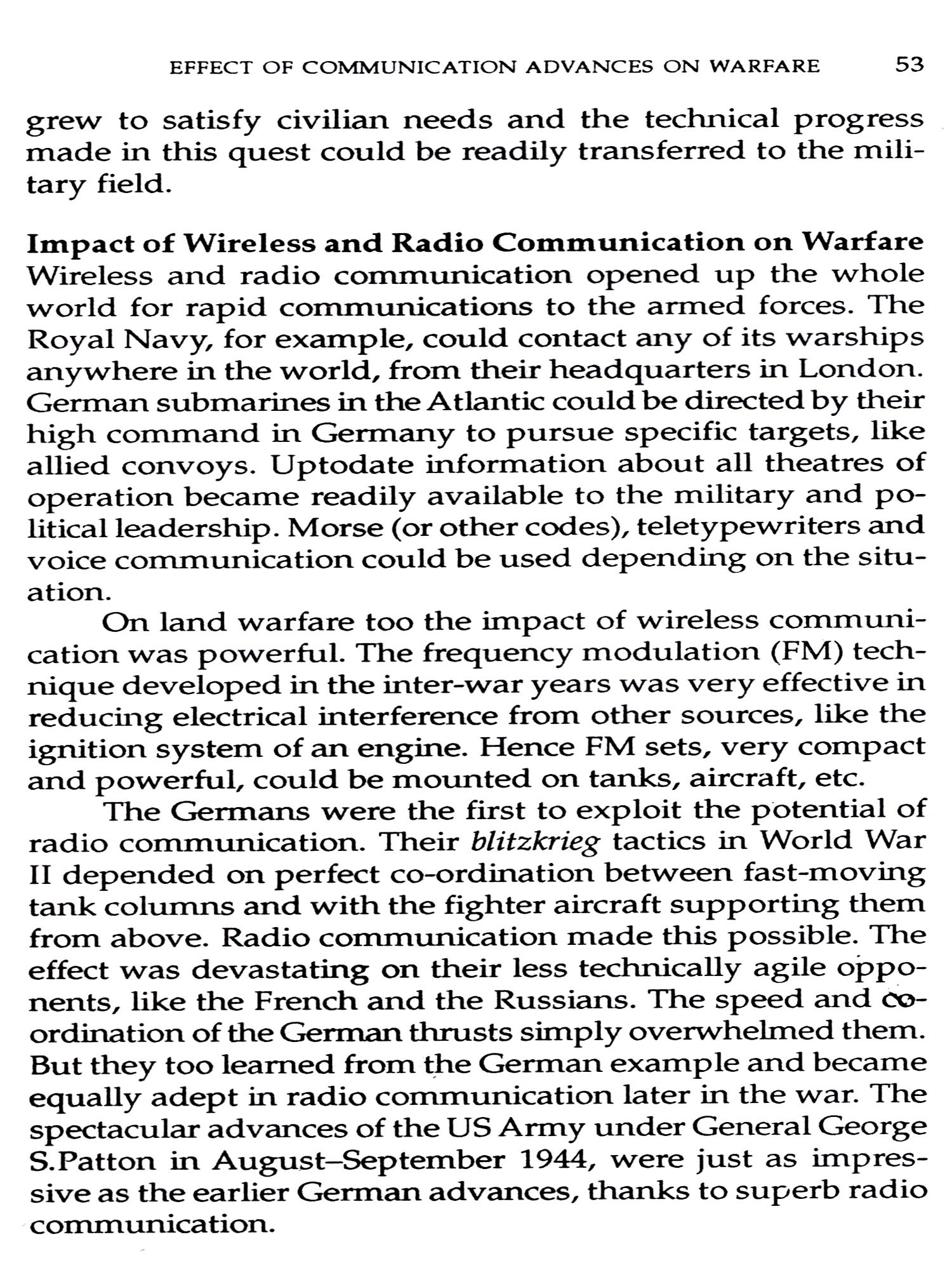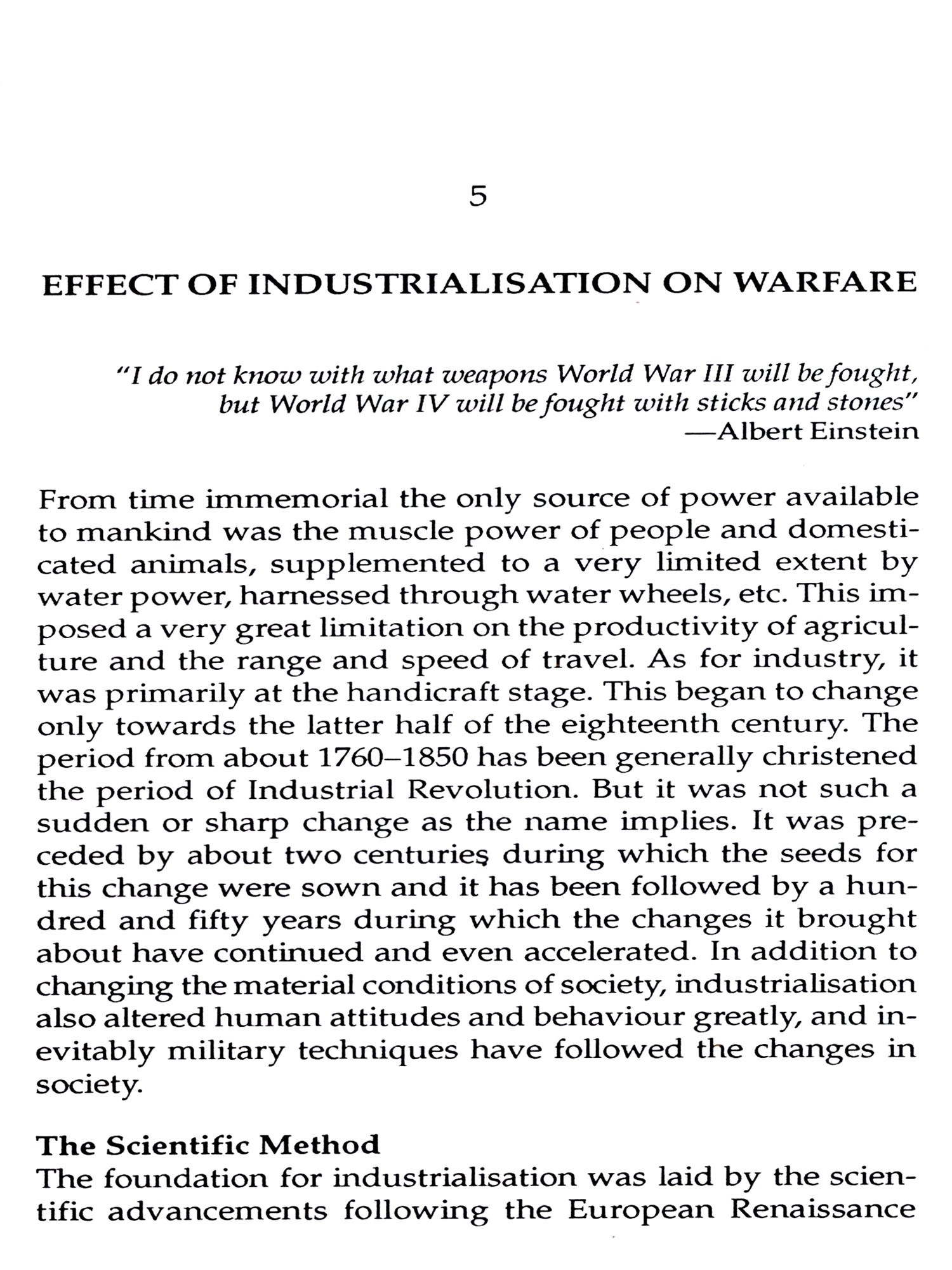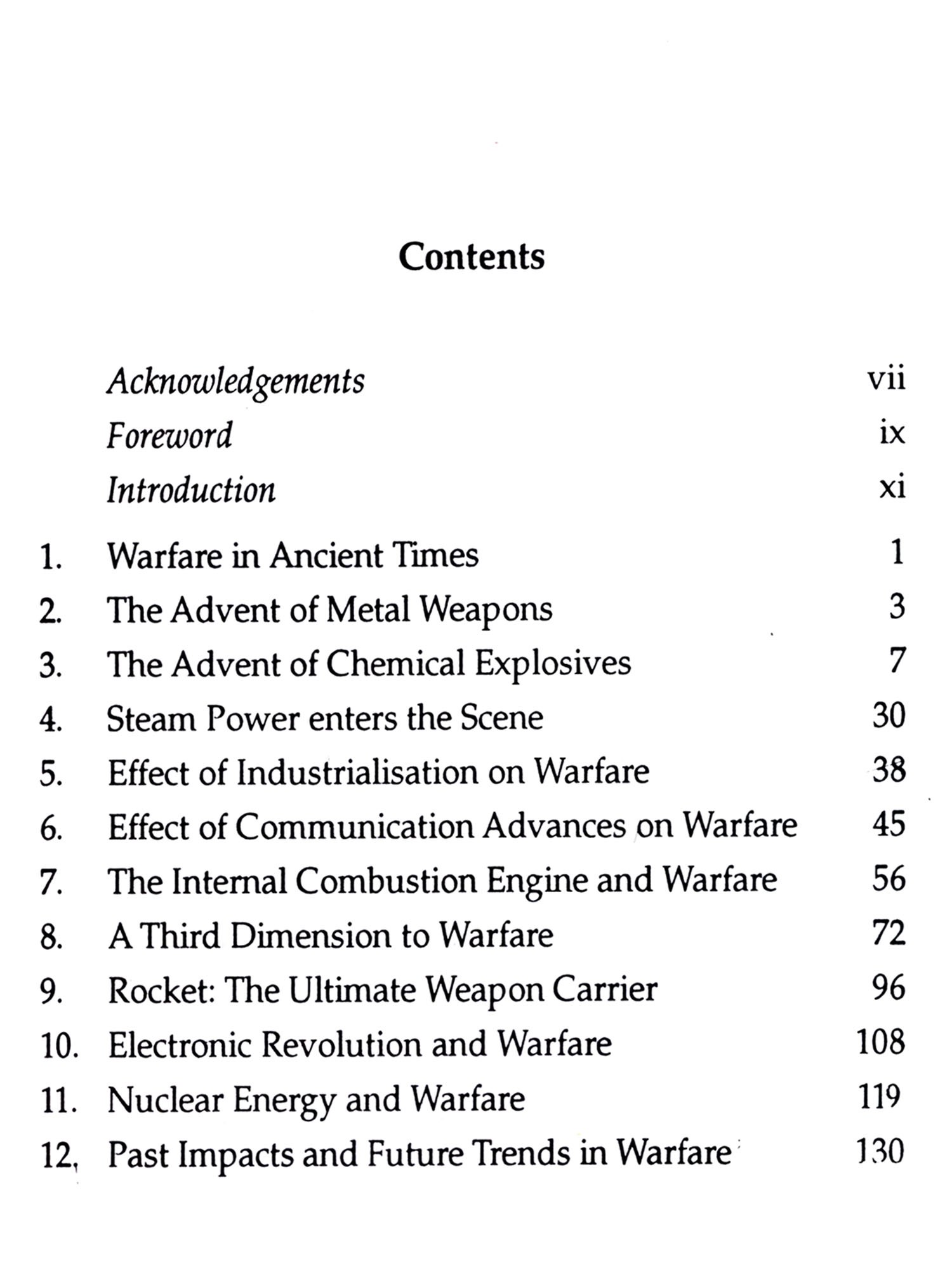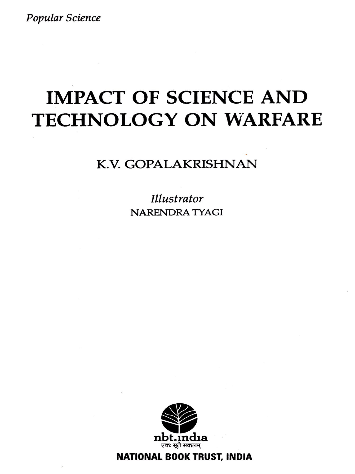Prof. Gopalakrishnan has done a remarkable job of tracing the history and the impact of science and technology in warfare. He traces the effects of the industrial revolution and the information and communication revolutions on war-fare. He discusses the capacity of the media with its pen-chant for sensational and intense propaganda to create in the minds of people inhabiting the warring nations unprecedented hatred for one another. He describes the psycho-logical effects of such warfare as well as the consequent moral and nervous exhaustion of the human mind. At the same time he aptly reminds the reader that "no great force is entirely beneficial or entirely harmful and the impact of science and technology on war is no exception." He points to the remarkable discoveries in medicine, in rocketry and in satellite communication that have helped human civilisation in an unprecedented manner, as a consequence of research carried out under the pressure of warfare.