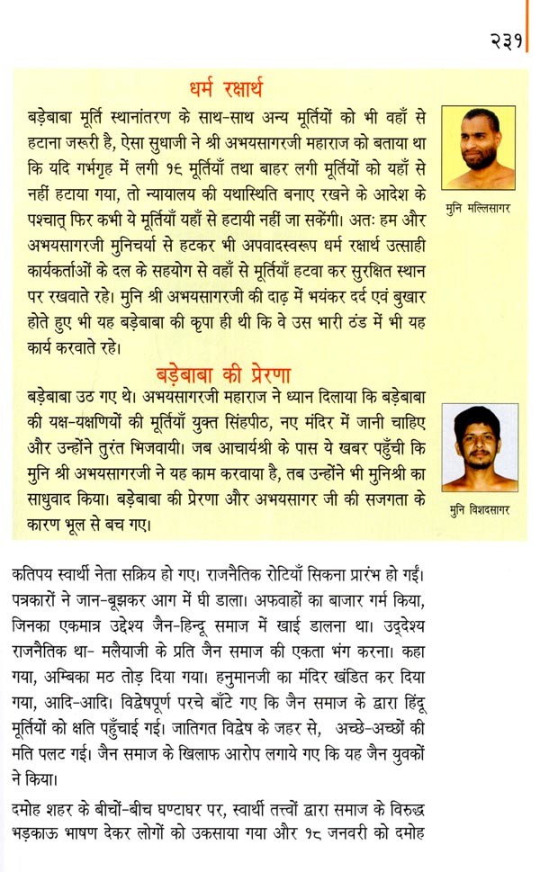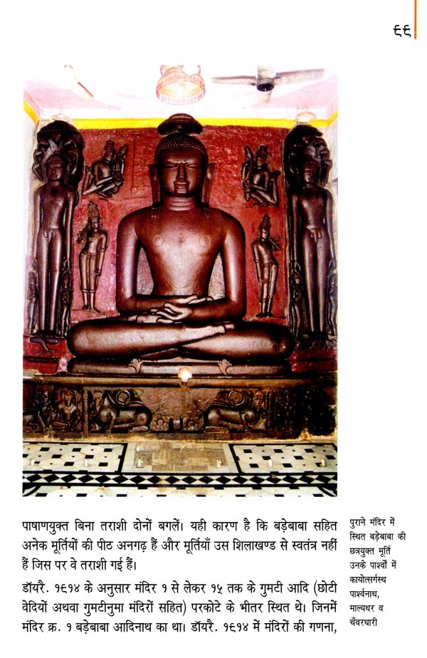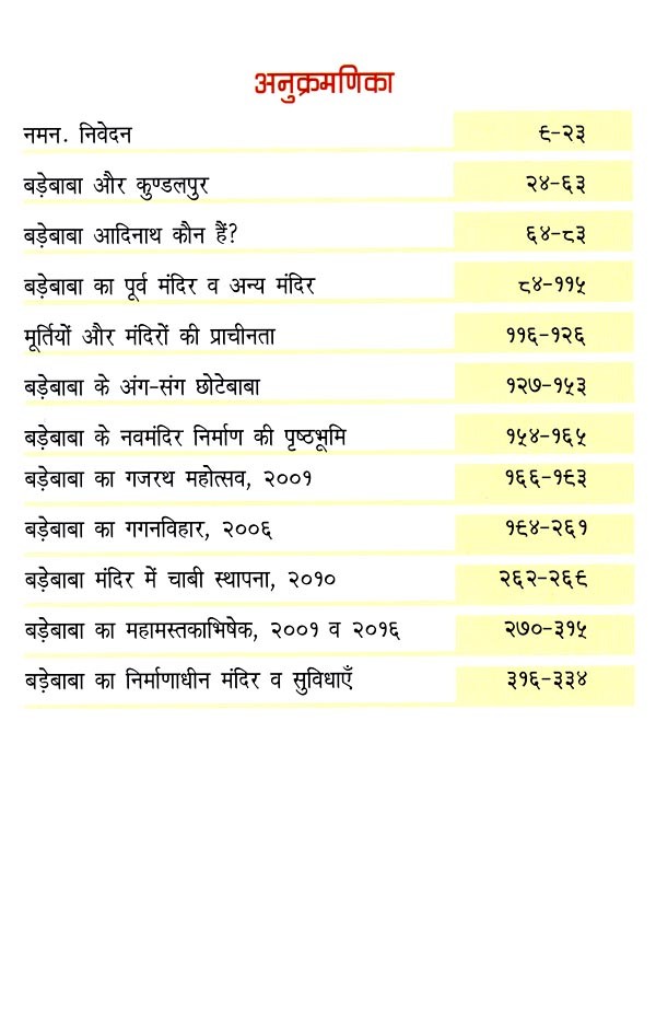 ३०० वर्षों में कुण्डलगिरि पहाड़ियों पर ६२ मंदिर और बनें। लेखिका ने बड़ेबाबा की खोज, उनकी पहचान, महामस्तकाभिषेक, उनके नए भव्य मंदिर में स्थानांतरण, ६३ मंदिरों तथा बड़ेबाबा के अनन्य भक्त छोटेबाबा के साथ उनके जीवंत संबंधों का विस्तृत वर्णन ४ ग्रंथों कुण्डलपुरः बड़े -बाबा आदिनाथ का (भाग १), कुण्डलपुरः महामस्तकाभिषेक बड़ेबाबा का (भाग २), कुण्डलपुरः गगनविहार बड़े बाबा का (भाग ३), कुण्डलपुरः छोटेबाबा आचार्यश्री विद्यासागर का (भाग ४), के संग्रह कुण्डलपुर ग्रंथमाला में किया है। बड़ेबाबा के सानिध्य पुस्तक में, एक ही स्थान पर उन्हीं चारों ग्रंथों का संक्षिप्तीकरण किया गया है। बड़ेबाबा के साथ लेखिका के अनुभवों का भी उल्लेख है।