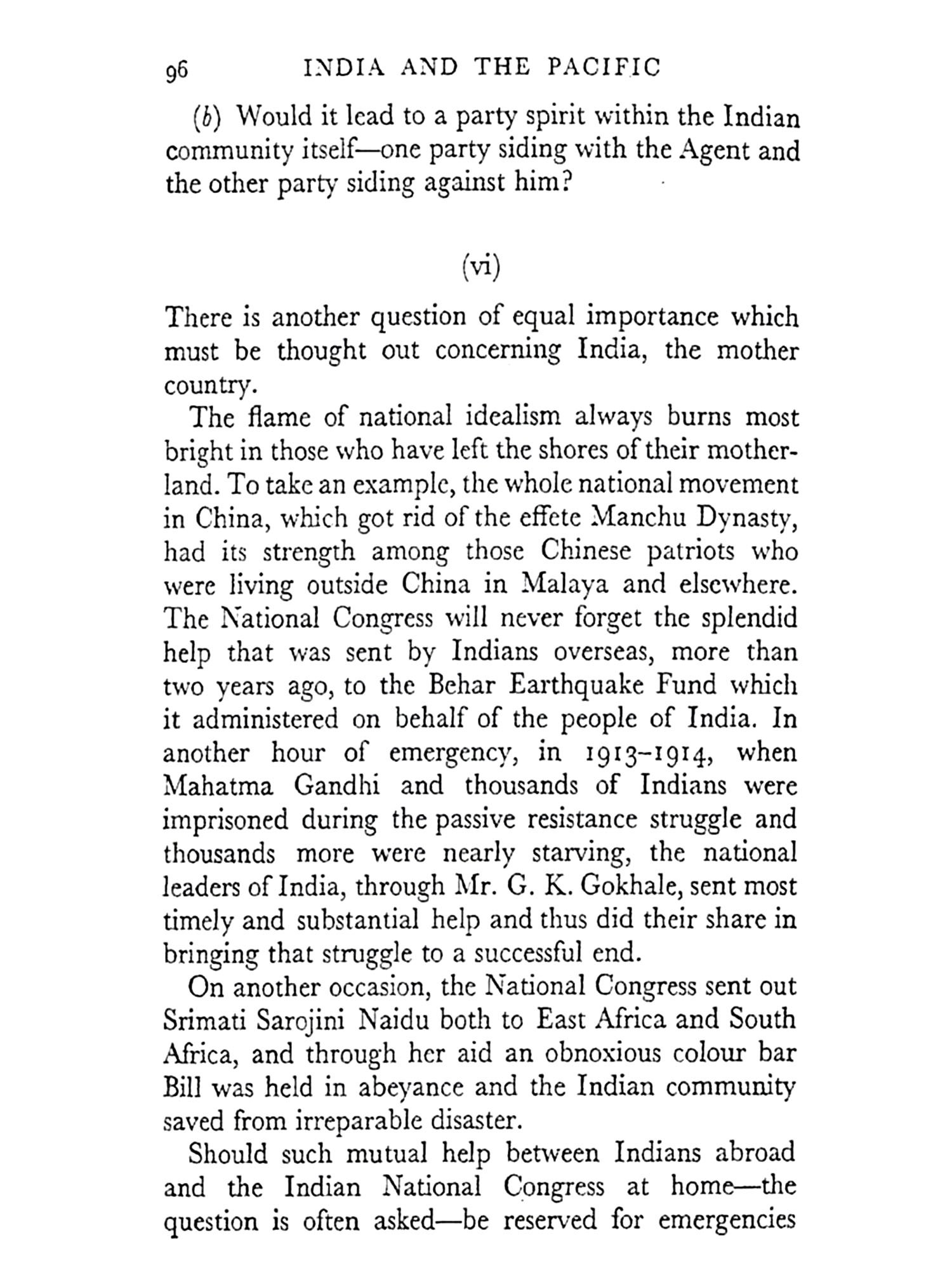 Last year, 1936, I was requested by the Indian community in Fiji to go out once more on an entirely different errand. For after the Indian labourers had been set free from indenture and the system had been brought to an end, citizen rights, on an education and property basis, had been granted by the Administration. But these rights had been seriously threatened in 1935, and the Indian leaders requested me to come out in order to defend them. While engaged in this work, I spent some weeks in the Islands and went round to all the centres where Indians had congregated. In addition, I visited Australia and New Zealand. In this way, old memories were renewed and comparisons with the past could be made.