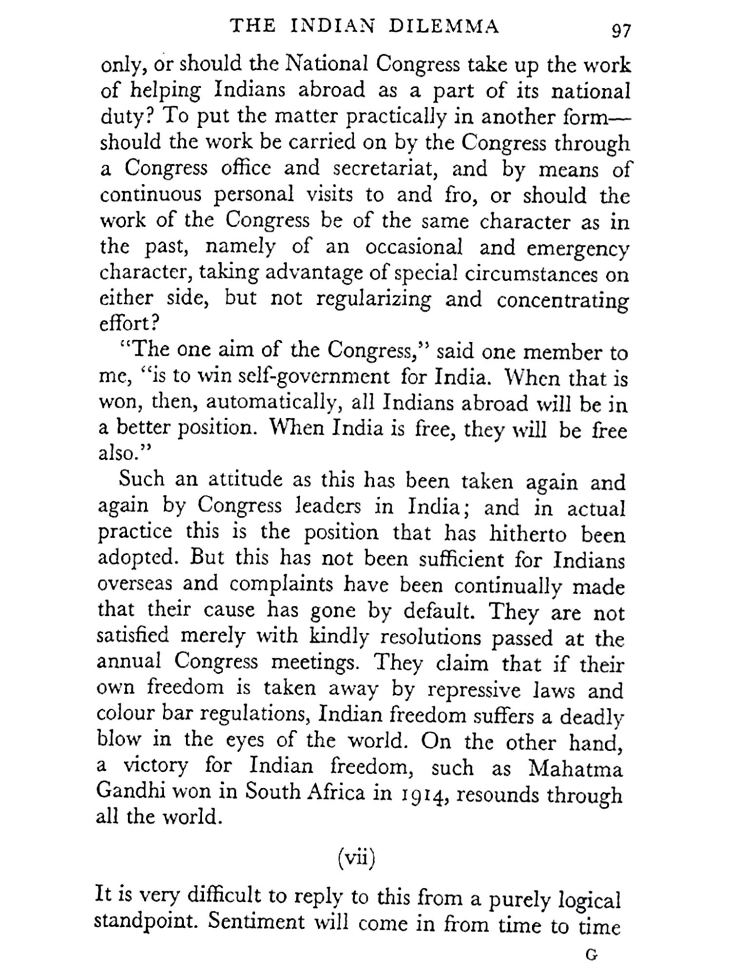 It will be seen that these are not merely local questions, but ultimate problems which are similar to those that have to be faced everywhere, wherever any large body of mankind has changed its habitat. Strangely enough, and quite accidentally, a laboratory experiment of world magnitude has been attempted by India in these colonies and the experiment is not yet complete. Herein lies the fascination of the subject. For what has happened, owing to migration under indenture in the past, is likely to happen on a vaster scale in the future, when inter-communication by sea and air becomes far more rapid and cheap.