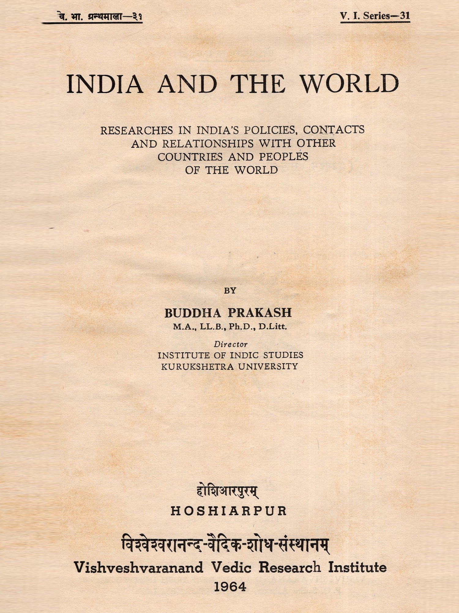 India and the World Researches In India's Policies, Contacts and Relationships with Other Countries and Peoples of the World (An Old and Rare Book)