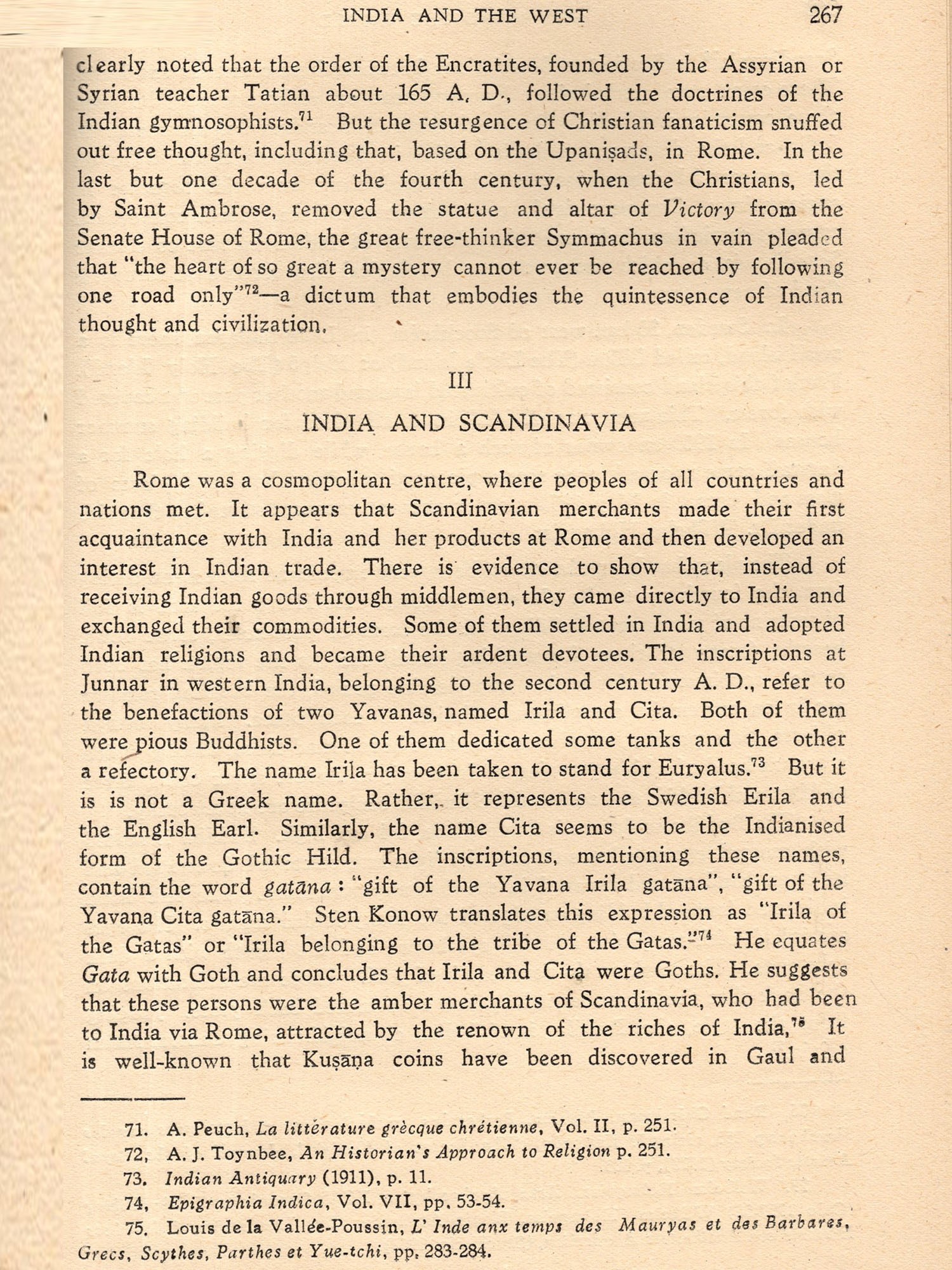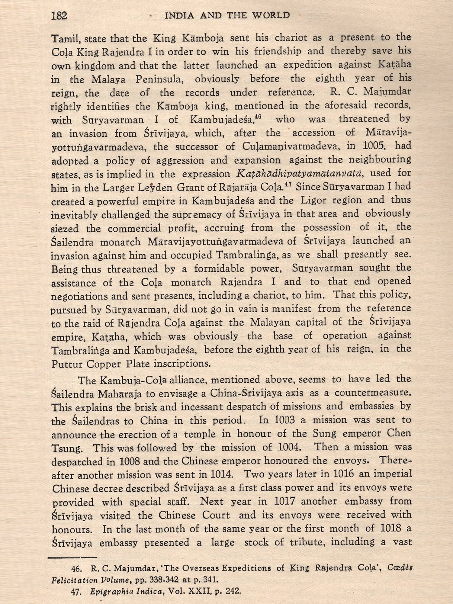 ONE of the most original and significant contributions of India to human civilization is the way of behaving with neighbours. In spite of the prescription of the theorists of diplomacy that one's neighbour is the enemy and the neighbour's neighbour is the friend, it is a well-known fact that India had always friendly relations with her neighbours. Even ancient Greek writers were impressed by the fact that the Indians never attacked their neighbours. Of course, there are some stray instances of Indian kings undertaking expeditions in neighbouring countries. Arjuna's campaigns against the Rsikas and the Paramarsikas somewhere in Central Asta, mentioned in the Mahabharata, and Raghu's march against the Parasikas, Hunas and Kambojas, living along the Oxus in the Pamir-Badakshan region, described in the Raghuvamsa of the poet Kalidasa, may be based on some historical parallels. Likewise, the invasions, launched by the Colas against the Stivijaya empire as a result of the complications in the political and commercial situation of South-East Asia, were serious attempts at interfering in the affairs of other countries. But these exceptions prove the rule that normally the Indians were not interested in the territories of their neighbours. The ideal of digvijaya, adumbrated in old texts, implied mainly the political unification of India as understood in those times. It was clearly laid down in those texts that kings should undertake military campaigns for the sake of glory rather than territorial acquisition. In India herself this view entailed a decentralised administrative system, which told heavily on the political unity of this country. As a result of it, Indian history exhibits a recurrent alternation of unity and division and order and anarchy. But, though we have few instances of Indians coveting the territories of their neighbours, we have abundant evidence of their close commercial and cultural contacts with them. Once upon a time it was believed that the northern mountains and the southern seas isolated India from the rest of the world and converted her into an ivory-tower, where her people dozed into complacency under a superiority and insularity complex. But historical and archaeological researches are daily bringing out enormous materials showing interminable trains of Indian traders, sailors, missionaries, artists and settlers crossing the arid deserts of the north and the high seas of the south and peacefully spreading their culture in the Tarim Basin along the Silk Route upto China, Korea and Japan, and in Indochina and Indonesia and possibly further into the Pacific in the East, and western Asia, Madagascar, Egypt and the Sudan, the Graeco-Roman World, Gaul and Scandinavia in the West. The voluminous outpour of evidence-Buddha image in Scandinavia, summary of the Upanishads in Rome, ivory statuette of Laksmi at Pompeii, silver dish, depicting Mother India, at Lampascus, sheets of the manuscript of Aryaprajñaparamita in Rumania, South Indian finds in the Sudan, bronze image of an Indian danseuse in South Arabia, hall of dark-skinned guards at Toprak Kala and burial of South Indian people at Kalaly-gry-1 in Khorezm, Sanskrit manuscript in three parts in a decorated vase at the site of old Merv in Turkmenia, remains of a silk bale, bearing price etc. in Brähmi, and fragments of the Bower Manuscript and the dramas of Aśvaghosa on the Silk Route in the Tatim Basin, caves of Thousand Buddhas on the frontier of China, Angkor Thom and Angkor Wat in Indo-China, Borodudur and Chandi Mendut in Indonesia, the temples and sculptures of Korea and Japan etc.-attest the global expansion and weltanschauung of Indian culture. For well over one thousand years Indian religions were professed, Indian languages were spoken, Indian scripts were written, Indian poems were sung and Indian social values were acknowledged by large numbers of peoples in many parts of the world. In this process of intense and intimate cultural contacts India received from others as much as she gave to them, This cross-fertilization of ideas, this commingling of values, this interpenetration of strands, produced an organic, synthetic and integrated cultural development, which shaped the patterns of life of considerable sections of the human race. Hence nothing can be more remote from historical truth than to suppose that Indian culture was an isolated growth. The unique feature of India's contacts and relationships with other countries and peoples of the world is that cultural expansion was never confused with colonial domination and commercial dynamism was never identified with economic exploitation. That culture can advance without political motives, trade can proceed without imperialist designs, settlements can take place without colonial excesses, and religion, language, literature, writing and mores can be transported without xenophobia, jingoism and race-complexes is amply borne out by the history of India's contacts with her neighbours. In fact, the association of cultural and commercial expansion with imperialist and acquisitive imperatives has seeped so deep in the thinking of modern man, overwhelmed with centuries of colonial exploitation and racial discrimination, characteristic of the contacts of the White People with their fellows of other complexions, that he is unable to distinguish between them or to disengage their trends from each other. Hence, sometimes, he is unable to appreciate the true character of India's contacts with her neighbours. This is why some modern scholars look askance at the process of the evolution of what is generally called Greater India and fail to penetrate to the core of the cultural tendencies underlying it. It is, in fact, so unique, peerless and unparalleled in human history that it is difficult to understand its real nature without completely purging the mind of the notions of modern colonial and imperial ideologies. The process of India's cultural contacts with the world was c