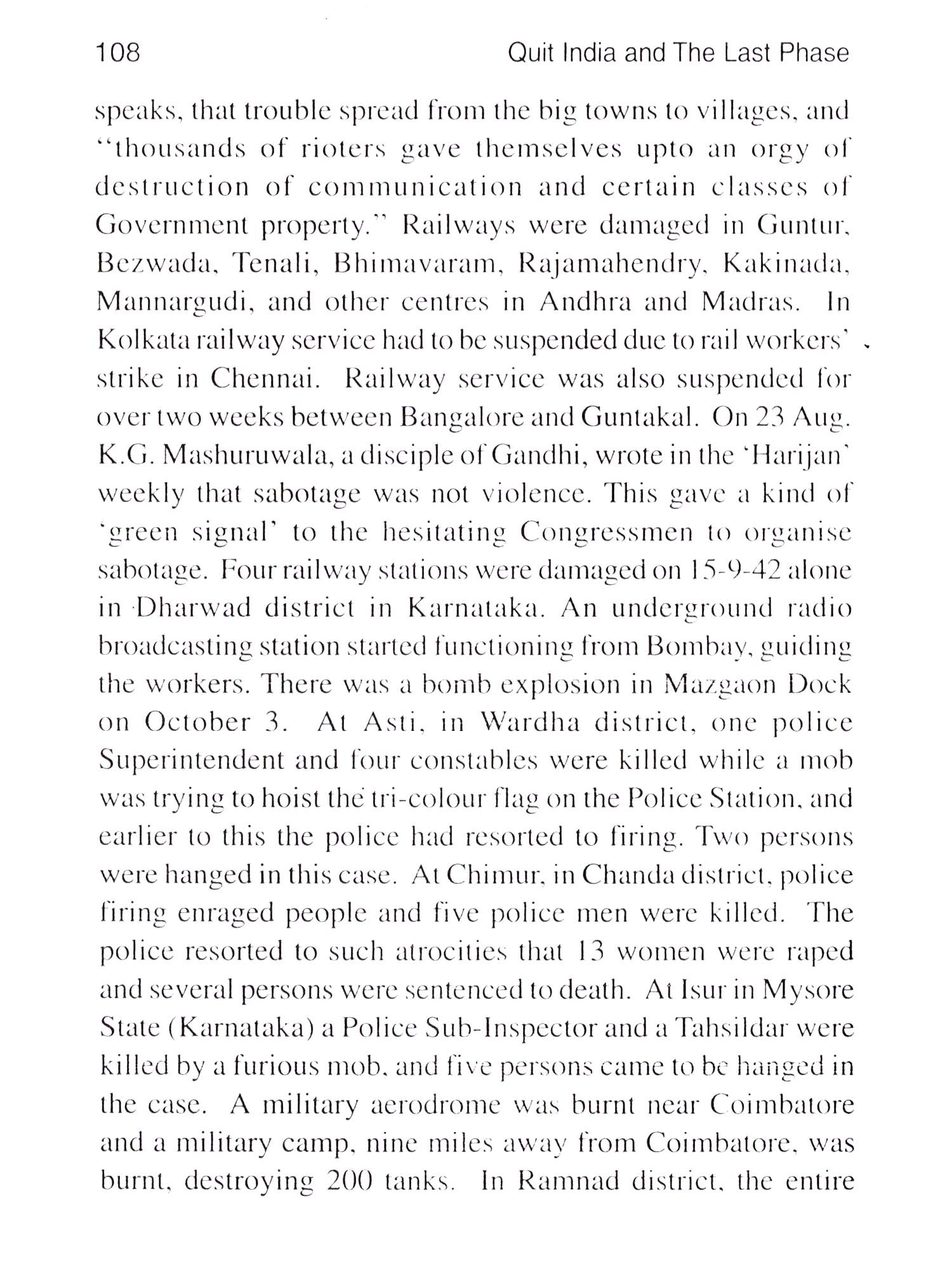 I had the good fortune of basking in the sunshine of nationalism, as in the small town of my birth, out family was involved in freedom movements in its own small way. As a boy of five. I used to join the procession of boys which was shouting "Quit India". As a student of history, I developed special fascination for the subject as it was in this grand movement that common man was the hero. The movement showed us the way of finding solutions to our problems, or at least how to fight for their solution. Gandhiji showed the way and was also one trumpeter who could make the cause of nationalism heard in the nooks and comers of the country despite many sound-braking odds. I had special appeal for the revolutionaries who held the country dearer to them than their own life. I have interviewed 850 freedom fighters of Karnataka and published their accounts in three, volumes in Kannada ("Swatantrya Sangramada Smritigalu" between 1974 and 1980). I have thus smelt the earth of the trench. This is better expressed in my book. "Quit India Movement in Karnataka" written due to the urgings of Dr. R.R.Divakarji. Of course, as a teacher, I have taught the subject at the post-graduate level. The books I had studied are presented in the Bibliography. But what is presented here is only a limited picture. I am thankful to all who are responsible for this publication.