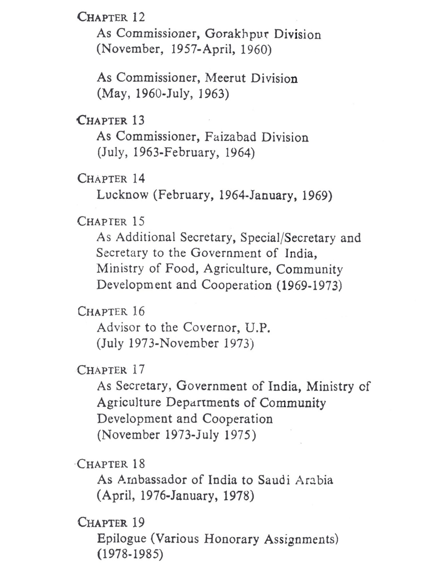 The present work contains the memoirs of a British-rule-born and educated member of the prestigious Indian Civil Service who had the good fortune of serving the free India till 1983. Naturally his memoirs are replete with rich, vast and varied experiences that he earned during his long career of public service from 1938 to 1983. By virtue of the fact that he has been an eye witness to the phenomenal epoch making struggle of independence and the transfer of power and the great changes wrought thereafter, he has felt deeply for the people of his country and has tried to meet the challenging problems as successful administrator. The present study is really an autobiography of an academically brilliant person who-besides having multi-dimensional hobbies like reading, playing tennis, hunting, gardening, touring, film going-finds time for serious studies and writings. This book is indeed a treasure of administrative experiences both under the British rule and in free India and gives us to understand how the author made U.P. deficit in food grains as surplus during the tenure of his working as Agricultural Production Commissioner. Certainly, the book will evince interest in the young administrators, technocrats and social workers who are engaged in molding the destiny of millions of our people living below the poverty line".