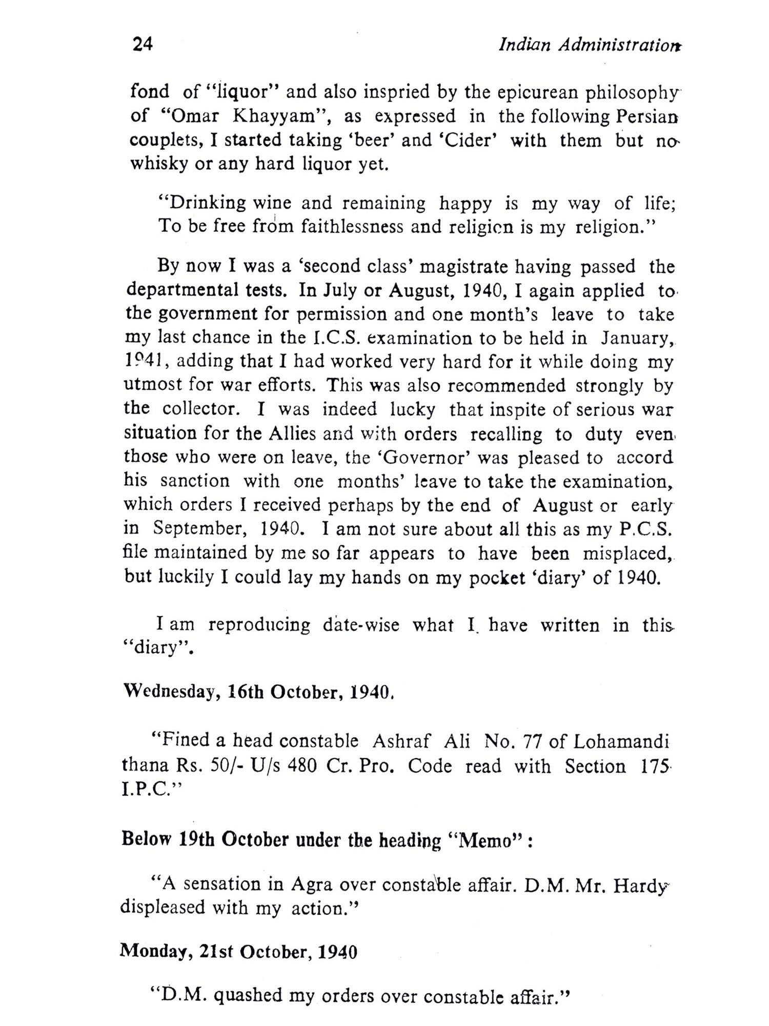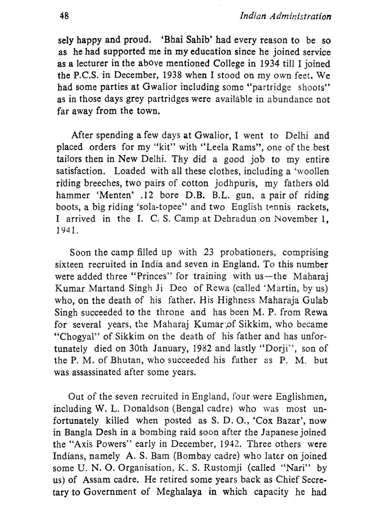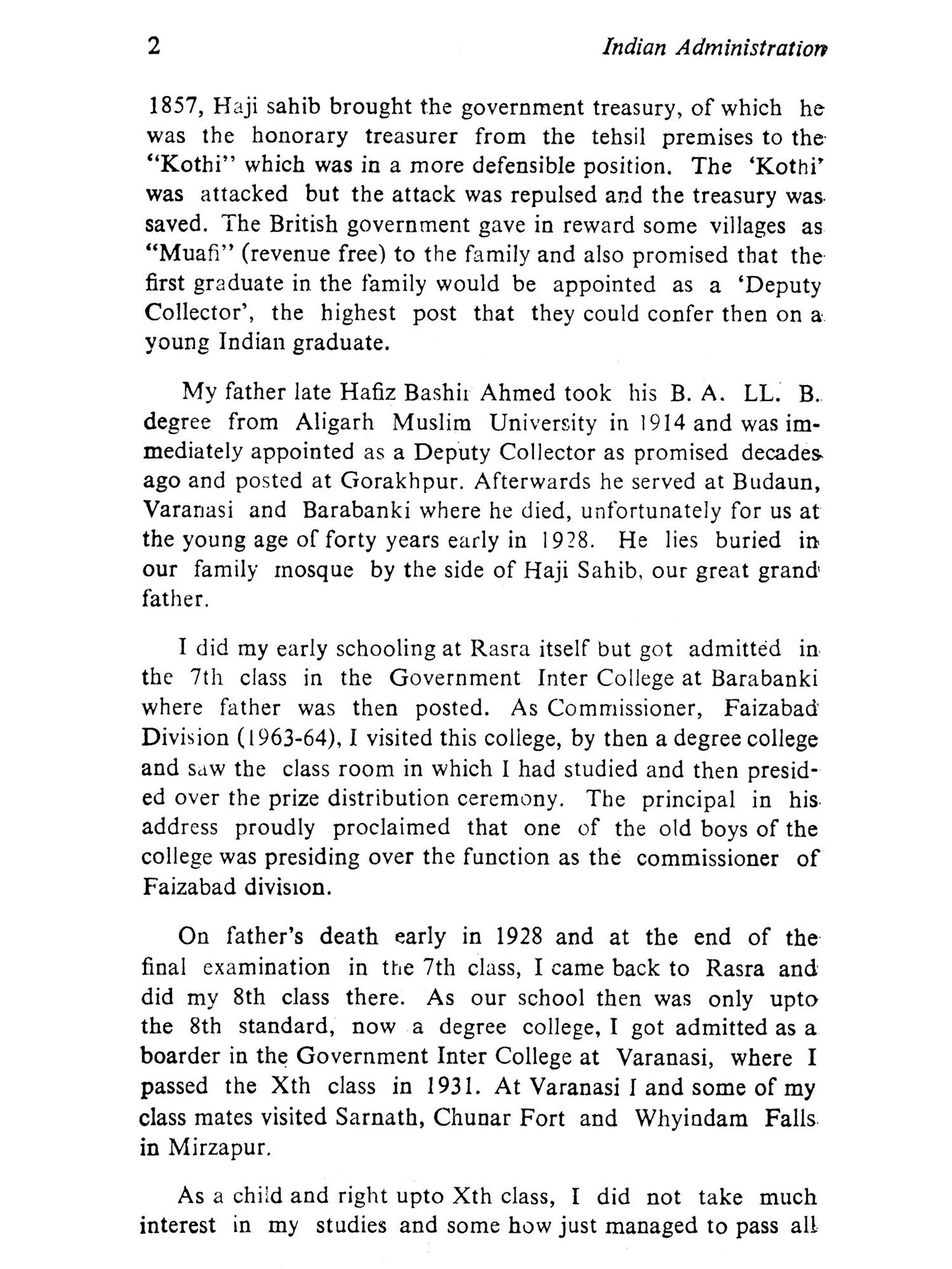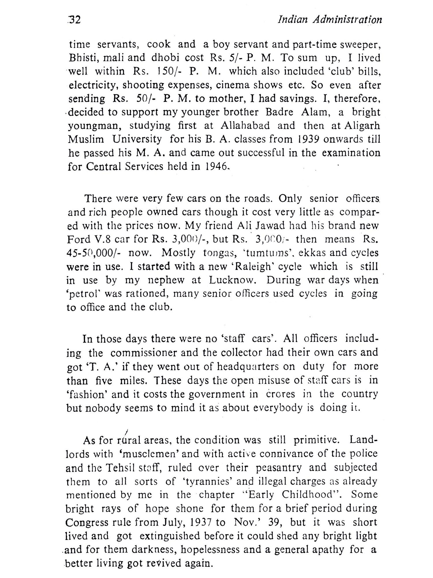 Manzoor Alam Quraishi has given us a bird's eye view of the period of our history which free India has to understand to mould the future. Born under British rule in a community which had not yet taken to modern education in a big way and had a longlee-way to make up, he had the best of education in the Aligarh University and had a ring side seat to watch and comment on the transfer of power and the great changes in the State of Uttar Pradesh, free from its shackles and trying to make a meaning of life for its people. Unlike many administra-tors, Manzoor Alam Quraishi had his feet on the ground and had an intimate knowledge of the people he was helping to govern and develop as a member of the prestigious Indian Civil Service. His reminiscences of this period of history in Uttar Pradesh will certainly be of help to those who want to under-stand the background of our present affairs with a view to lea-rning from the past. Today we hear that Uttar Pradesh has started blooming forth in agrarian production. The Green Revolution is starting. It is Manzoor Alam Quraishi as the Agricultural Production Commissioner of Uttar Pradesh helped by far-seeing politicians like Sucheta Kripalani and Charan Singh who had the fore-sight and laid the foundations of the Green Revolution of today in Uttar Pradesh. His reminiscences may give us some glimpses as to how he managed to supervise and advise so many develop-ment departments and also work with so many Ministers at the same time, without friction and so effectively. If any assessment of his fitness to record is needed, the Green Revolution in Uttar Pradesh of today is the answer.