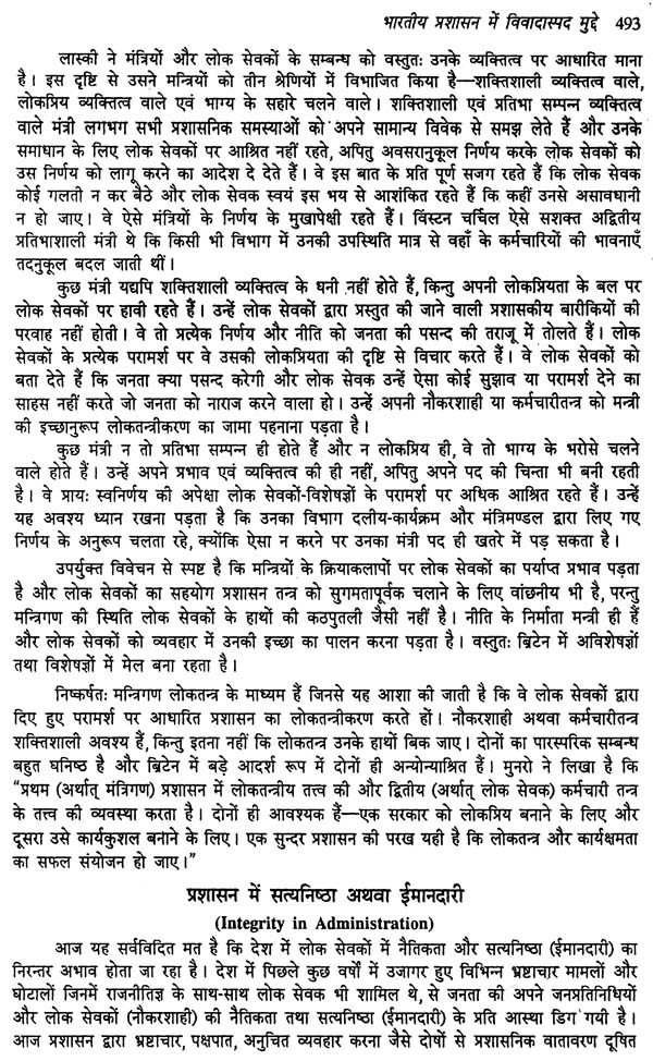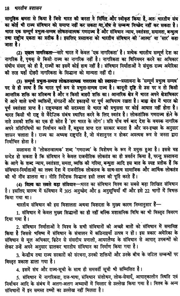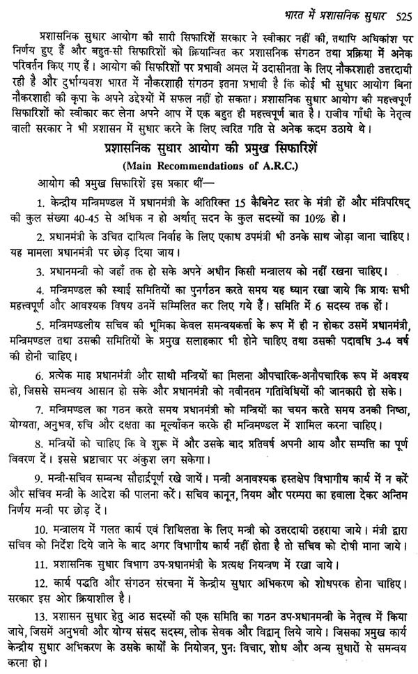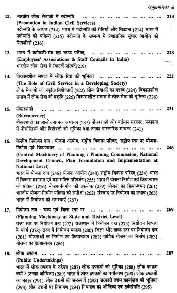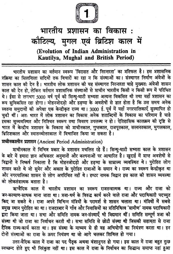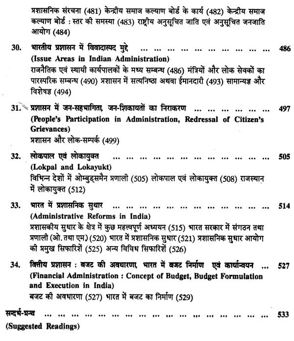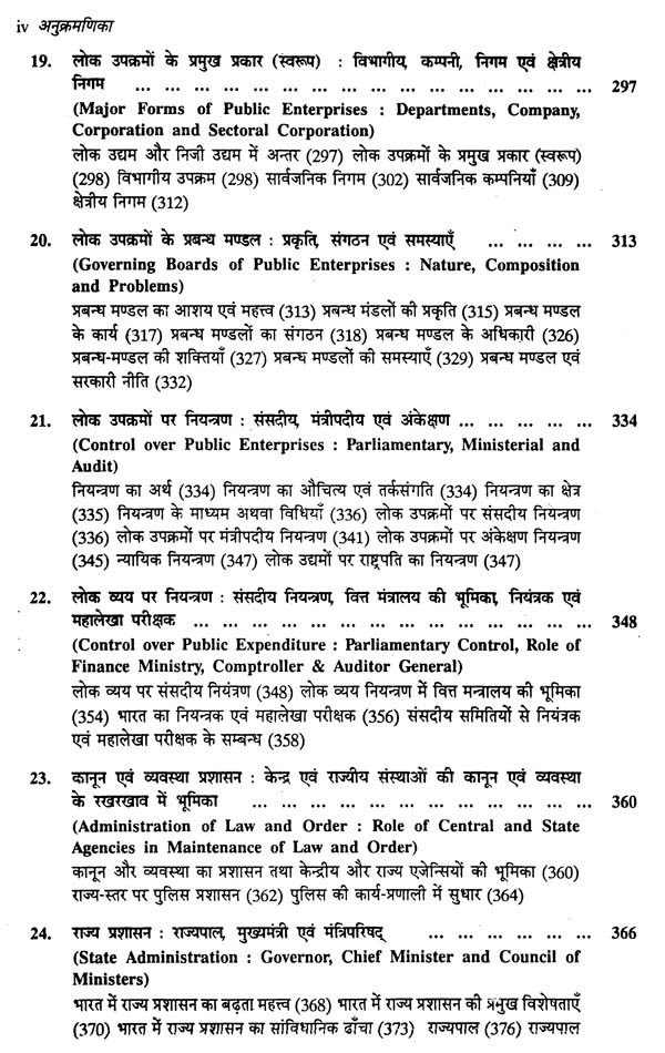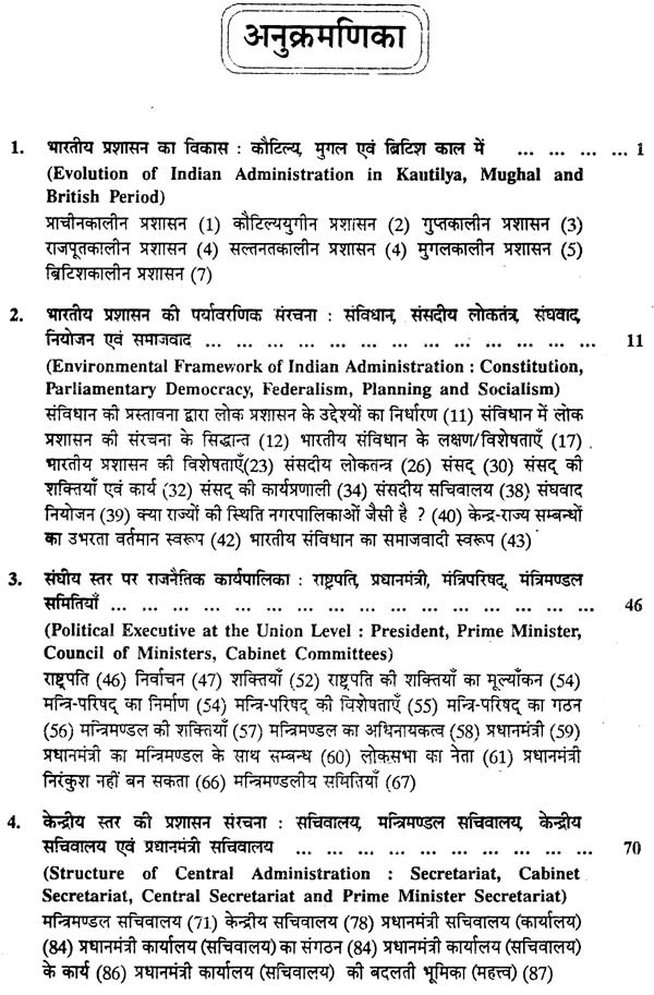 प्रस्तुत पुस्तक में भारतीय प्रशासनिक व्यवस्था के पांच मुख्य क्षेत्रों पर विशद सैद्धान्तिक एवं व्यावहारिक चर्चा की गई है। सामग्री शैक्षिक है इसलिए विवेचना के उद्म प्रश्न वहाँ पूछे ही नहीं गये हैं। उदाहरण के लिए भारत की संवैधानिक व्यवस्था को हम लोकतन्त्रात्मक, संघात्मक, धर्म-निरपेक्ष एवं कल्याण राज्य की पोषक बतलाते हैं और वह ऐसी है भी लेकिन गत आधी शताब्दी में यह इन उद्देश्यों की ओर तीव्र गति से आगे क्यों नहीं बढ़ सकी ? कारण साफ है हमारे चुनाव हमारे सच्चे प्रतिनिधि नहीं चुन सके । हमारी व्यवस्था राजनीतिक दलों को विचारधारा नहीं दे सकी। सत्ता में रहने के लिए जो वोट बैंक बने वे साम्प्रदायिक और जातिवादी थे, अभिजात के देशी अंग्रेज देश की एकता बनाये रखने के नाम पर यथास्थिति को स्थिरता बतलाकर गाँवों को लूटते रहे, दलितों को चूसते रहे और देशी साम्राज्यवाद को योग्यता का प्रशासन बतलाते रहे। इस जीवन्त दस्तावेज में प्रशासन को सुधारने का कोई अभियान आज भी नहीं है। राजनीति प्रशासन के कारण और प्रशासन राजनीति के कारण पंगु है। अतः दोनों का स्पष्ट समझौता यह है कि स्थिति को बदलने मत दो और जिससे जो छीना जा सके छीनते रहो। संविधान के संशोधन की संख्या आज सौ का आंकड़ा छू रही है पर जिस गंगोतरी से सारा भ्रष्टाचार उद्‌गमित हो रहा है उस चुनाव व्यवस्था में सुधार होना चाहिए और वह भी किस प्रकार का, यह इक्कीसवीं सदी में सोचा जायेगा। प्रशासन जहाँ जो चाहता है संसदीय जनतन्त्र के नाम पर कर लेता है और भारत का संसदीय लोकतन्त्र वह माना जाता है जो एक यूरोप के एकात्मक उपनिवेशवादी देश इंग्लैण्ड की राजनीतिक जीवन शैली रही है।