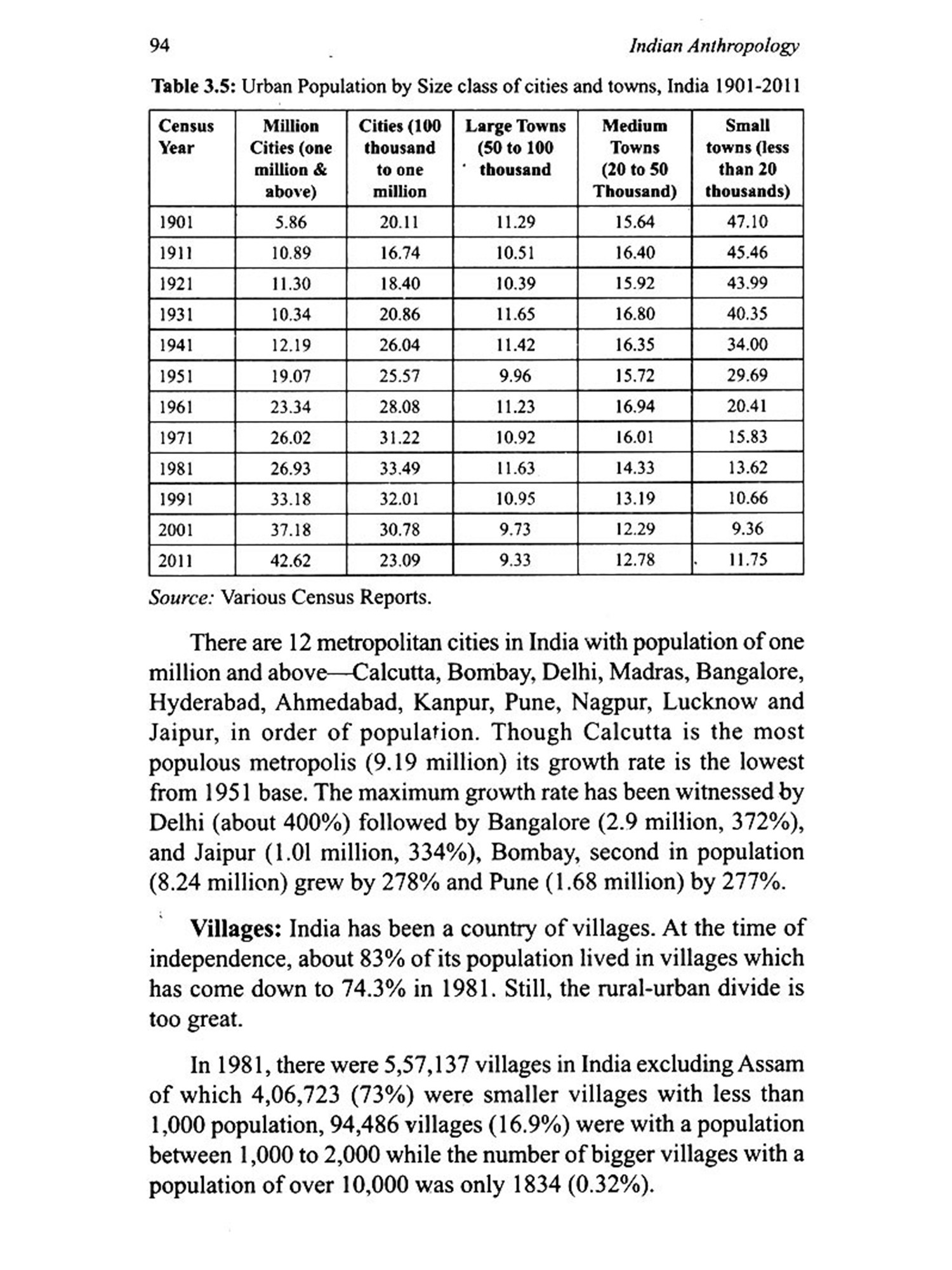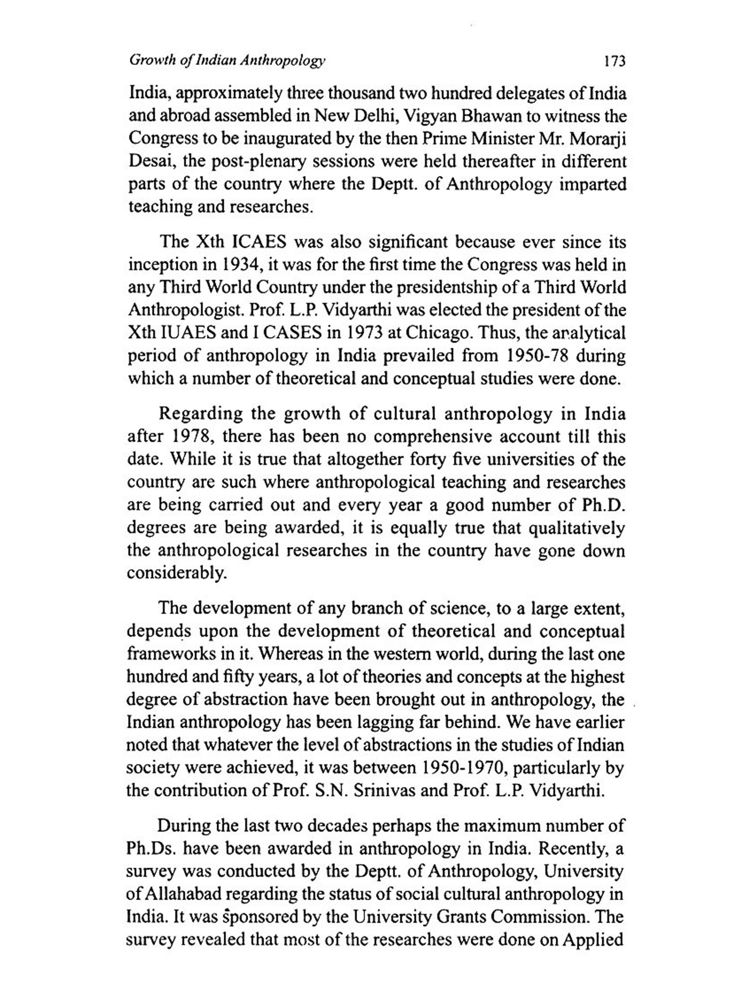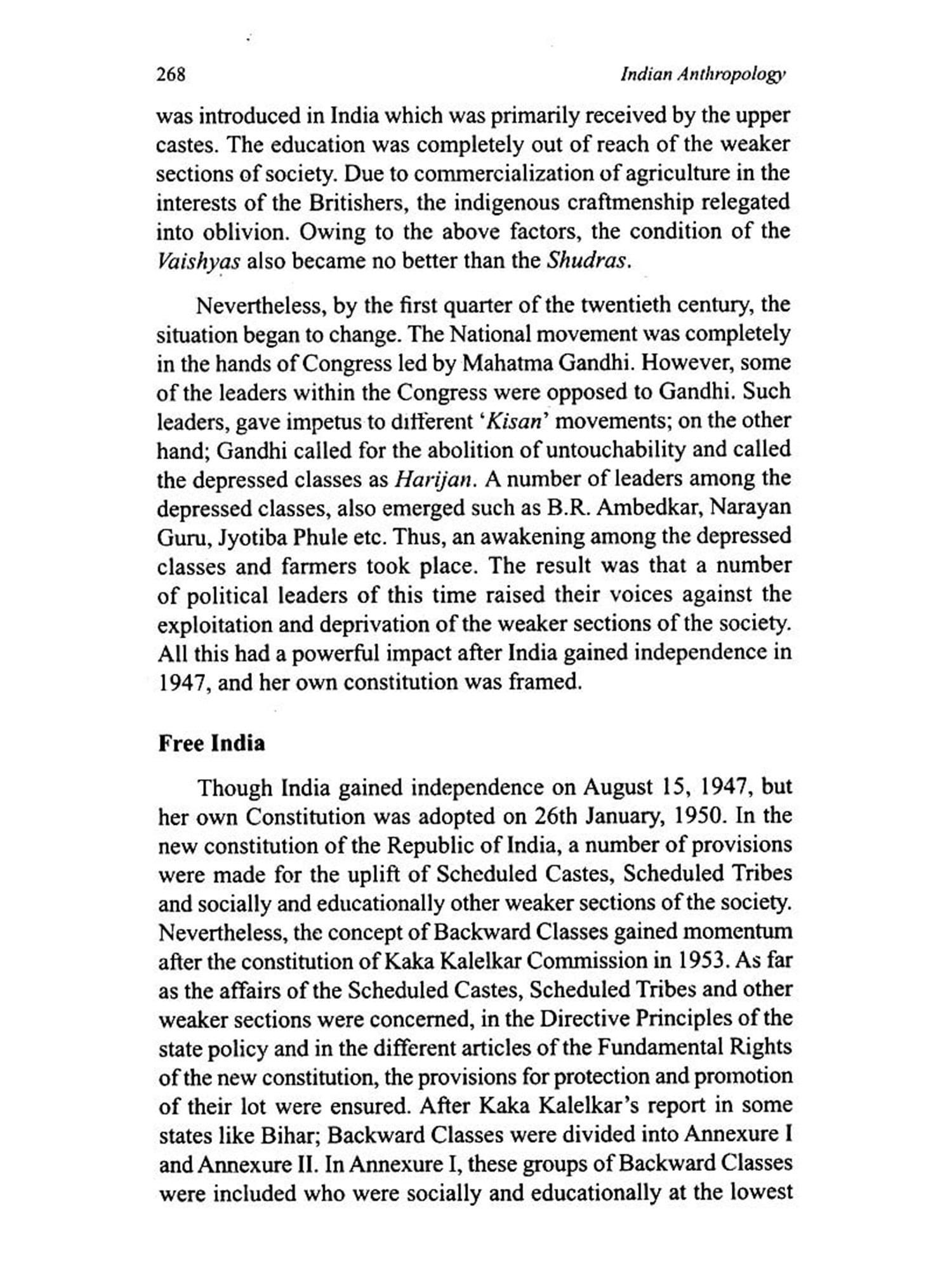 The book contains, interalia, an up-to-date and critical discussion on the growth of Indian Anthropology. Various concepts viz. Nature Man-Spirit-Complex, Tribe-caste continuum, Great and Little Traditions, Universalization and Parochialization, Dominant Caste, Sacred Complex, Sanskritization etc. have been lucidly and comprehensively described. The discussion on Scheduled Tribes, Scheduled Castes, and Other Backward Classes is complete and up to date. So is the presentation of demographic profile of India and Indian Population policy.