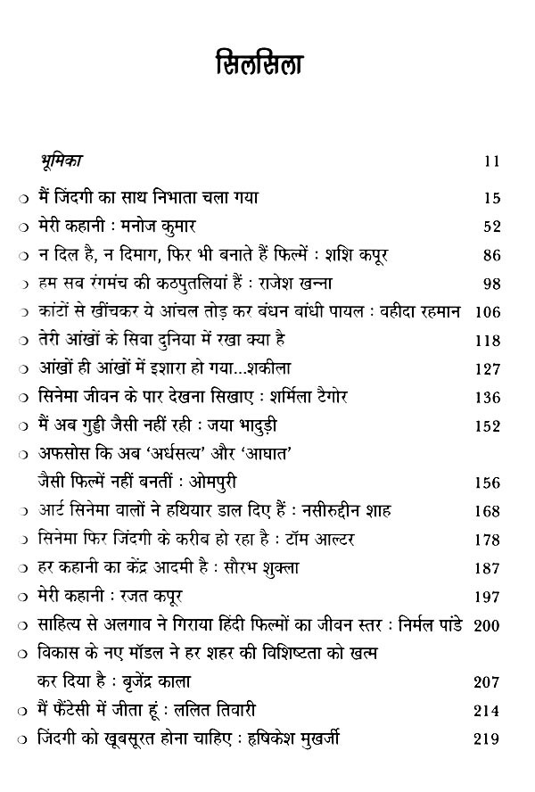 इस पुस्तक में दीप भट्ट ने हिन्दी सिनेमा के दिग्गज फिल्मकारों, अभिनेताओं से लेकर, नामचीन अभिनेत्रियों के साथ ही समानांतर सिनेमा के शीर्ष कलाकारों के साक्षात्कारों में सिनेमा और समाज के अनेक पहलुओं को उठाया है। सवाल जिस जिज्ञासा और उत्कंठा से पूछे गए हैं, उन्हें जवाब भी उसी भाव में मिले हैं, जिसके चलते संग्रह में साक्षात्कारों के बहाने कुछ ठोस सवाल आए हैं, बहसें आई हैं और कुछ अनछुए पहलू भी। लेखक की बेबाक और उत्तेजक बातचीत शैली के बहाने सिनेमा का जीवन-दर्शन सिनेमा की रील की तरह पाठकों के सामने खुलता चला जाता है। यह संग्रह सिनेमा पर एक जरूरी संवाद और दस्तावेज की शक्ल में आकार लेता नजर आता है। इसकी तासीर ने संग्रह को पठनीय ही नहीं, संग्रहणीय भी बना दिया है।