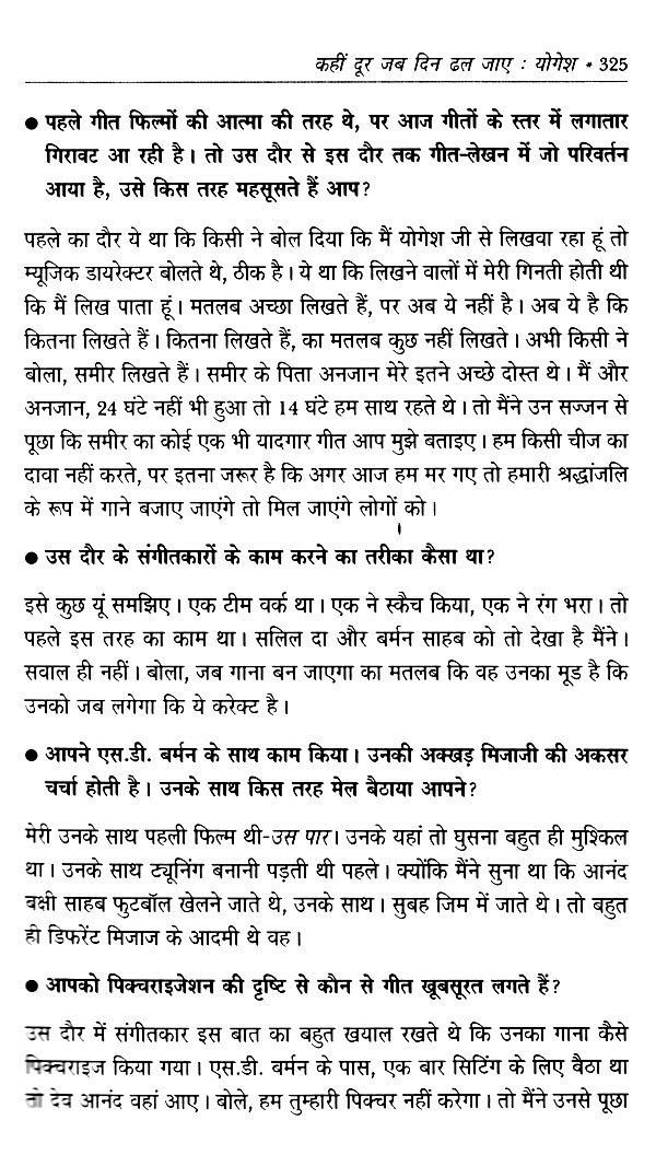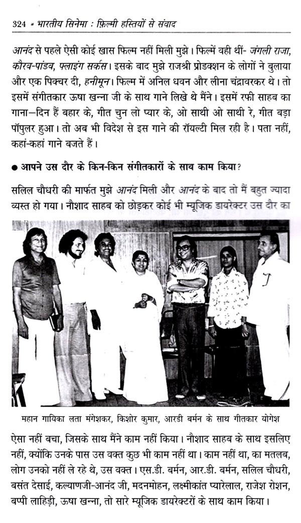 दूसरी ओर उन्होंने सिनेमा के अन्य आयामों पर भी चर्चा की है। हिंदी सिनेमा के स्वर्ण युग के दौर में गीतों में जो पोयट्री होती थी, वह हमें छूती थी, उनमें मीनिंग होती थी क्योंकि फिल्में अर्थपूर्ण होती थीं। इसके पीछे एक साक्षात्कार में यह बात निकलकर सामने आती है कि एक तरफ पंजाब-सिंघ-बंगाल से आए लोग थे तो दूसरी तरफ यूपी से आए शायर। इस तरह इनका जो संगम हुआ, उसने भारतीय सिनेमा को एक नया तौर-तरीका दिया।
