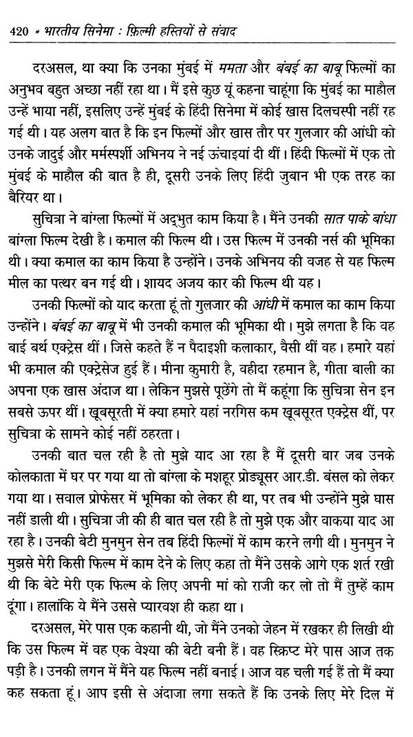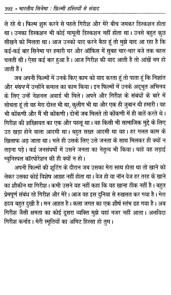 इसके अलावा वे कला फिल्मों के आंदोलन की विफलता से लेकर हिंदी सिनेमा में आए बदलाव पर भी सार्थक चर्चा करते हैं।