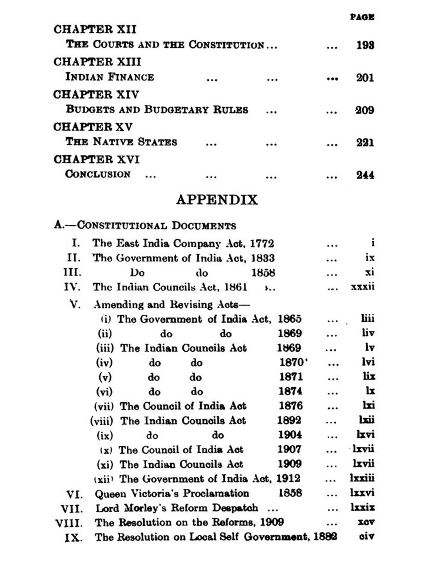 This book is intended to meet a demand which is likely to be increasingly felt with the widening of the political life of the Indian people by the inauguration of the new Reform Scheme. Accessible information on the constitutional aspects of the Government and administration of British India is not found in recognised books treating of the laws and institutions of India. Official publications also hardly go beyond bare summaries of facts and events. A systematic treatment of the features of the Indian Constitution, studied from the point of view of the Indian citizen and of the Indian student of political science, has not so far been attempted. Students of Indian history, as it is taught in our schools and Colleges, hardly obtain an idea of the machinery whereby the Indian Constitution works and the lines on which it has been constructed and developed during more than a century of British rule.
