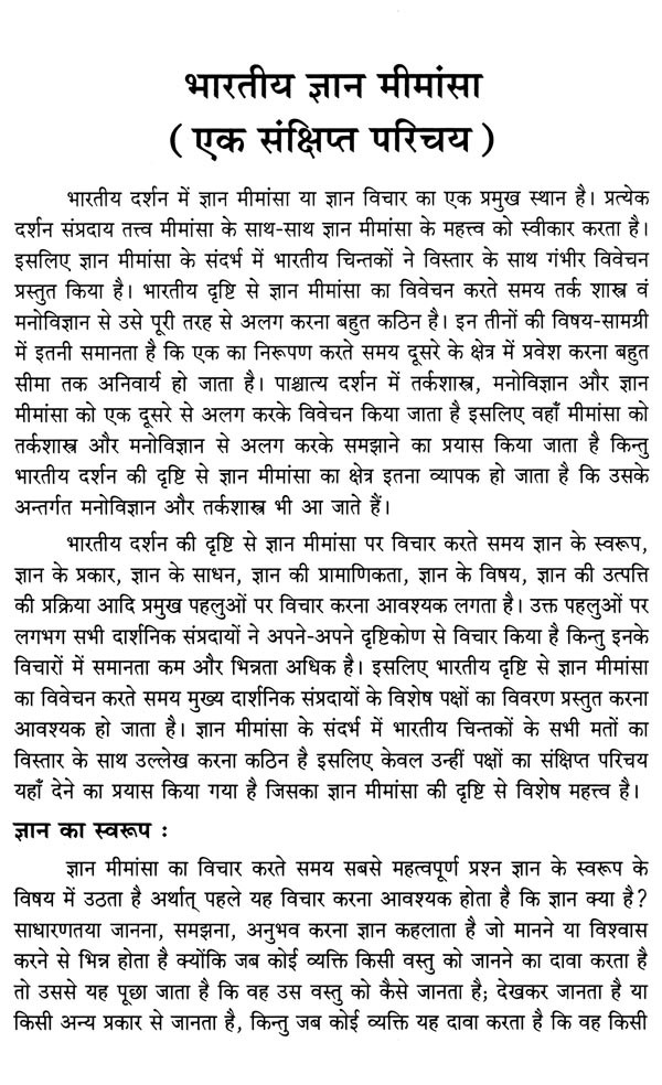 भारतीय दर्शन में ज्ञान मीमांसा या ज्ञान विचार का एक प्रमुख स्थान है। प्रत्येक दर्शन संप्रदाय तत्त्व मीमांसा के साथ-साथ ज्ञान मीमांसा के महत्त्व को स्वीकार करता है। इसलिए ज्ञान मीमांसा के संदर्भ में भारतीय चिन्तकों ने विस्तार के साथ गंभीर विवेचन प्रस्तुत किया है। भारतीय दृष्टि से ज्ञान मीमांसा का विवेचन करते समय तर्क शास्त्र वं मनोविज्ञान से उसे पूरी तरह से अलग करना बहुत कठिन है। इन तीनों की विषय-सामग्री में इतनी समानता है कि एक का निरूपण करते समय दूसरे के क्षेत्र में प्रवेश करना बहुत सीमा तक अनिवार्य हो जाता है। पाश्चात्य दर्शन में तर्कशास्त्र, मनोविज्ञान और ज्ञान मीमांसा को एक दूसरे से अलग करके विवेचन किया जाता है इसलिए वहाँ मीमांसा को तर्कशास्त्र और मनोविज्ञान से अलग करके समझाने का प्रयास किया जाता है किन्तु भारतीय दर्शन की दृष्टि से ज्ञान मीमांसा का क्षेत्र इतना व्यापक हो जाता है कि उसके अन्तर्गत मनोविज्ञान और तर्कशास्त्र भी आ जाते हैं।