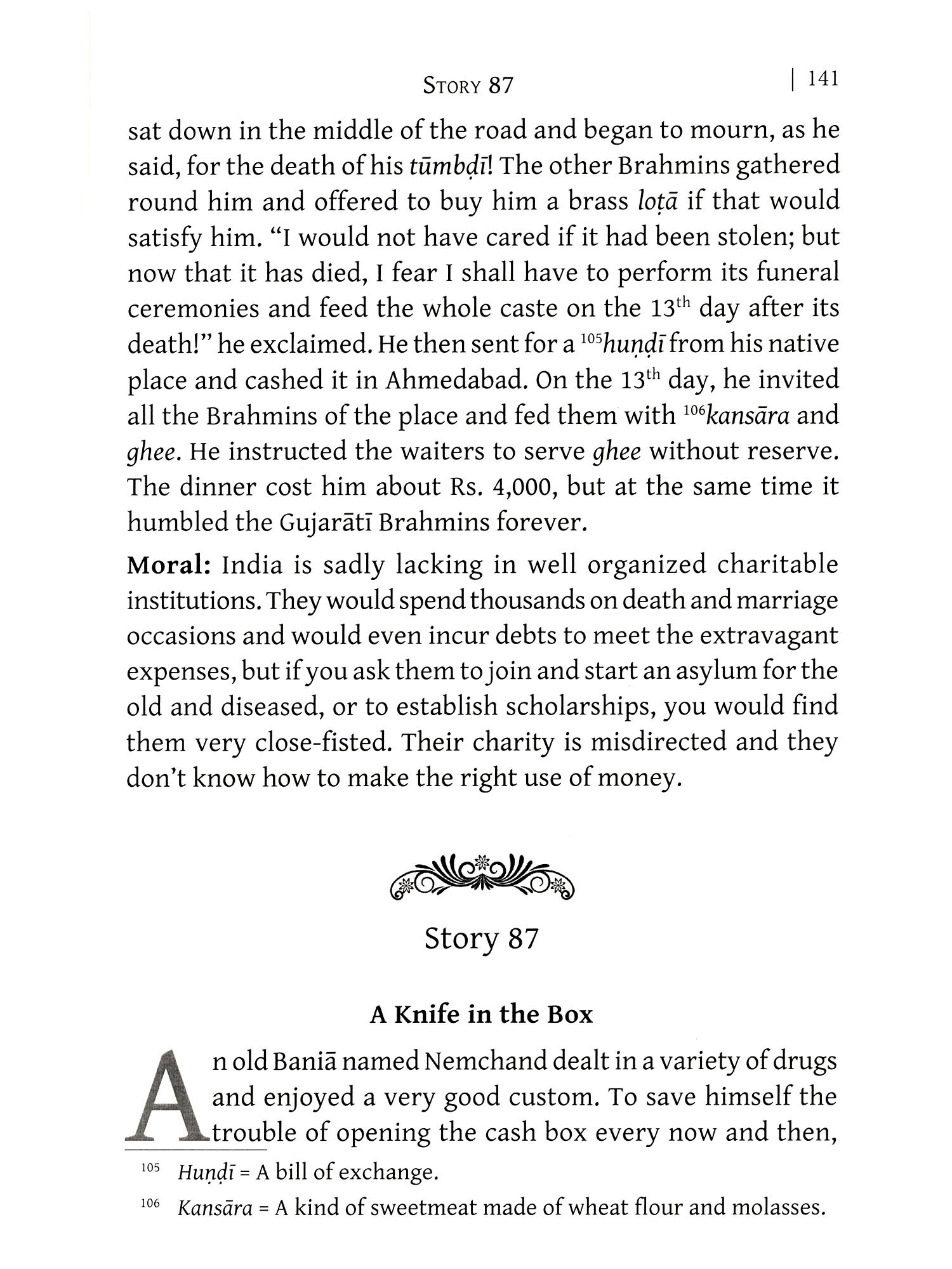 India is well-known for her cultural and literary traditions, which are normally alien to the West of the twentieth century. Her wide literature is a huge treasure house. So also are her folk tales which showcase her cultural milieu. For generations, the legends of India remained vigorously active by transferring from lip to lip in the absence of any print medium, and this book is an English translation of ninety-three tales selected from a Gujarati volume, "Kautakamāļa" or "Bodhavacana", which appeared first in 1885. This book is expected to give an insight to the then West into the cultures, customs and traditions of the East through its folk tales. It will promote a larger acquaintance of the West with Indian moorings, resulting in a heartier appreciation of, the native thoughts and native customs, the practical wisdom and ripe experience. It shows considerable skill in shifting and arranging the rude materials collected from many sources and in investigating half-forgotten local chronicles of wit and humour. It also satirizes the faults and extravagances of the then Indian village community to a certain extent. The book should make an interesting and amusing reading for the English-knowing people interested in Indian folklore.