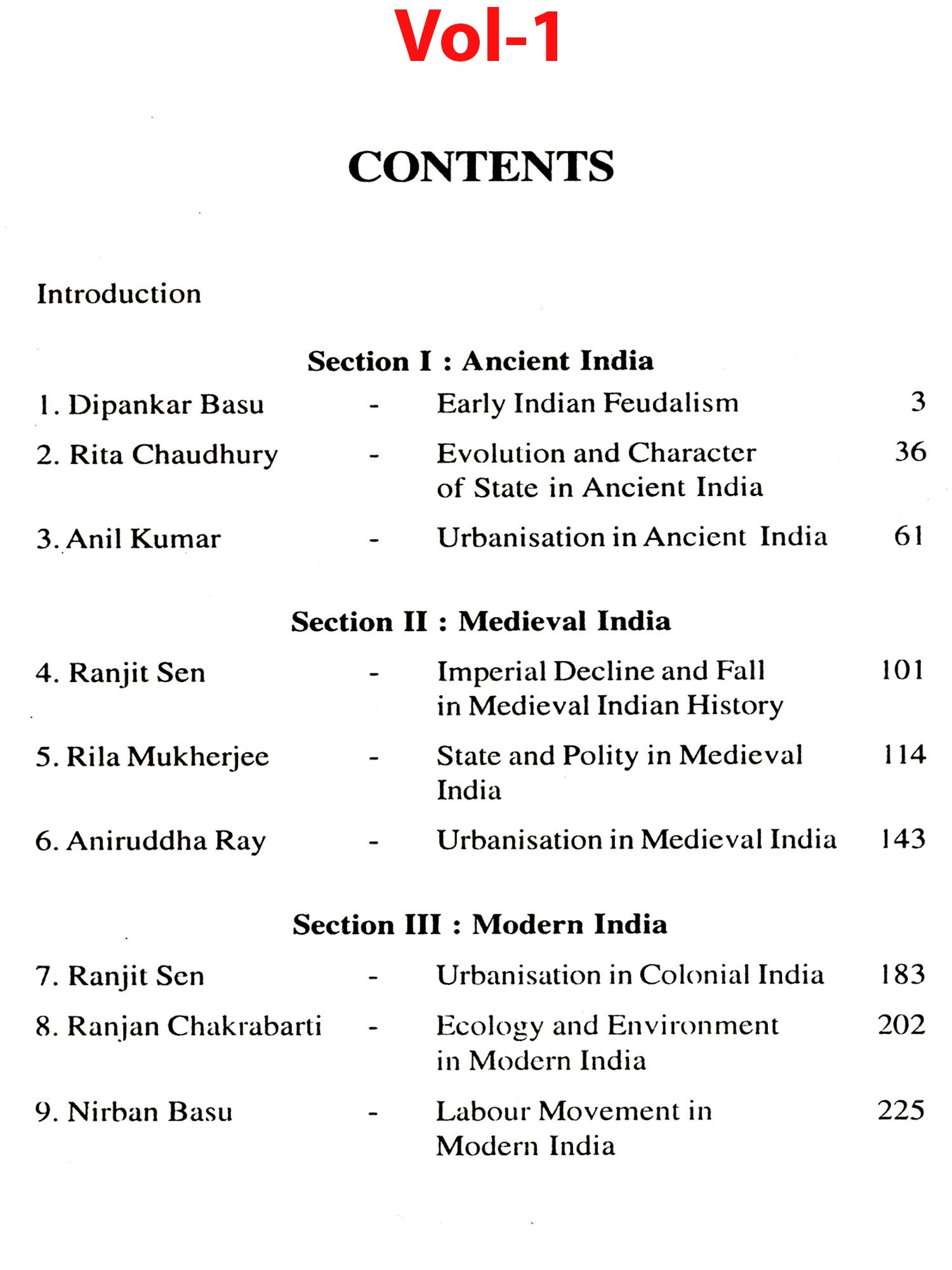 In this volume, three articles on each section: ancient, medieval and modern India have been included. The articles show evolution of certain institutions through the ages. Thus, the section on ancient India begins with an appraisal of early Indian feudalism which was still based on status and servitude in the land system of ancient India. The transition to contract was retarded by religion, caste and culture in such a way that Marx was constrained to call it Asiatic Mode of Production. Dipankar Basu delves into that problem.
