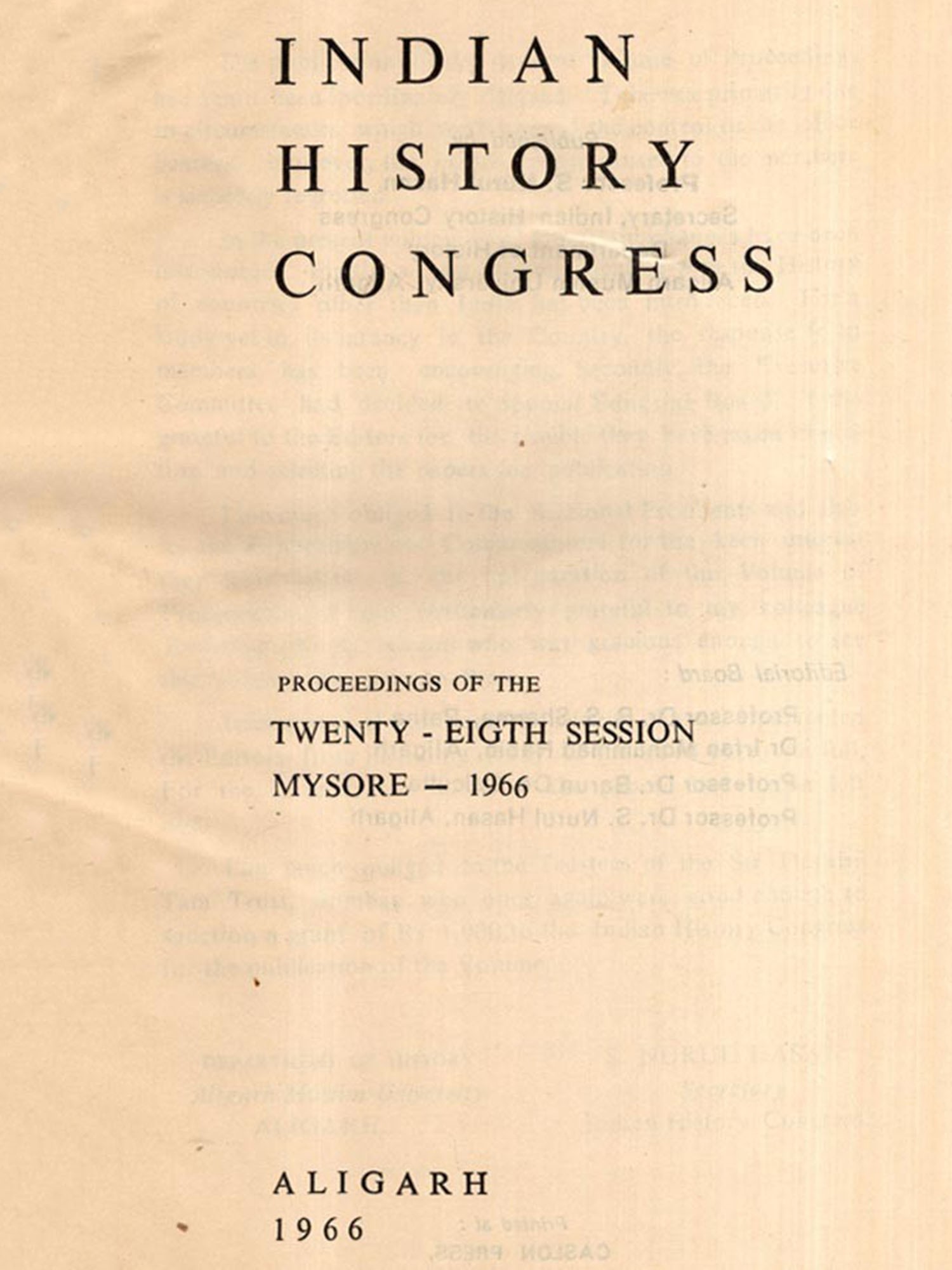 Indian History Congress- Proceedings of the Twenty-Eigth Session Mysore 1966 and Aligarh 1966 (An Old and Rare Book)