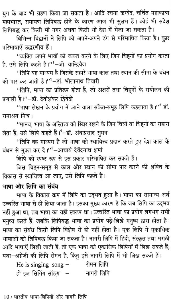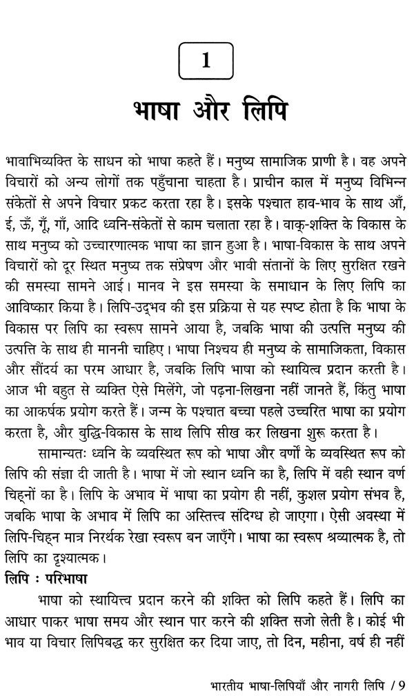 भावाभिव्यक्ति के साधन को भाषा कहते हैं। लिपि का आधार पाकर भाषा में समय और स्थान पार करने की शक्ति आ जाती है। लिपि का उद्भव भाषा के उद्भव के बहुत वाद उसे स्थायित्व प्रदान करने के उद्देश्य से हुआ है। साहित्य का मूल मंत्र है- "सहितस्य भावं साहित्यम्।" भारतीय साहित्य के सम्मान भारतीय भाषाओं और उनकी लिपियों में भारतीय संस्कृति की अनुप्रेरक भाषाभिक्ति है। भारतीय संस्कृति में मातृशक्ति को शीर्ष स्थान दिया गया है। भाषा की लिपियों के स्वर वर्ण और अक्षर मातृशक्ति संपन्न होते हैं। इसलिए भारतीय भाषा की लिपियों में 'स्वर' को वर्णमाला में पूर्व स्थान पर रखा गया और व्यंजन वर्षों को उत्तरांश में रखा जाता है। स्वर वर्ण प्रयोगी की आदि मध्य और अंत्य सभी स्थितियों में पूर्ण होते हैं। स्वर वर्ण का स्वतंत्र प्रयोग होता है, जबकि व्यंजन का प्रयोग स्वर के साथ ही संभ होता है। स्वरविहिन व्यंजन आधे हो जाते हैं। स्वर उच्चारण में ह्रस्व, दीर्घ और प्लुत की अनूठी शक्ति भाषा की दिशा प्रदान करती है। भारतवर्ष में लिपि-प्रयोग की एक लंबी और आकर्षक परंपरा है। ब्राह्मी यहाँ की प्राचीनतम और श्रेष्ठ लिपि है। इससे अनेक लिपियों का उद्भव हुआ है। इनमें नागरी एक प्रमुख लिपि है। देवभाषा-संस्कृत भी इसी लिपि में लिपिबद्ध की जाती है। इसीलिए इसे 'देवनागरी' लिपि नाम भी दिया गया है। वर्तमान समय में वैदिक, संस्कृत, पाली, प्राकृत, अपभ्रंश के साथ हिंदी, मराठी और नेपाली भाषाएँ नागरी में लिपिबद्ध की जाती है। पंजाबी, बंगला, असमिया और उड़िया भाषाओं की गुरुमुखी, बंगला, असमिया और उड़िया लिपियाँ नागरी से निकट समानता रखती हैं।