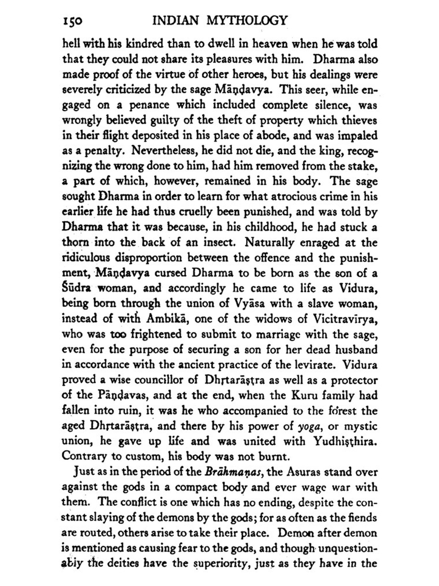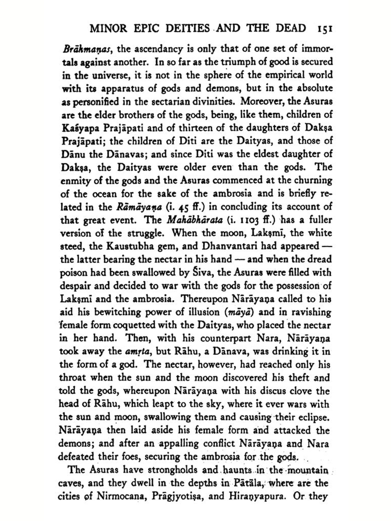 The rich variety of the mythology, despite its attraction for the student of the history of myths, renders the task of concise exposition one of peculiar difficulty. For the mythology of the present day available material is enormous: each part of the vast area of India has its own abundant store of myth and tradition, and to give detail for this period would be impossible. The same consideration applies with but slightly lessened force for the earlier epochs: the Veda, the epics, the Puranas, the literature of the Buddhists and of the Jains, each present data in lavish abundance. It has been necessary, therefore, to circumscribe narrowly the scope of the subject by restricting the treatment to that mythology which stands in close connexion with religion and which conveys to us a conception of the manner in which the Indian pictured to himself the origin of the world and of life, the destiny of the universe and of the souls of man, the gods and the evil spirits who supported or menaced his existence. Gods and demons were very present to the mind of the Indian then as they are today, and they are inextricably involved in innumerable stories of folk-lore, of fairy tale, and of speculation as to the origin of institutions and customs. The task of selecting such myths as will best illustrate the nature of the powers of good and evil is one in which we cannot hope for complete success; and the problem is rendered still more hard by the essential vagueness of many of the figures of Indian mythology: the mysticism of Indian conception tends ever to a pantheism alien to the clear-cut creations of the Hellenic imagination.